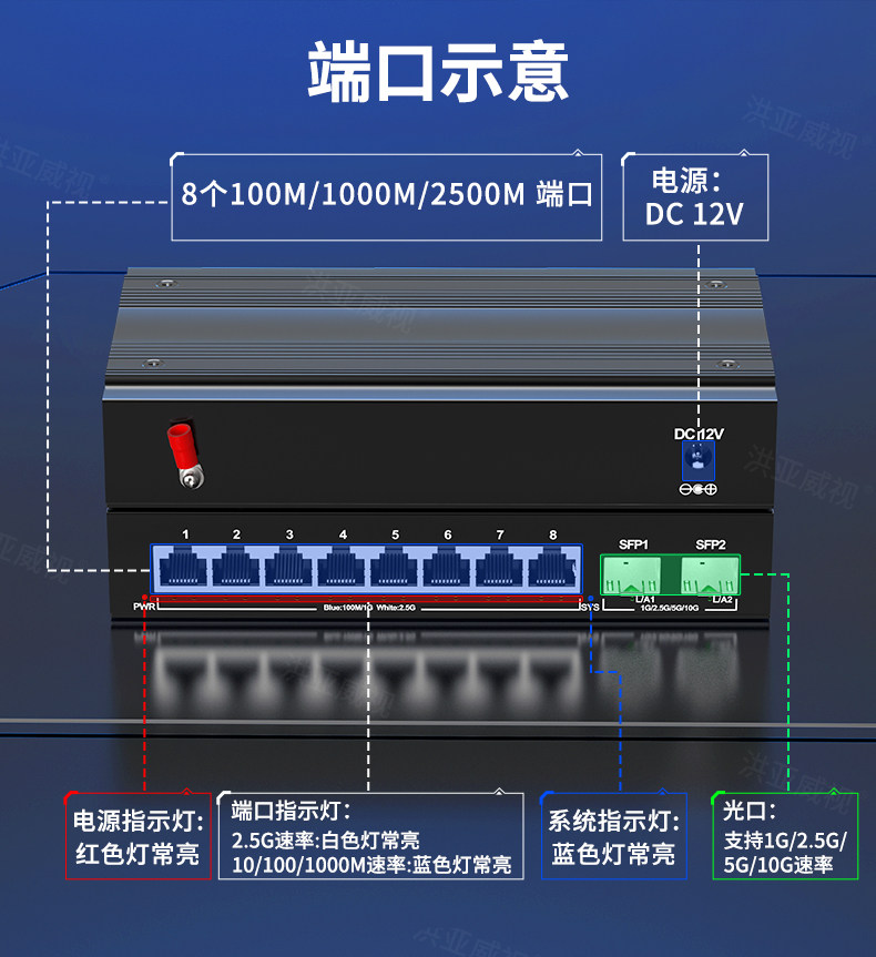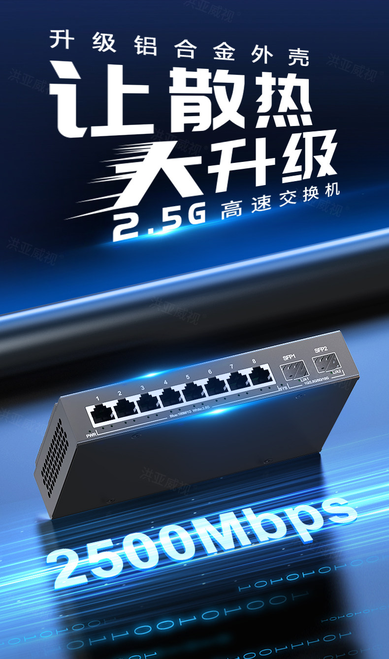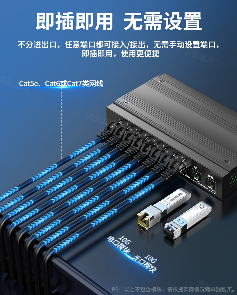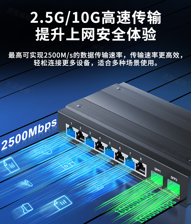 Hongya Vision 8-Port 2.5g Switch + 2 Gigabit Optical Ethernet 2500m High-Speed Transmission Gigabit Unmanaged Nas Server Connected to Monitoring Ap Hub 2 Optical 8 Electrical Network Splitter