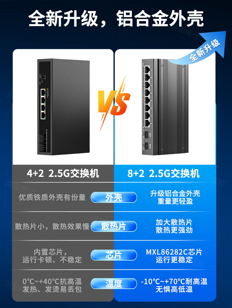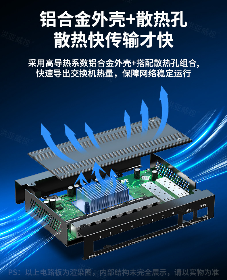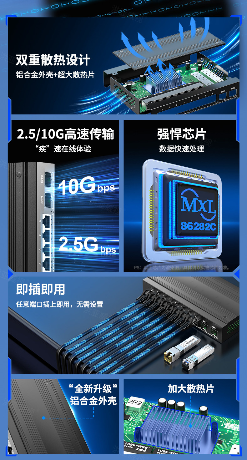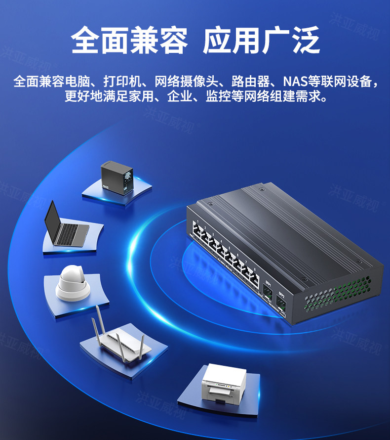Hongya Vision 8-Port 2.5g Switch + 2 Gigabit Optical Ethernet 2500m High-Speed Transmission Gigabit Unmanaged Nas Server Connected to Monitoring Ap Hub 2 Optical 8 Electrical Network Splitter