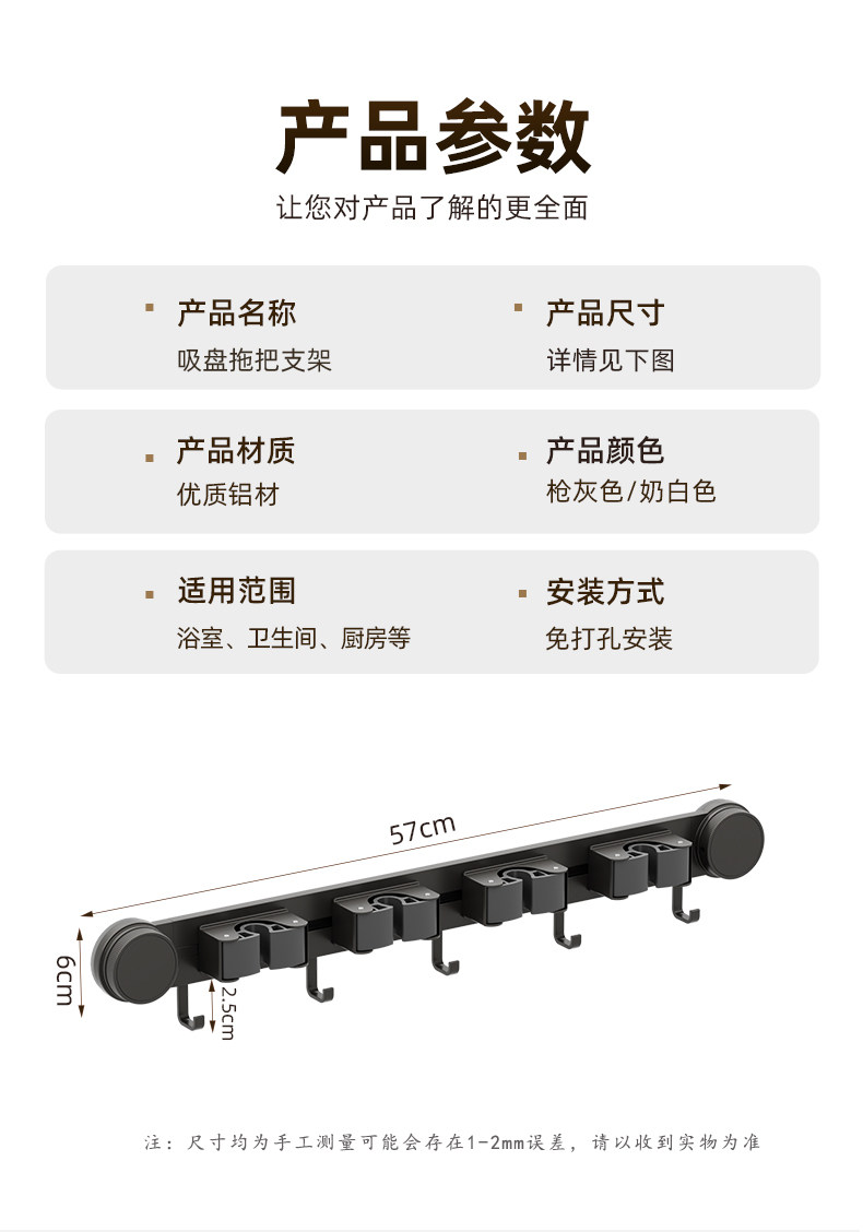 Color Classification [36cm Two Clips and Three Hooks - Free to Move]Gun Gray - Space Aluminum Mop Holder/Suction Cup Fixation Will Not Damage the Wall,[47cm Three Clips and Four Hooks-Free Movement]Gun Gray - Space Aluminum Mop Holder/Suction Cup Fixation Will Not Damage the Wall,[58cm Four Clips and Five Hooks - Free to Move]Gun Gray - Space Aluminum Mop Holder/Suction Cup Fixation Will Not Damage the Wall,[67cm Five Clips and Six Hooks-Free Movement]Gun Gray - Space Aluminum Mop Holder/Suction Cup Fixation Will Not Damage the Wall,[36cm Two Clips and Three Hooks - Free to Move]Milky White - Space Aluminum Mop Holder/Suction Cup Fixation Will Not Damage the Wall,[47cm Three Clips and Four Hooks-Free Movement]Milky White - Space Aluminum Mop Holder/Suction Cup Fixation Will Not Damage the Wall,[58cm Four Clips and Five Hooks - Free to Move]Milky White - Space Aluminum Mop Holder/Suction Cup Fixation Will Not Damage the Wall,[67cm Five Clips and Six Hooks-Free Movement]Milky White - Space Aluminum Mop Holder/Suction Cup Fixation Will Not Damage the Wall