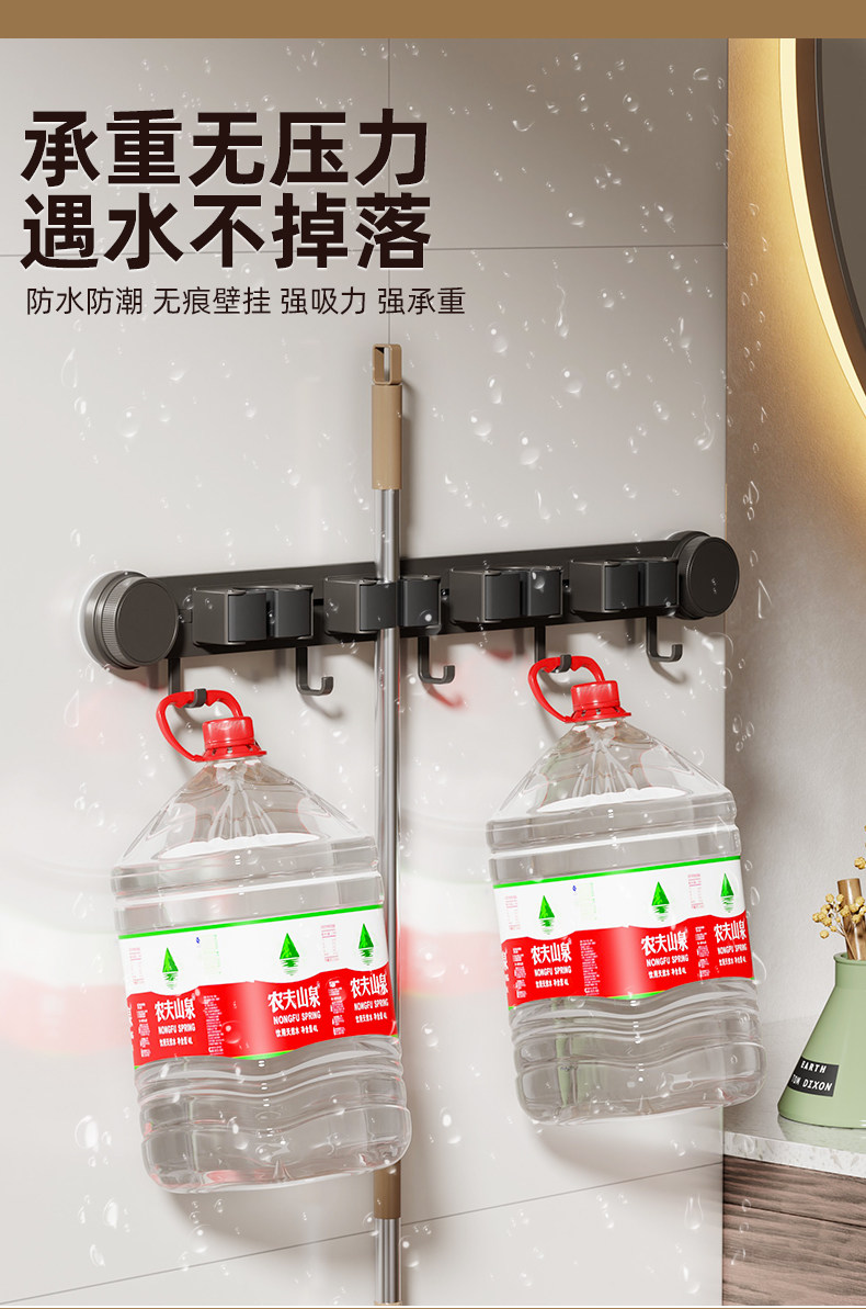 Suction Cup Mop Wall Hanging Clip Without Punching Behind the Door Hook Broom Mop Fixed Storage Rack Bathroom Various Artifacts