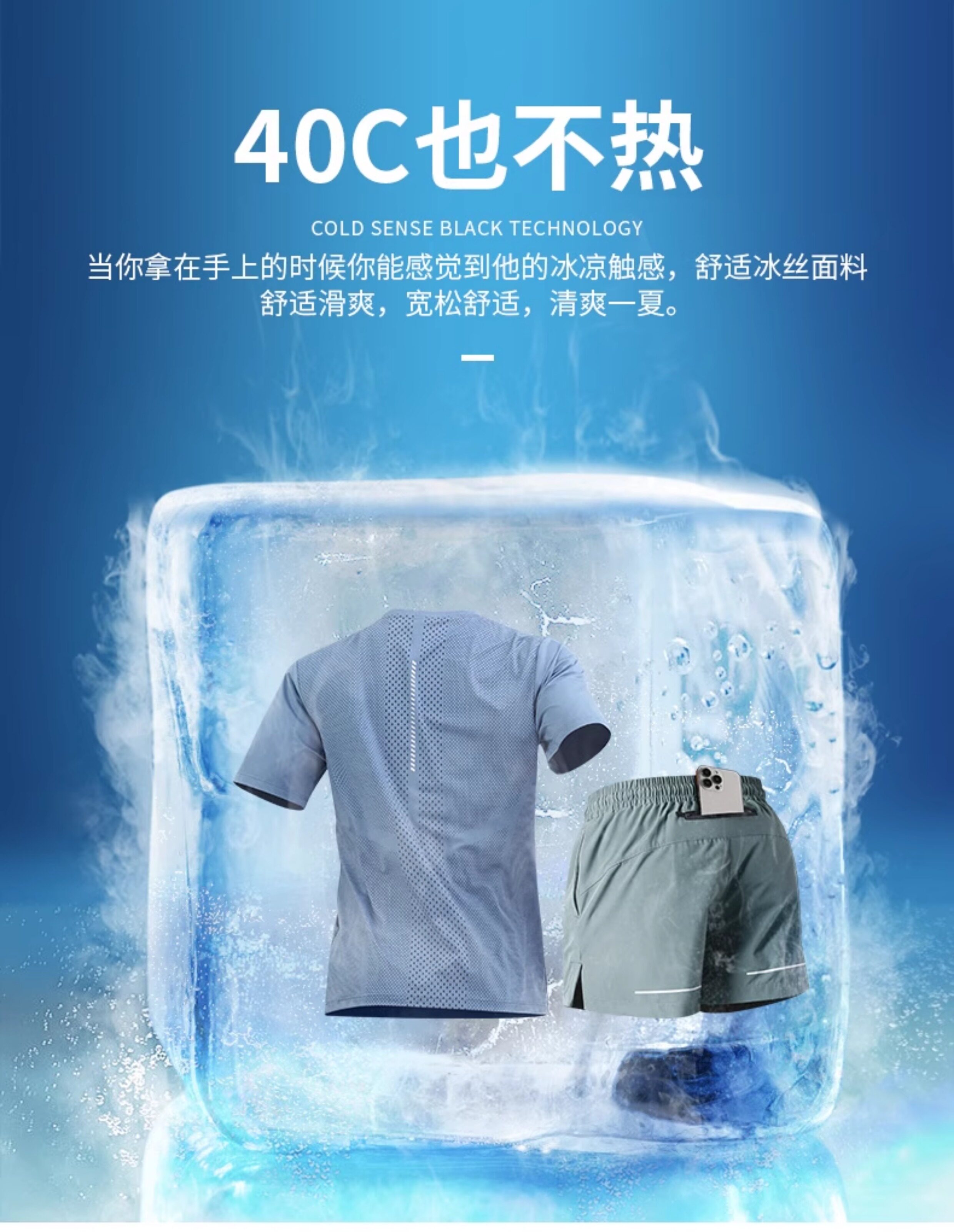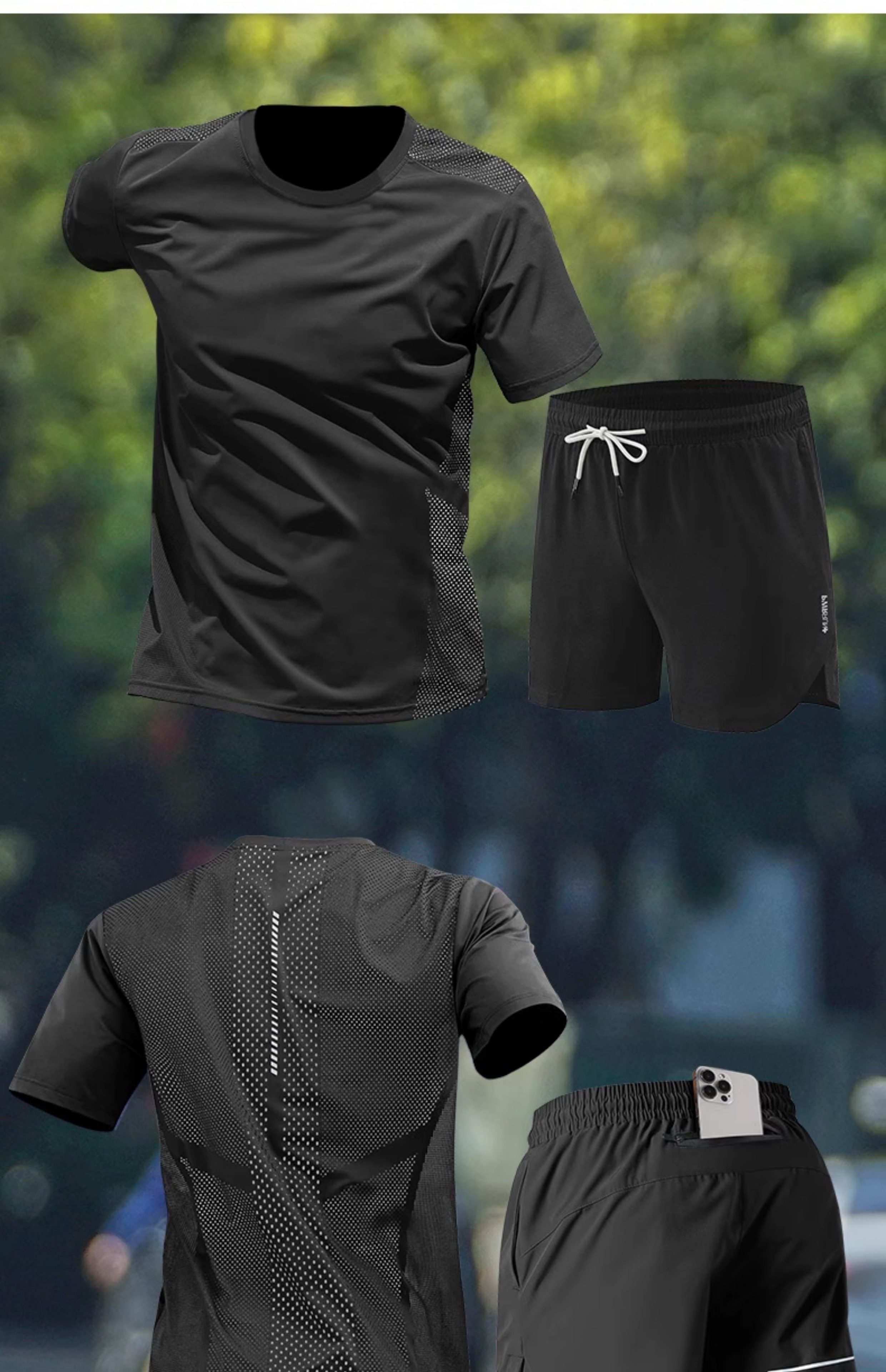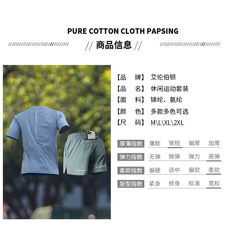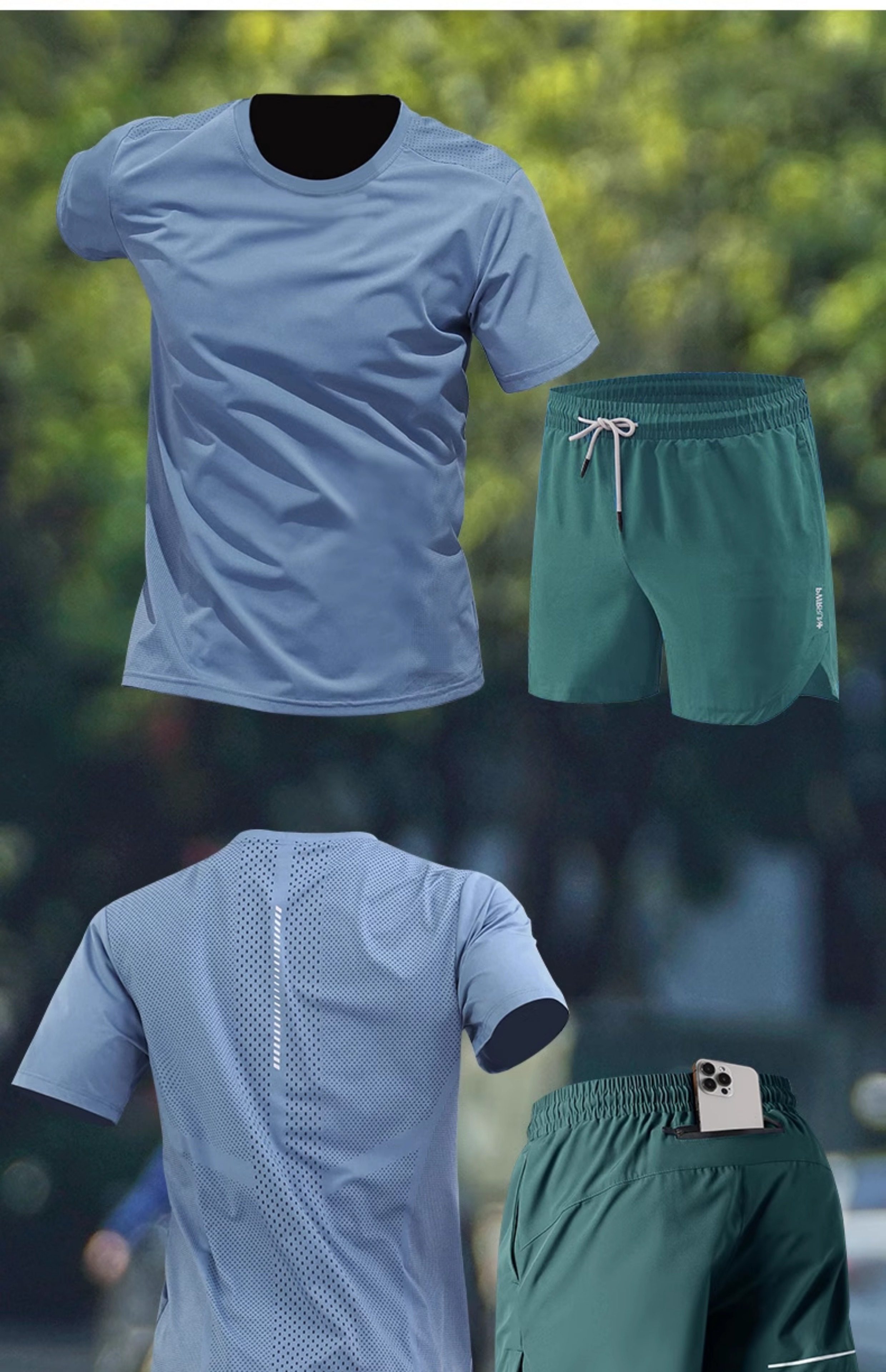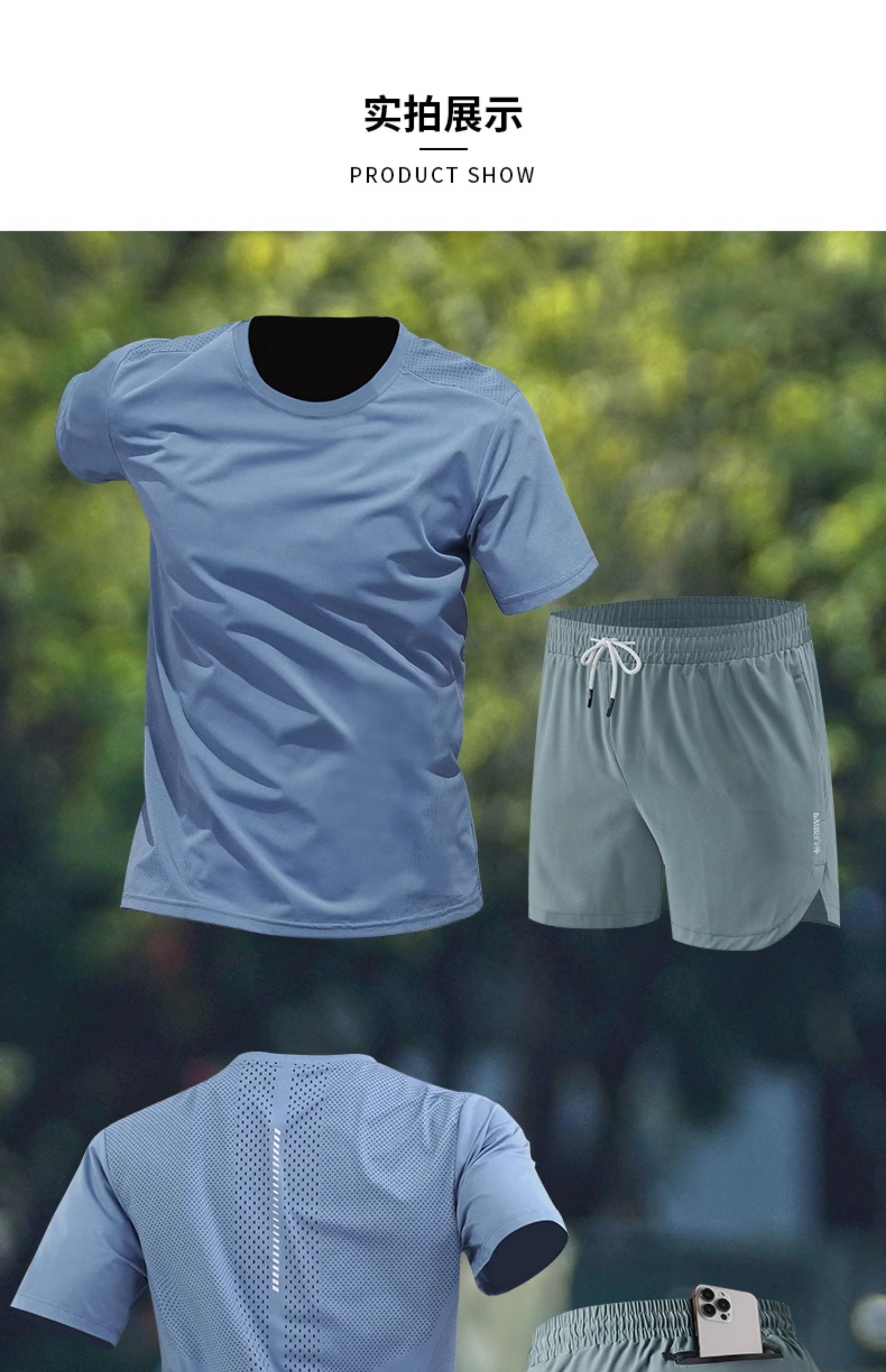 Running sports suit for men can put mobile phones in new summer ice silk marathon training quick-drying fitness clothes