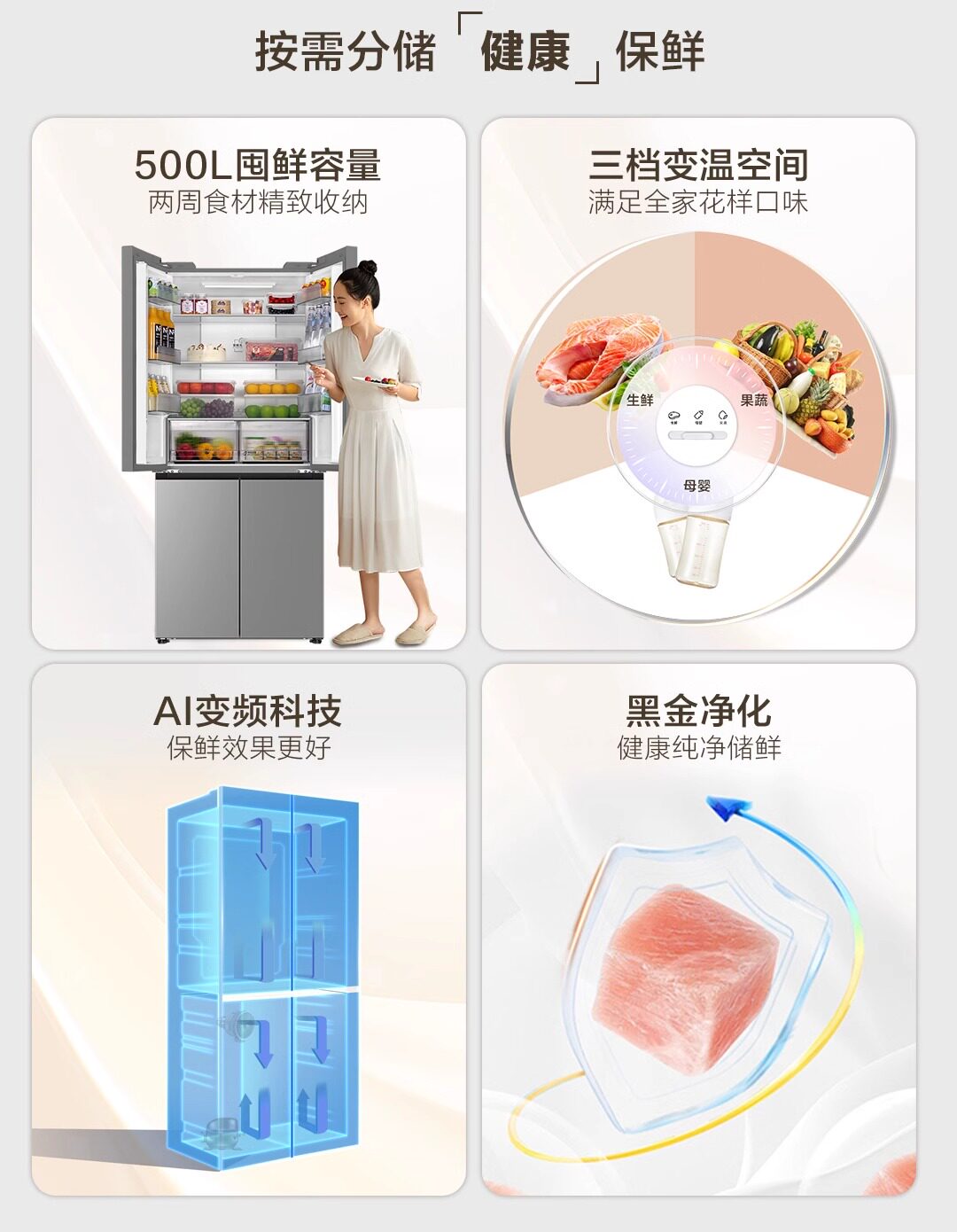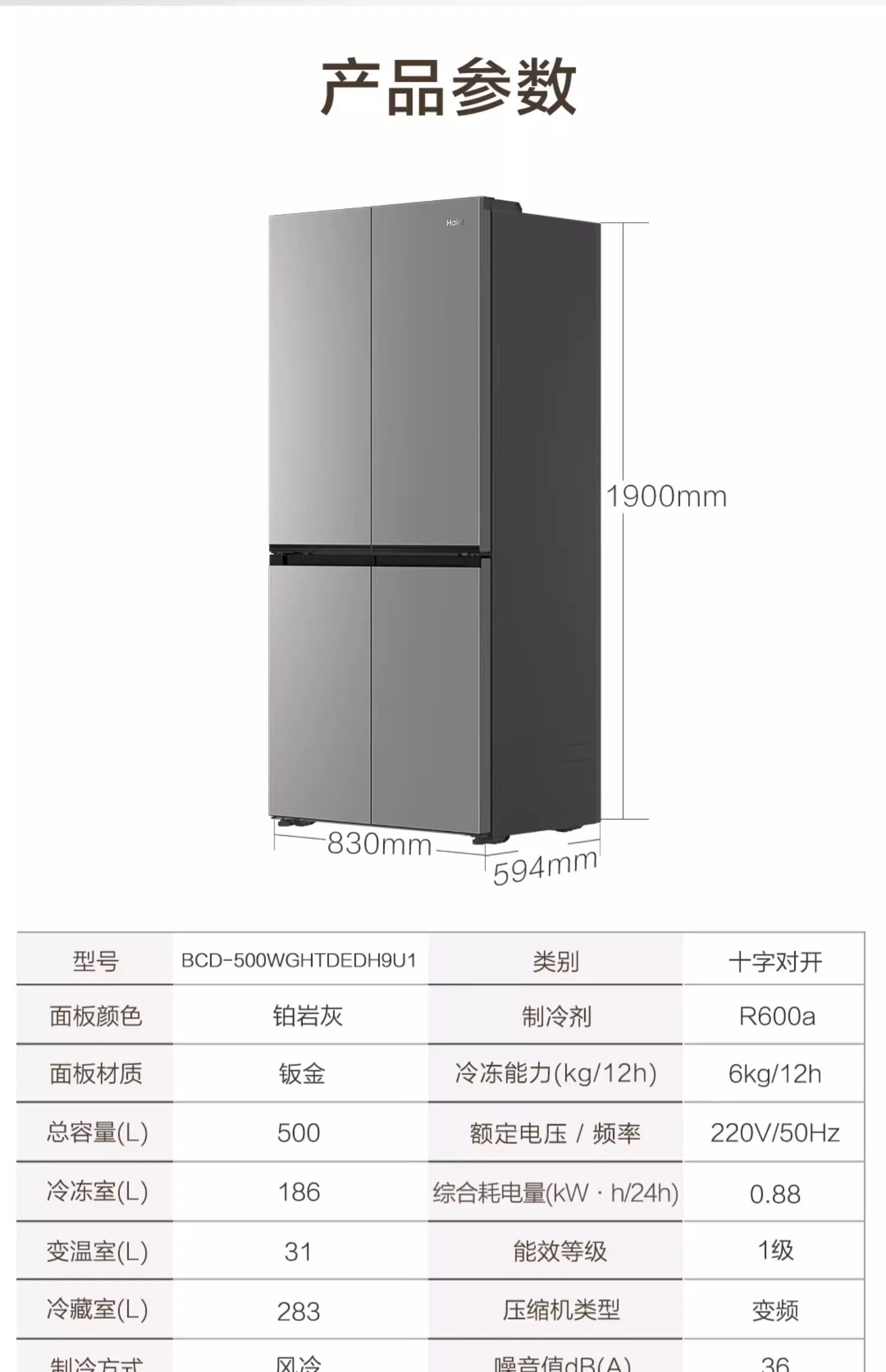 Haier Bcd-500Wghtdedh9U1 Cross First-Class Ultra-Thin Household Air-Cooled Frost-Free Refrigerator