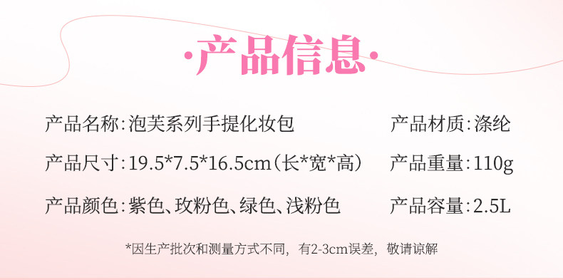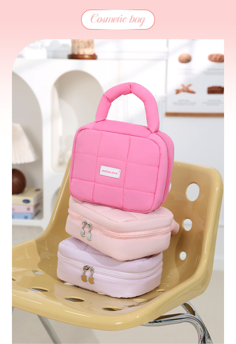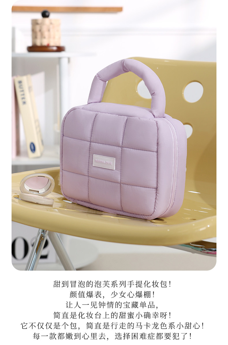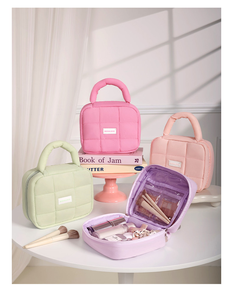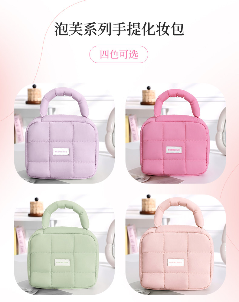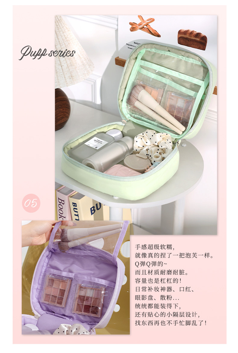 Color Classification Puff Cosmetic Bag - Rose Red,Puff Cosmetic Bag - Mint Green,Puff Cosmetic Bag - Light Pink,Puff Cosmetic Bag - Taro Purple