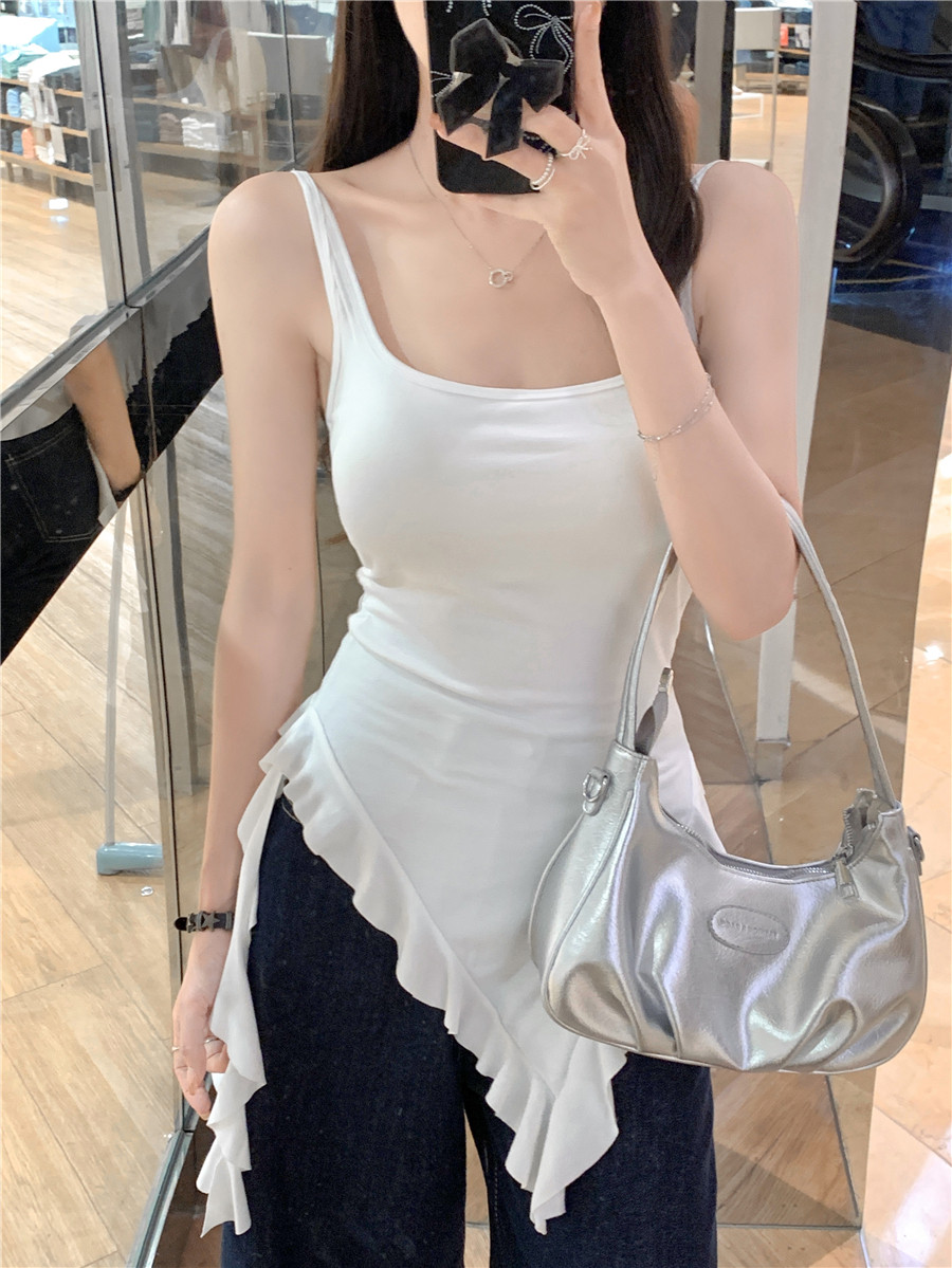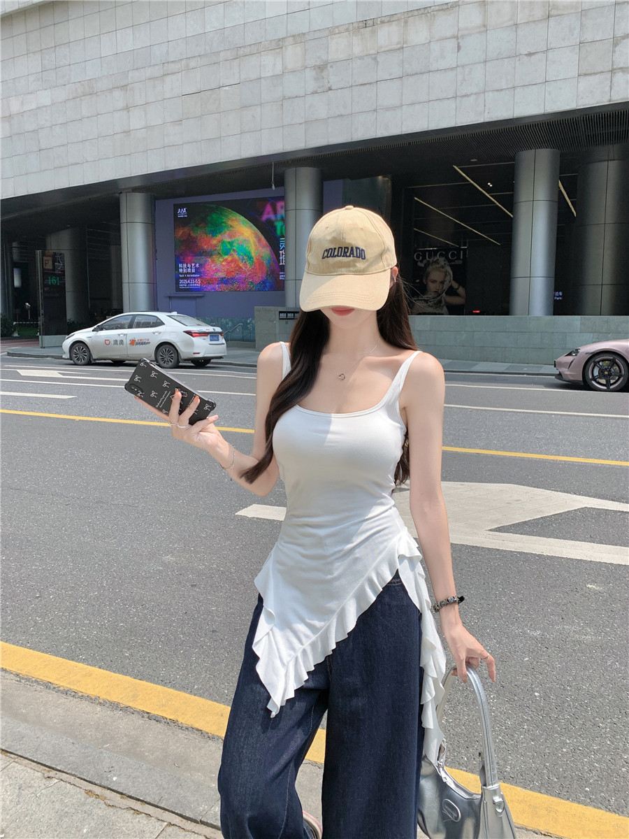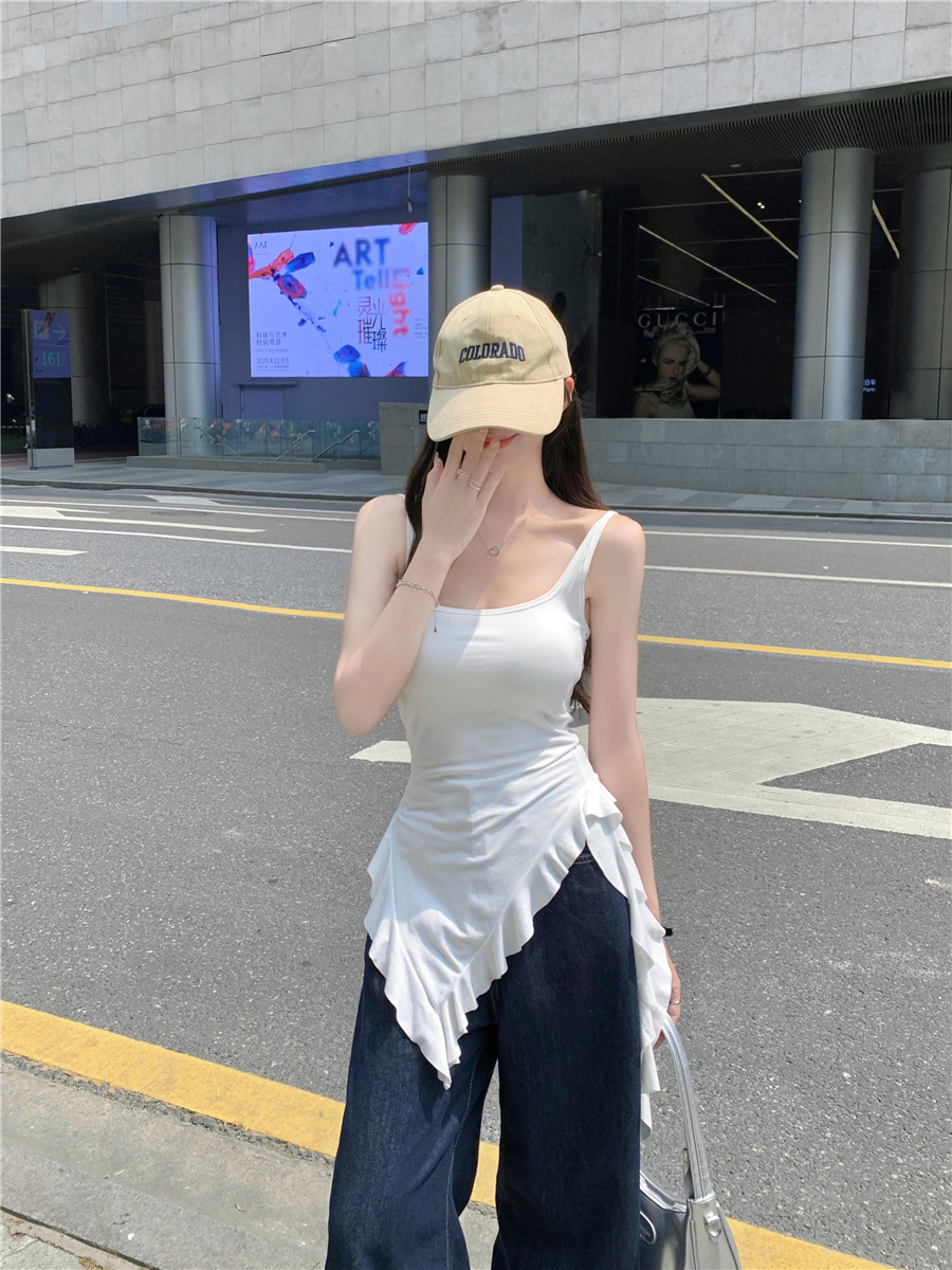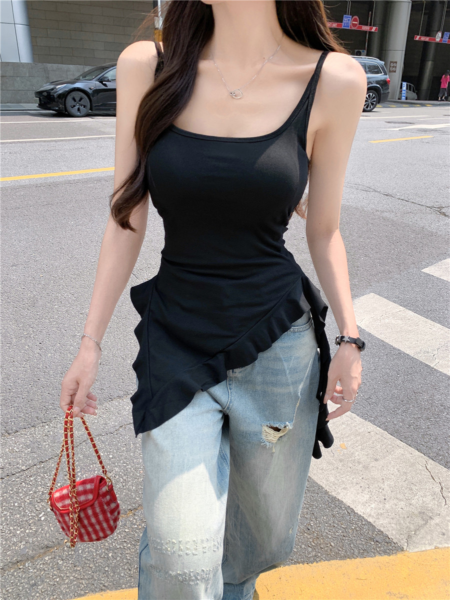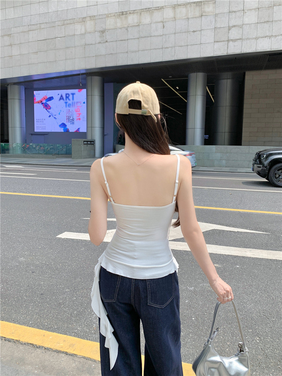 Irregular Design Tassel Ruffle Vest for Women, New Summer Style with Chest Pads, Waist-Cinching, Slimming, Outerwear Camisole