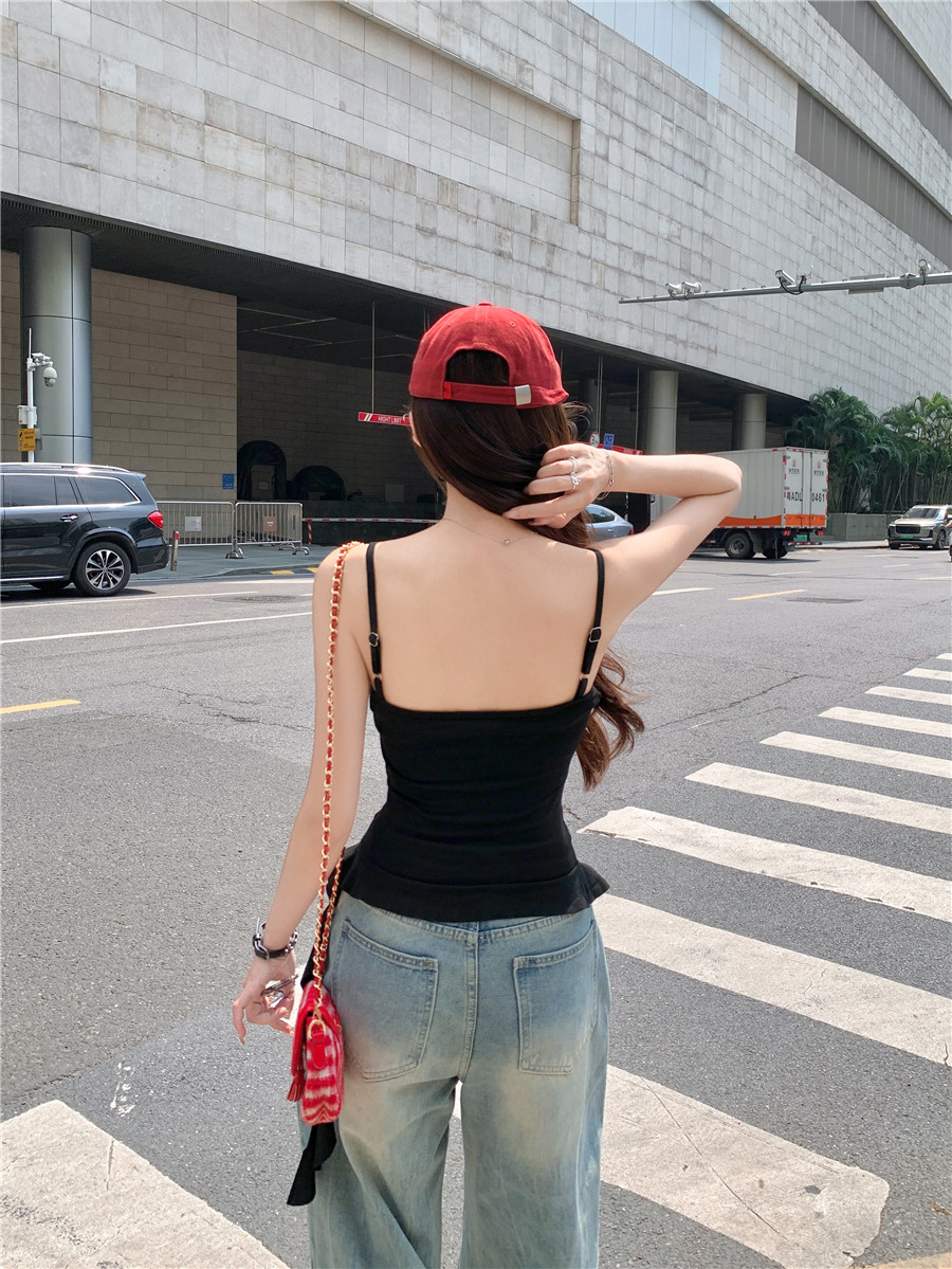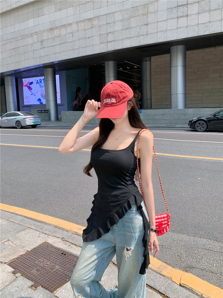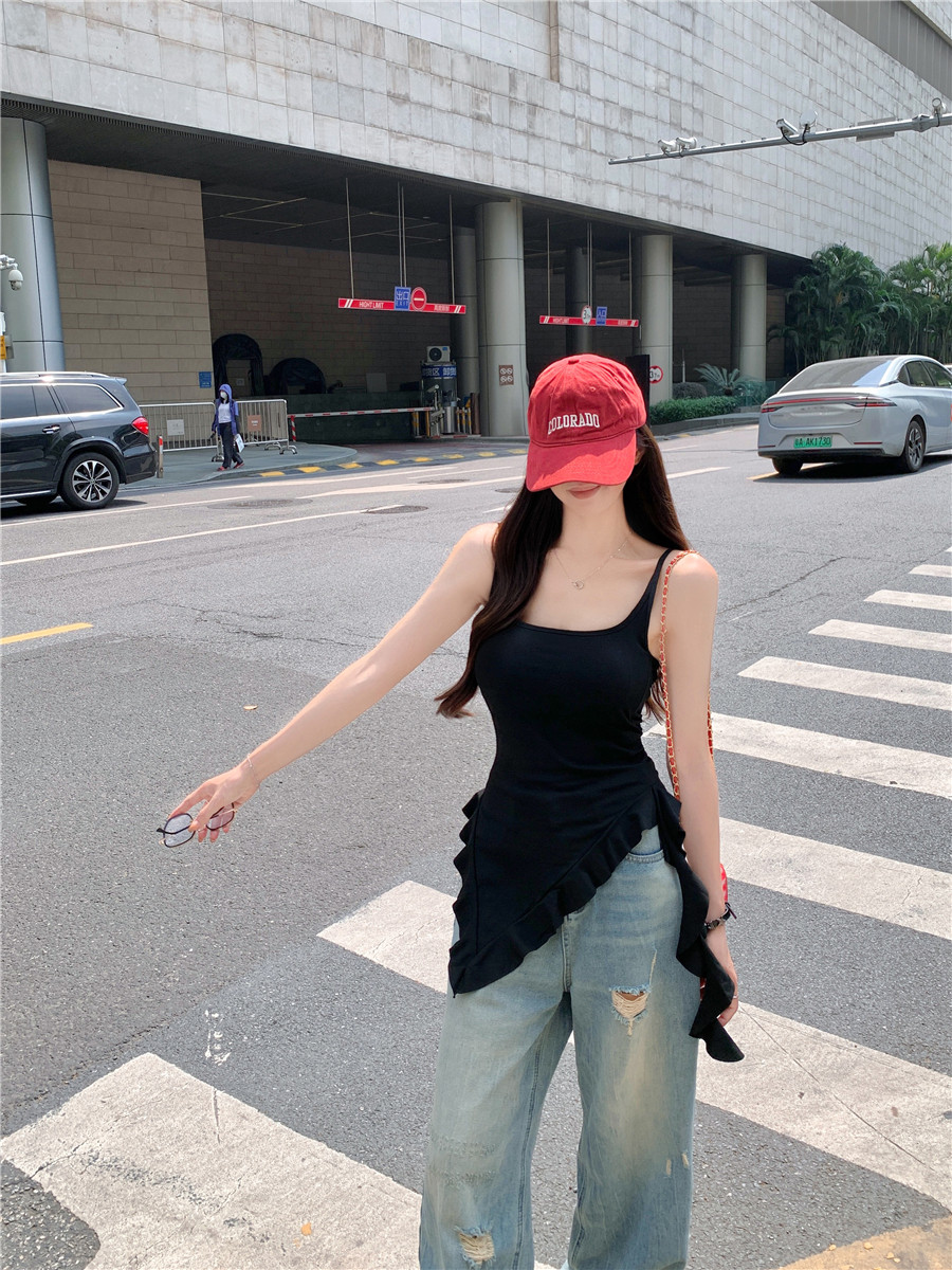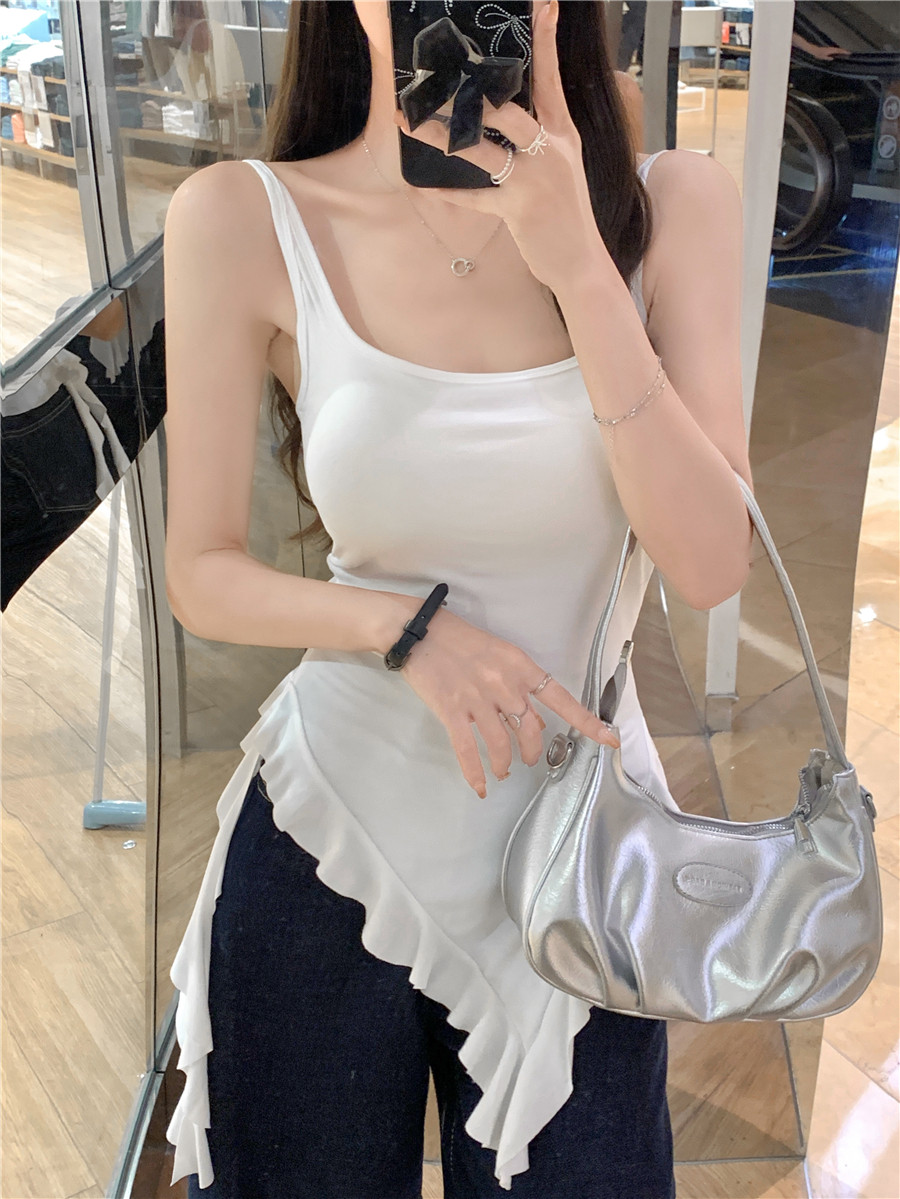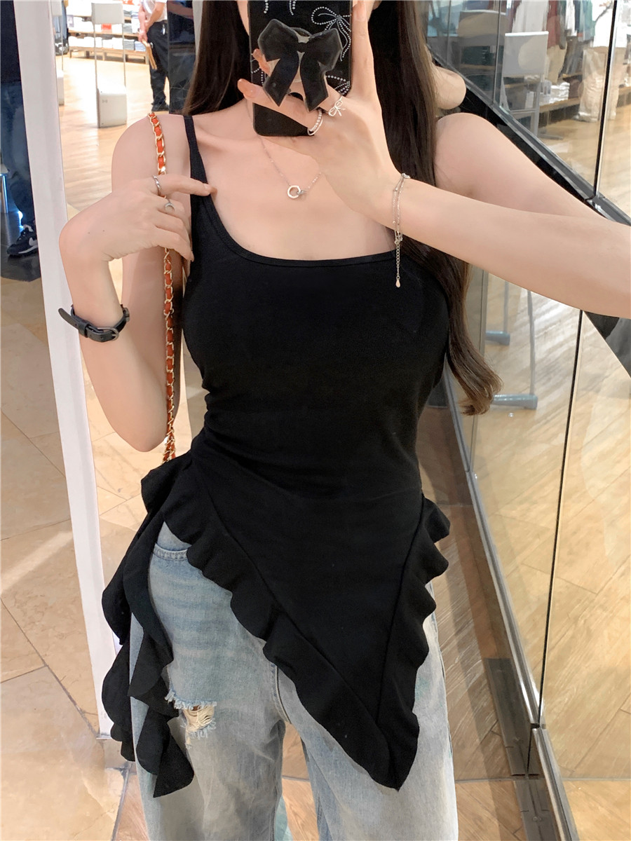 Irregular Design Tassel Ruffle Vest for Women, New Summer Style with Chest Pads, Waist-Cinching, Slimming, Outerwear Camisole