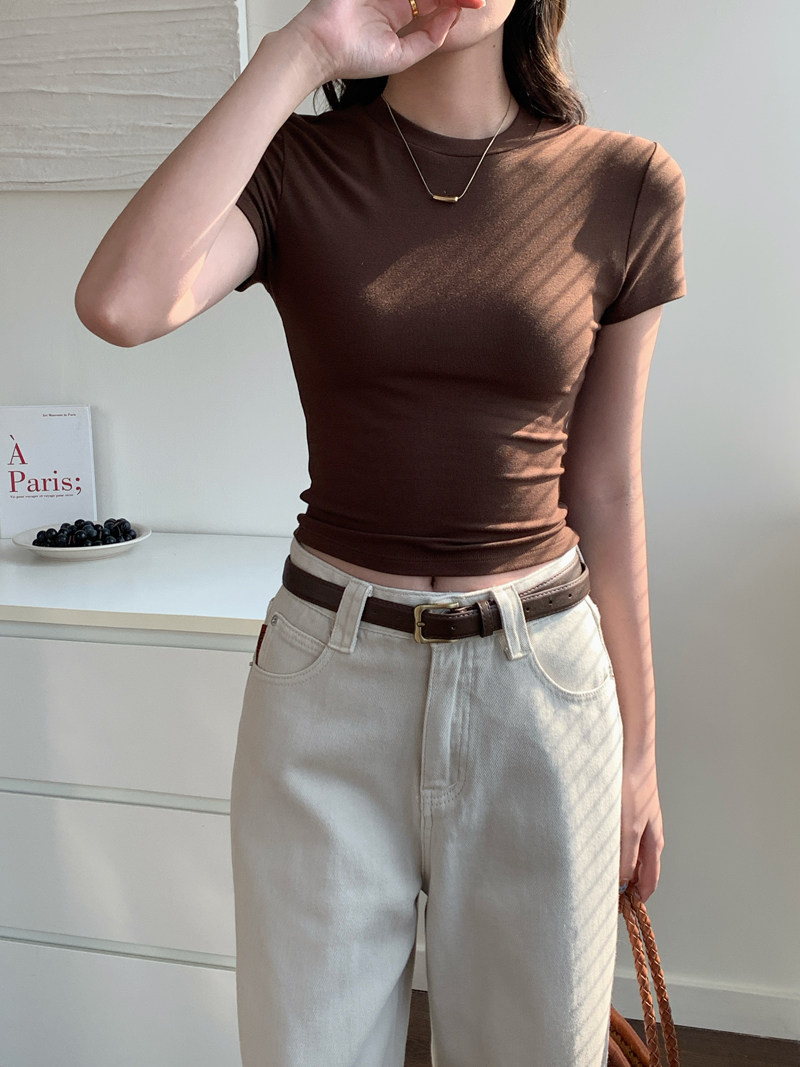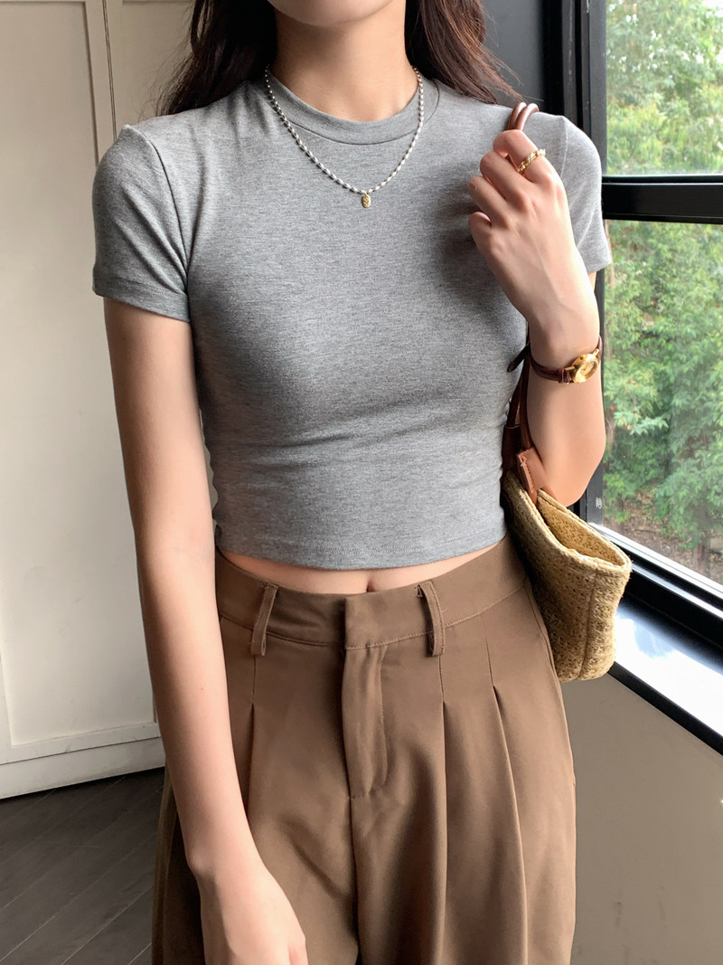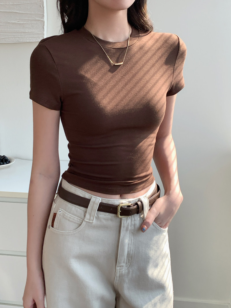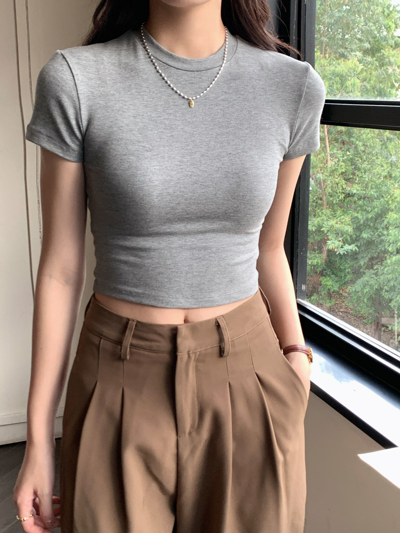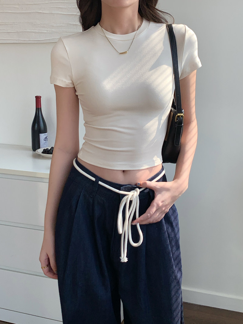 Unique and Beautiful Tight-Fitting Round-Neck Short-Sleeved T-Shirt for Women, Summer 2025 New Style, Slim-Fitting High-Waisted Short Top for Hot Girls