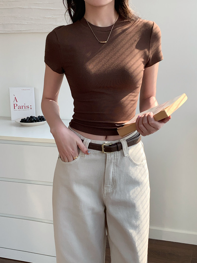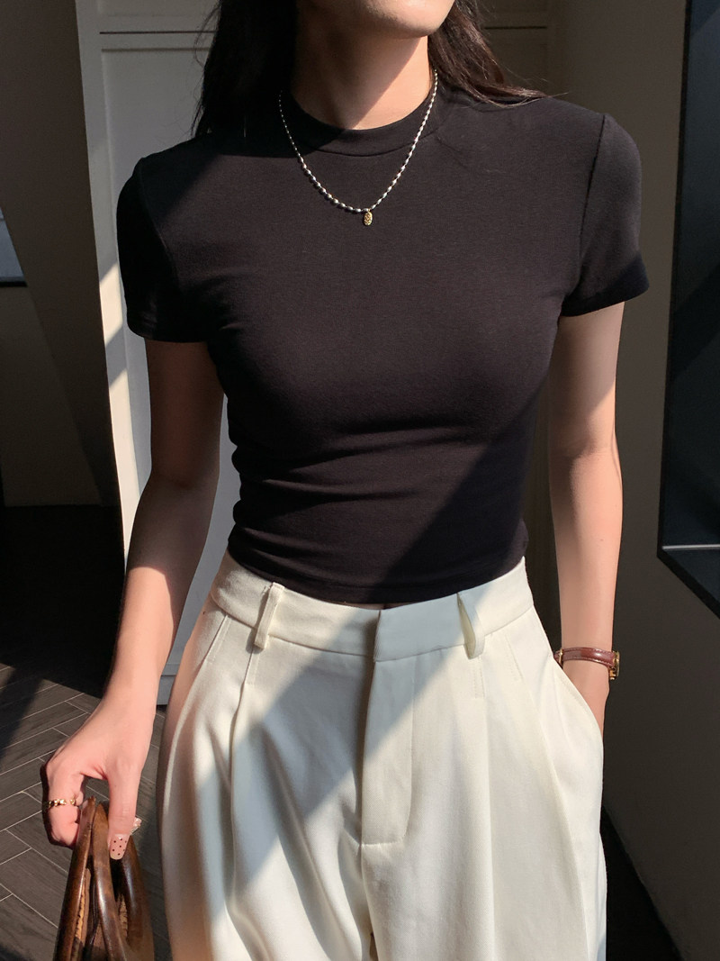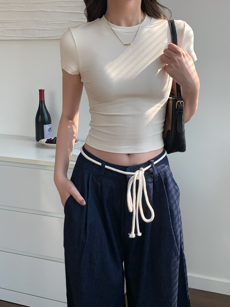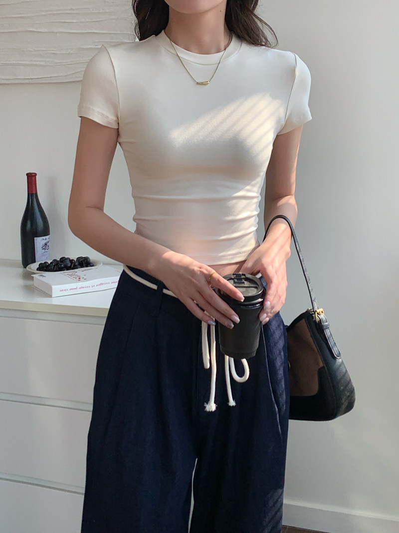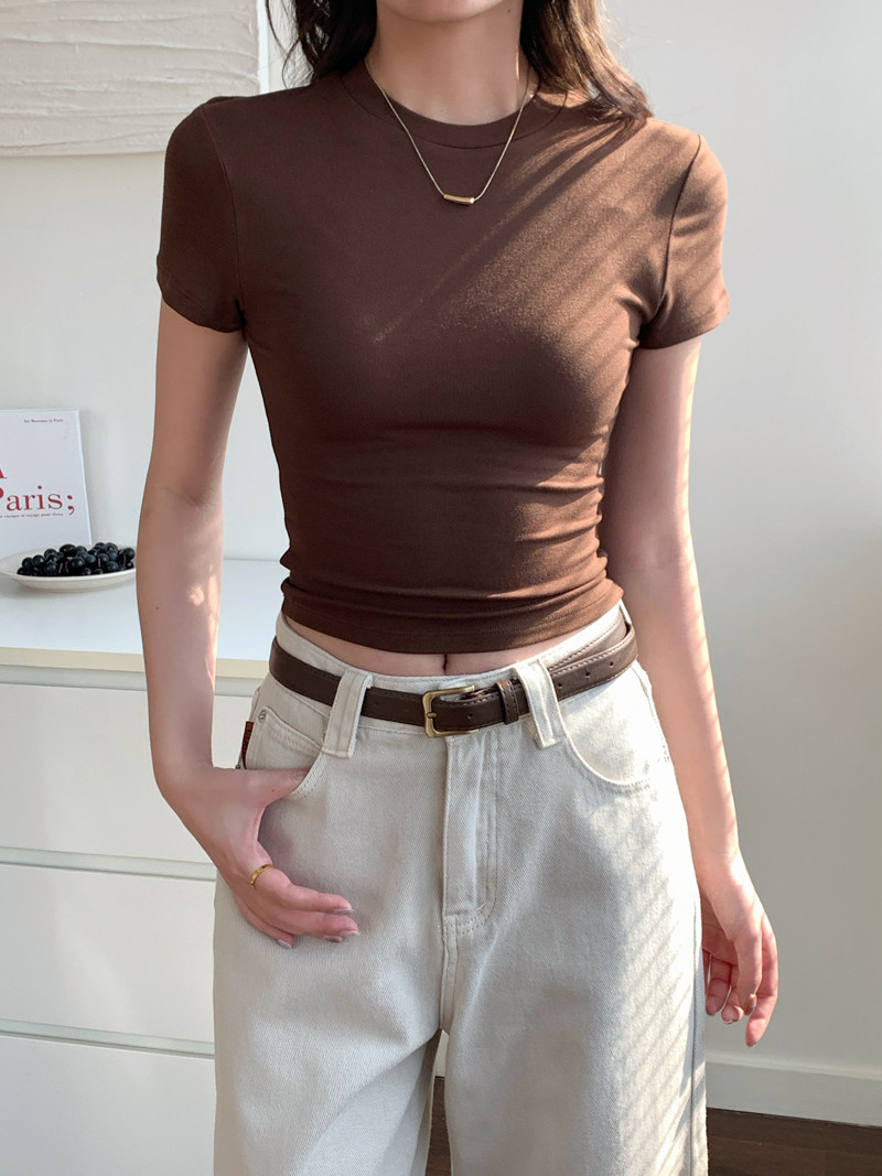 Unique and Beautiful Tight-Fitting Round-Neck Short-Sleeved T-Shirt for Women, Summer 2025 New Style, Slim-Fitting High-Waisted Short Top for Hot Girls