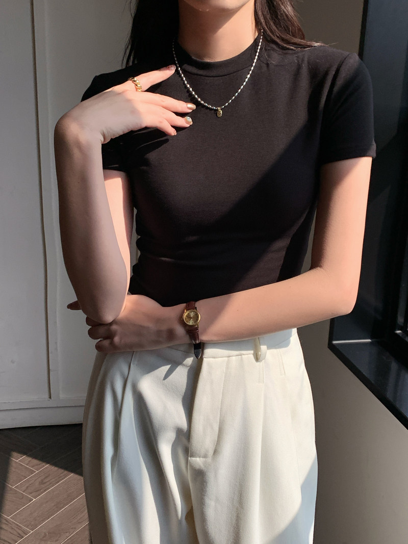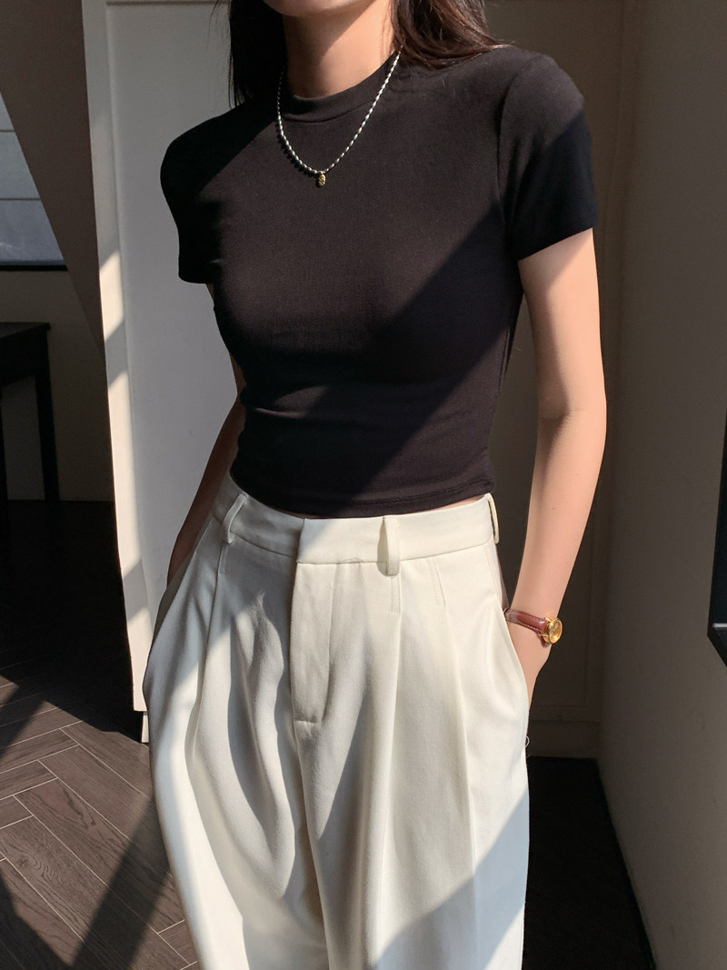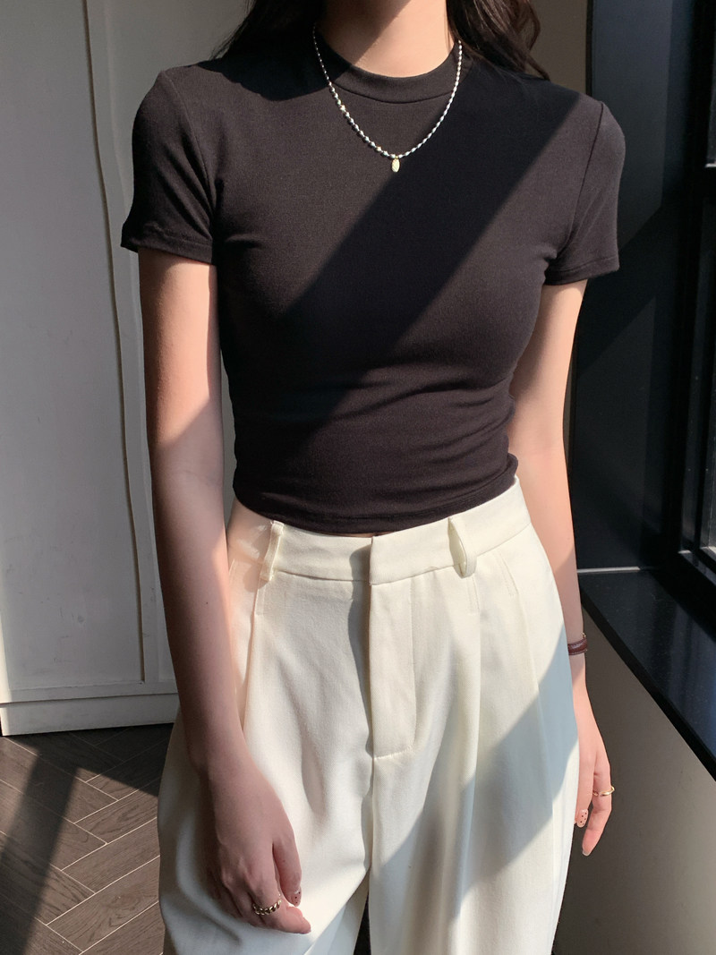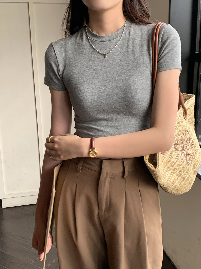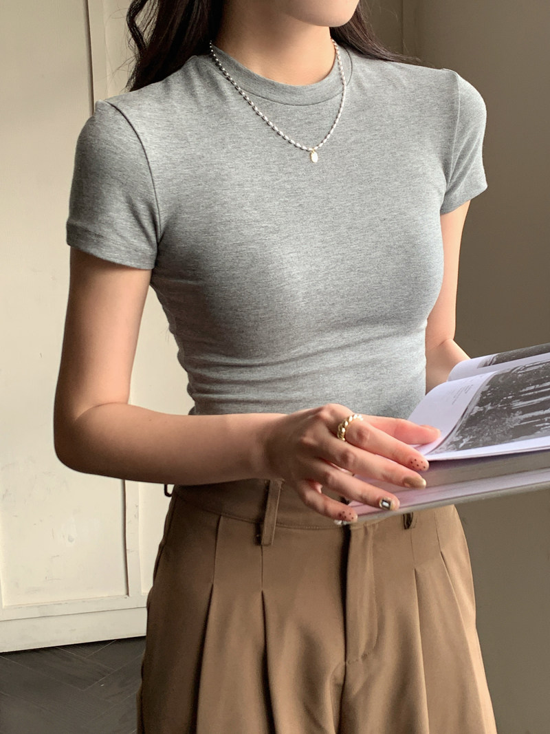 Unique and Beautiful Tight-Fitting Round-Neck Short-Sleeved T-Shirt for Women, Summer 2025 New Style, Slim-Fitting High-Waisted Short Top for Hot Girls