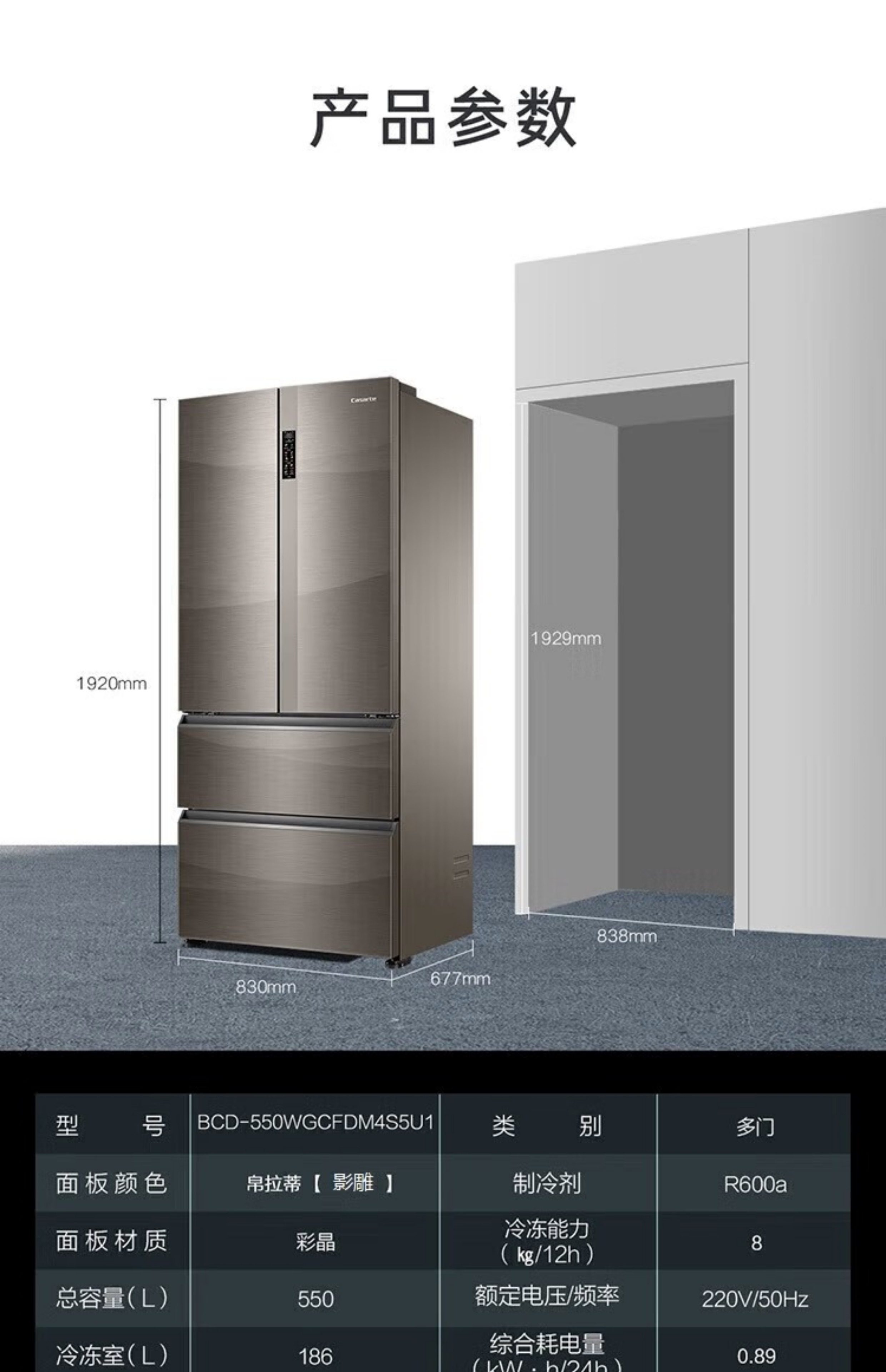 Casarte 550/551 Zero-Embedded Refrigerator Bcd-550Wgcfdm4S5U1-551Wlctdm4S5U1 Bola