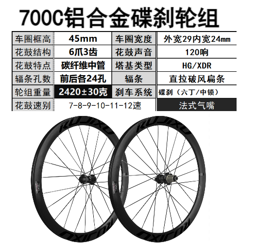 Rujixu 45mm Gravel Road Wheelset 700-45C/32C Disc Brake Wheelset Touring Bike Wheelset 120 Clicks