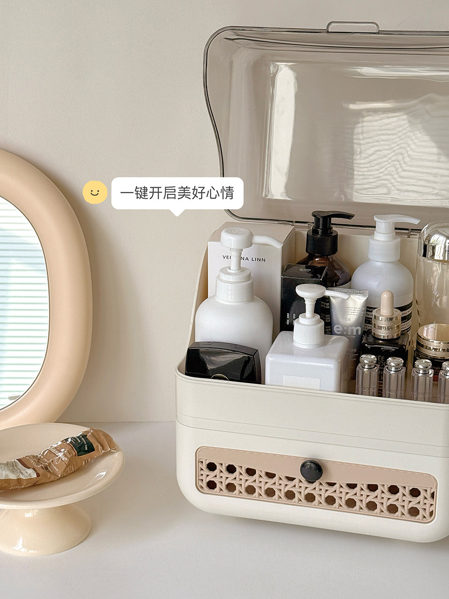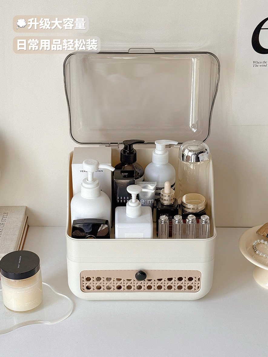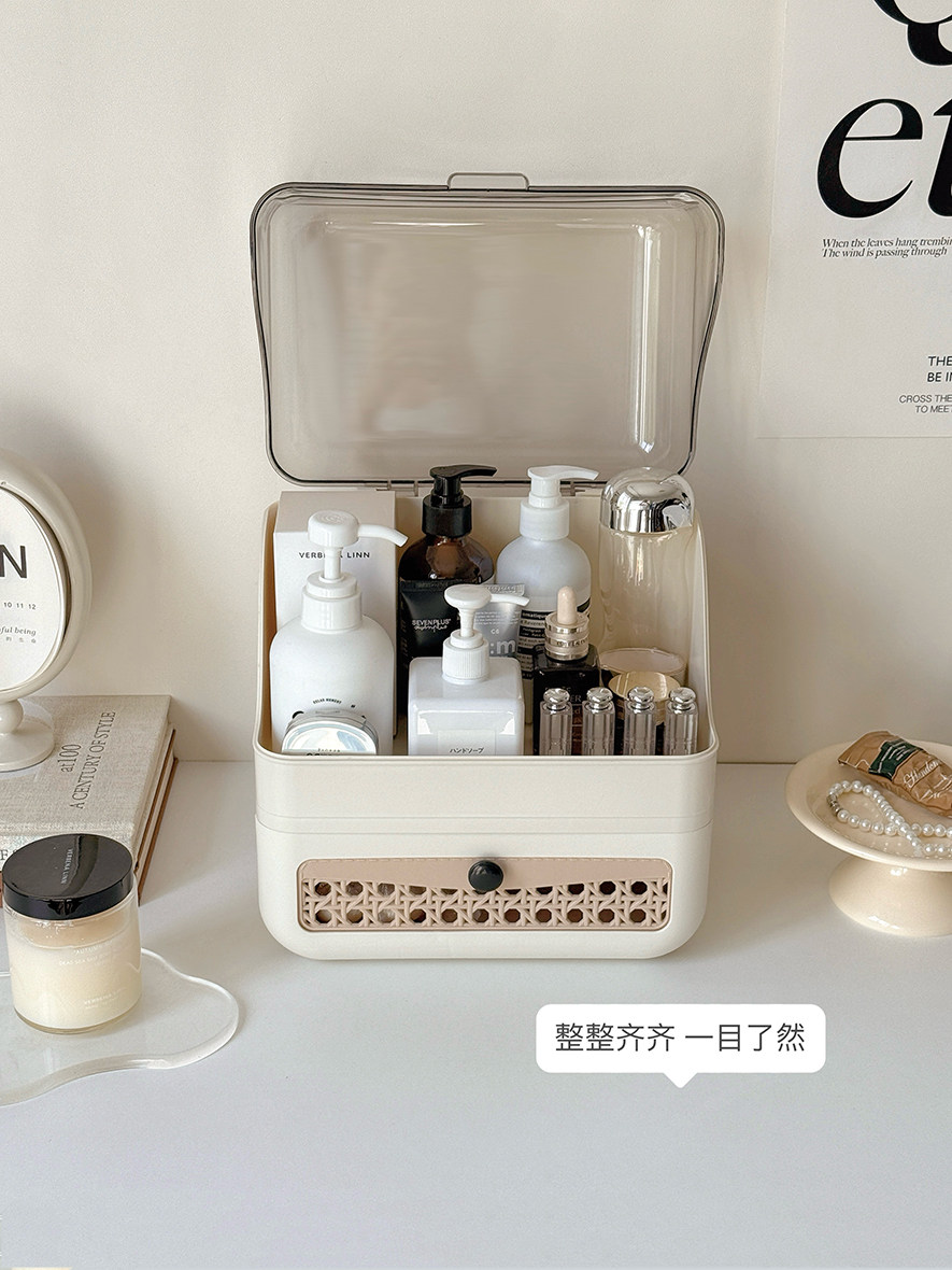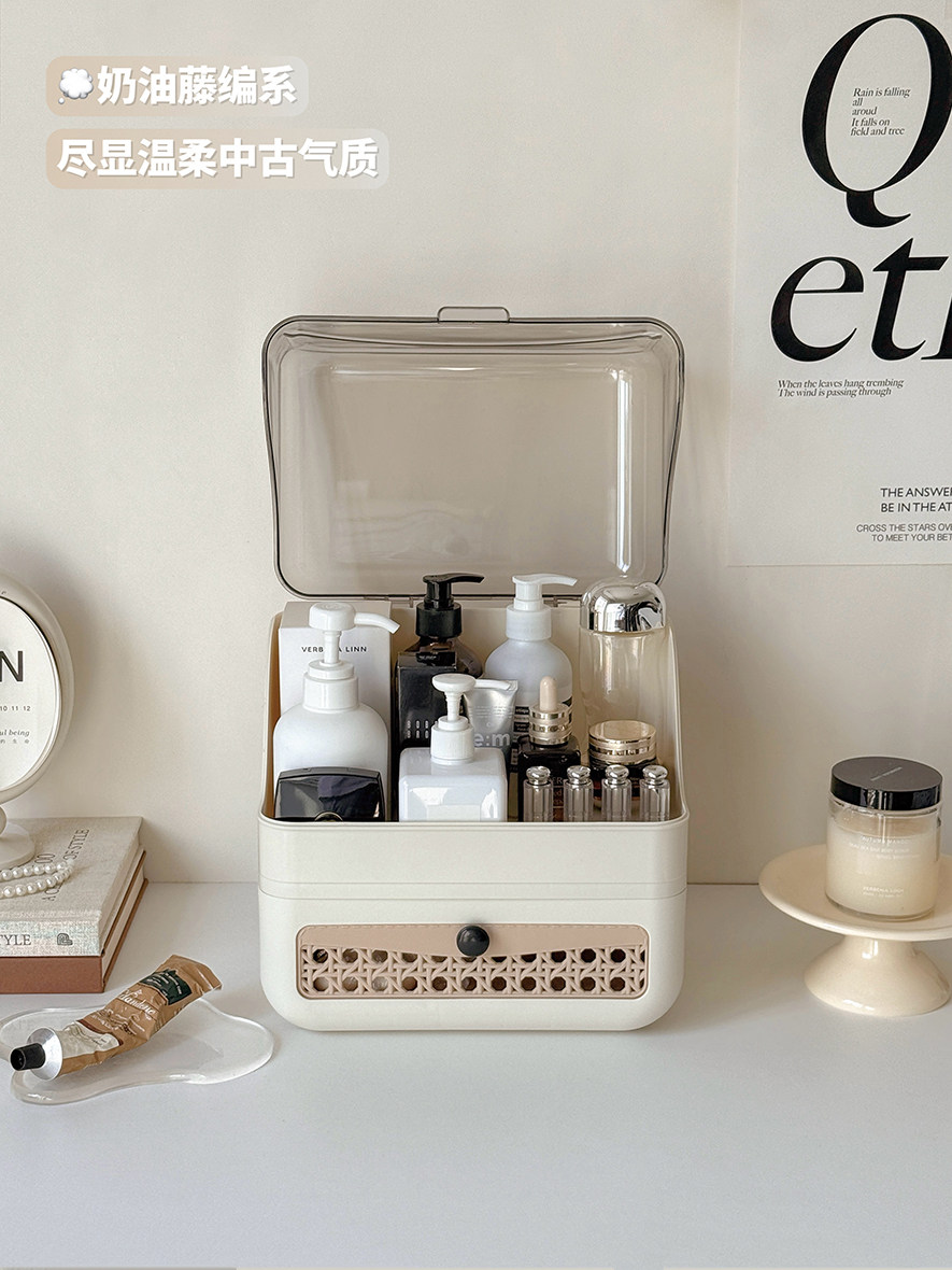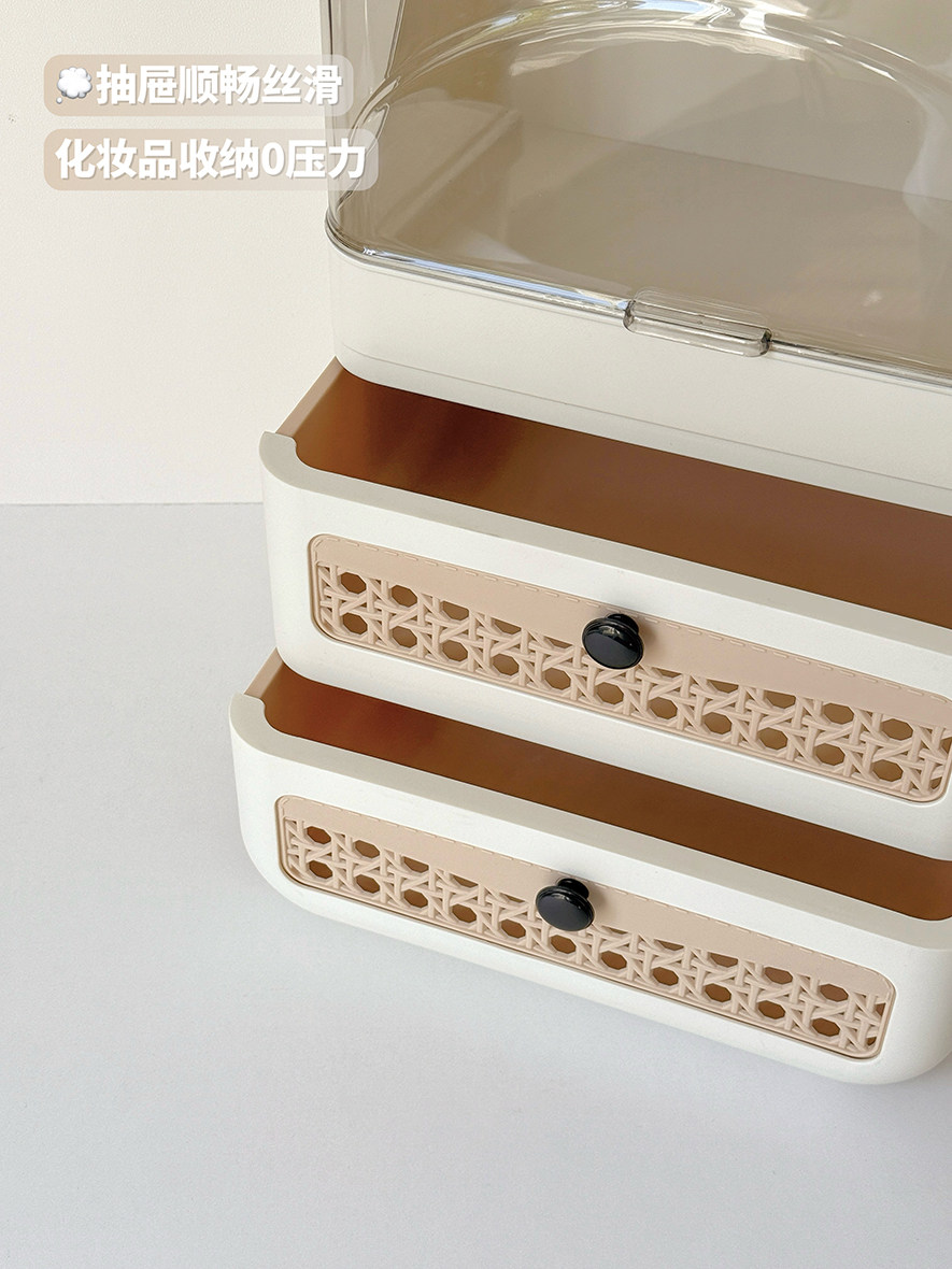 Cosmetic Storage Box Desktop Imitation Rattan Drawer-Style Large-Capacity Dust-Proof New Style Dressing Table Internet Celebrity Storage Rack