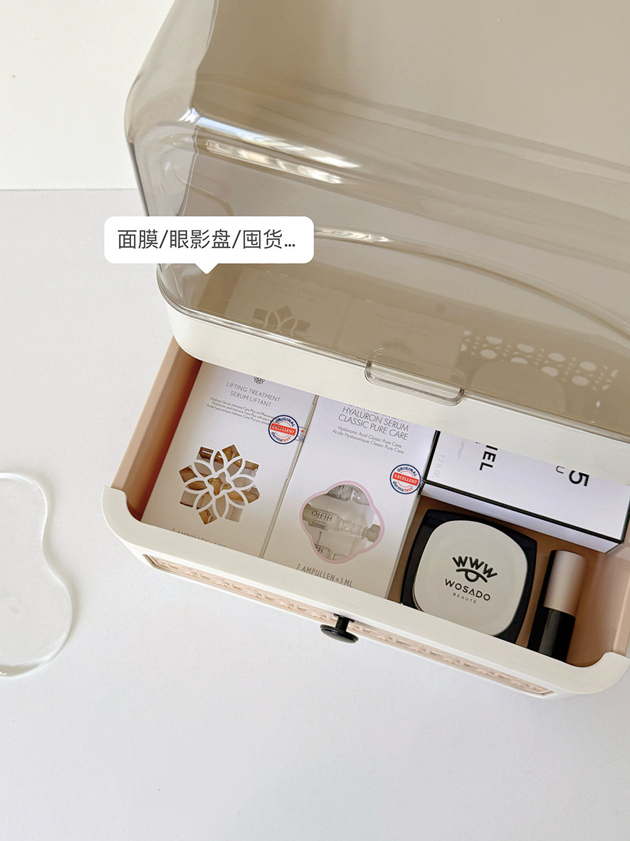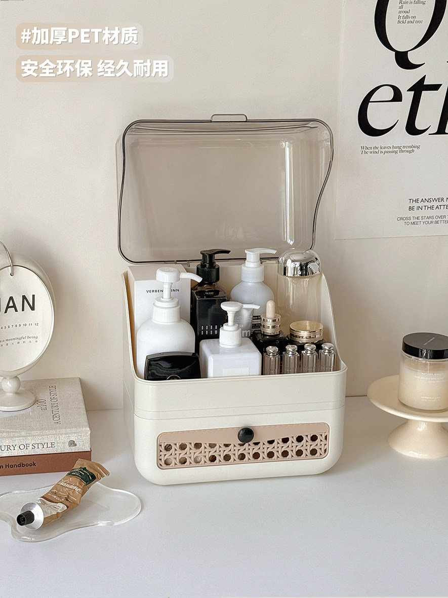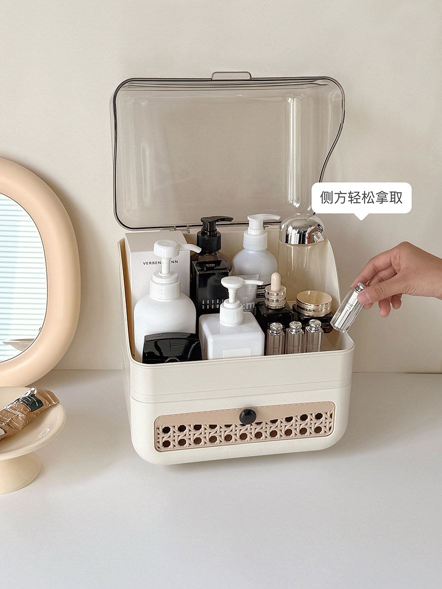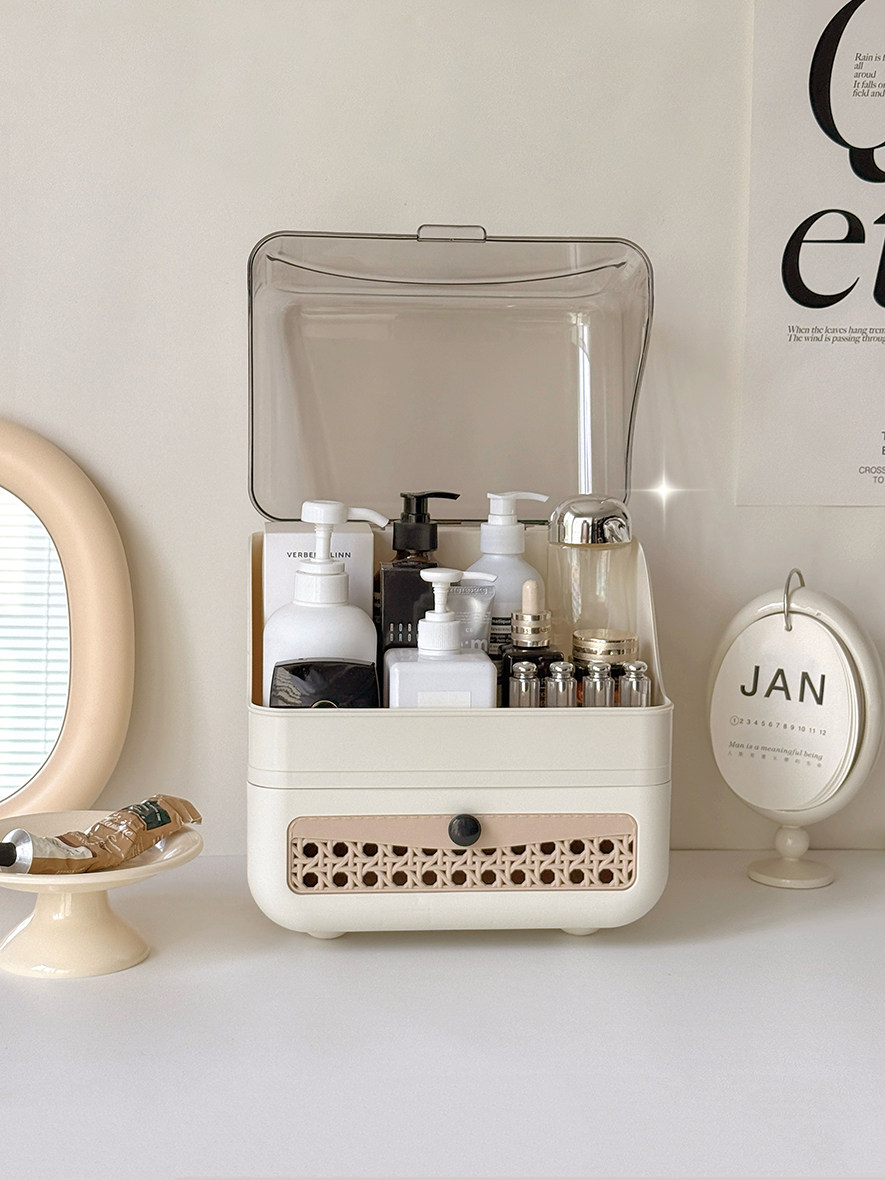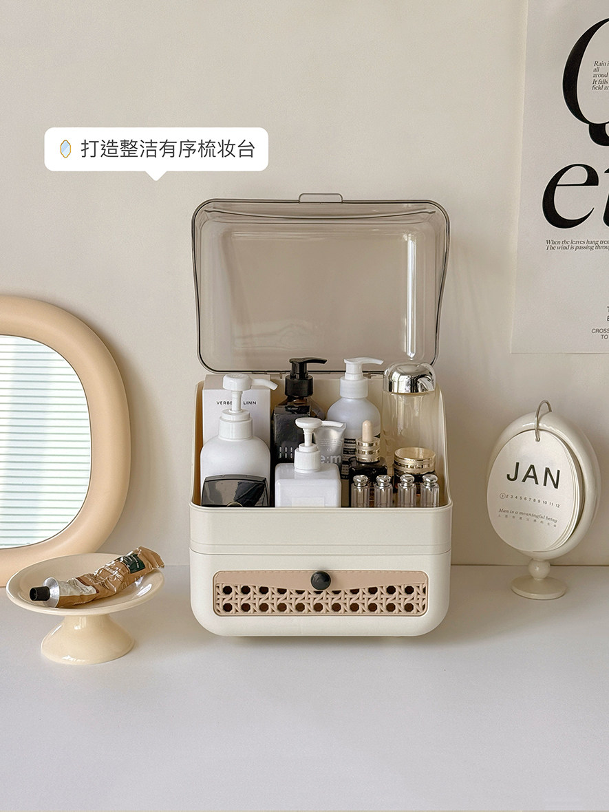 Cosmetic Storage Box Desktop Imitation Rattan Drawer-Style Large-Capacity Dust-Proof New Style Dressing Table Internet Celebrity Storage Rack