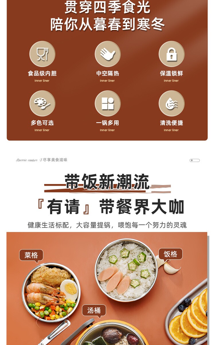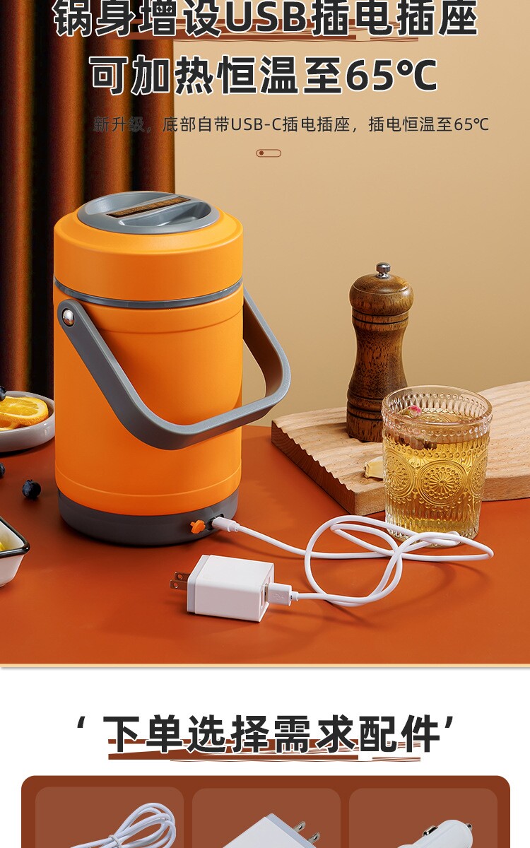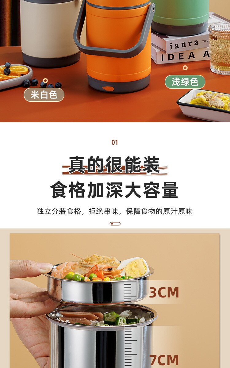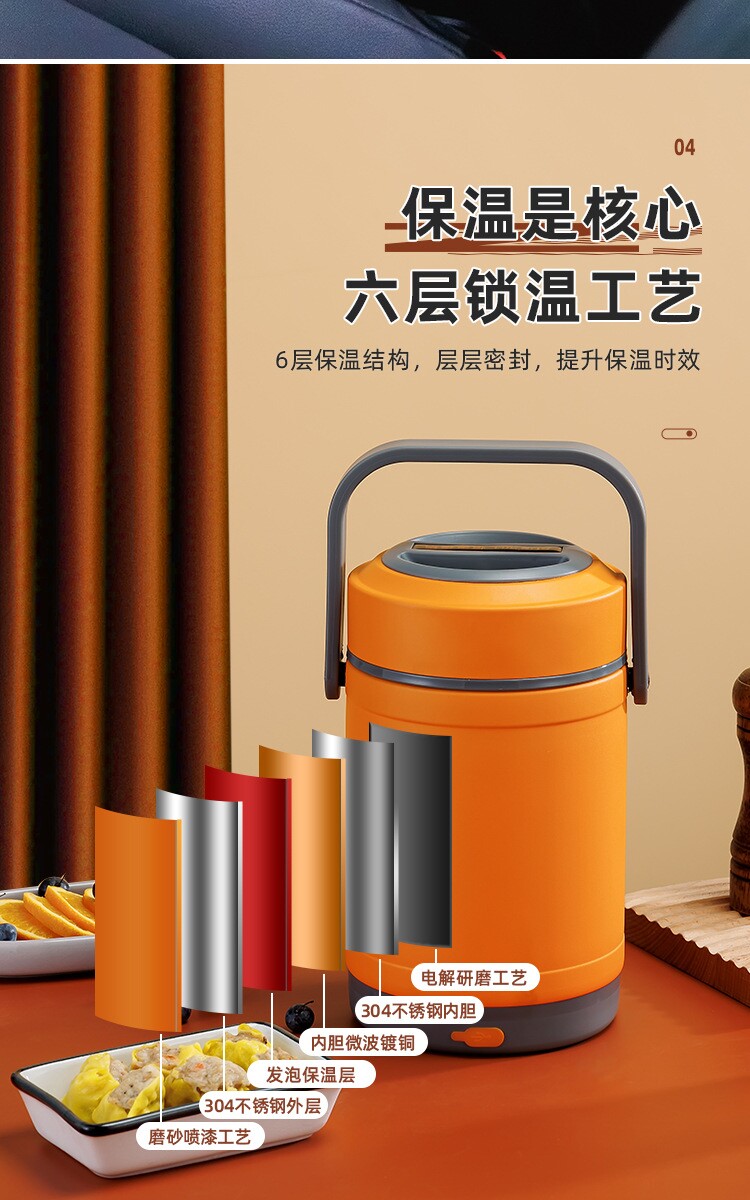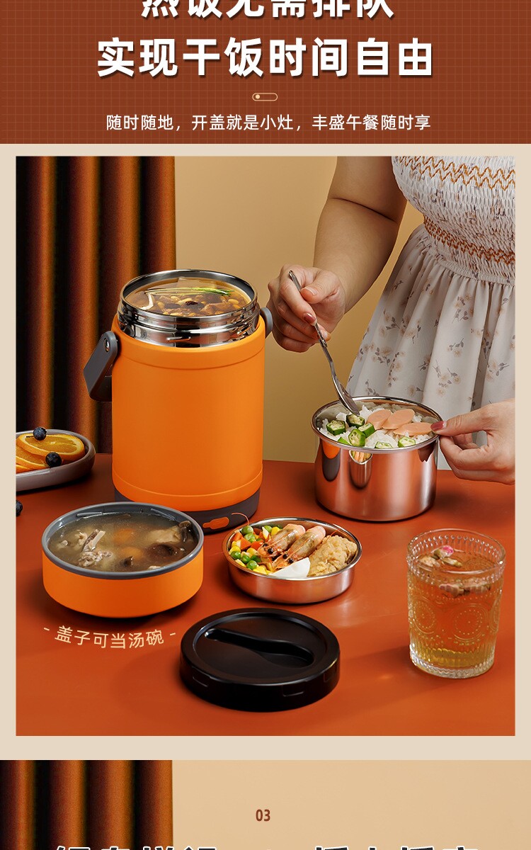 Insulated Lunch Box Can Be Plugged in for Heating, Portable Lunch Box for Office Workers and Students, 24-Hour Ultra-Long Constant Temperature, Large-Capacity Lunch Box