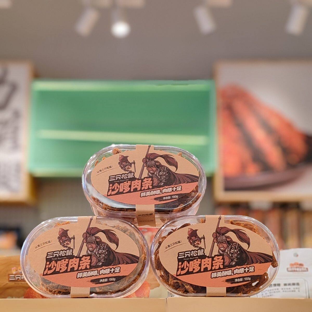 Three Squirrels Satay Meat Strips 150g Boxed Slightly Spicy Dried Meat Snacks Nuts Roasted Seeds and Dried Fruits to Satisfy Your Cravings