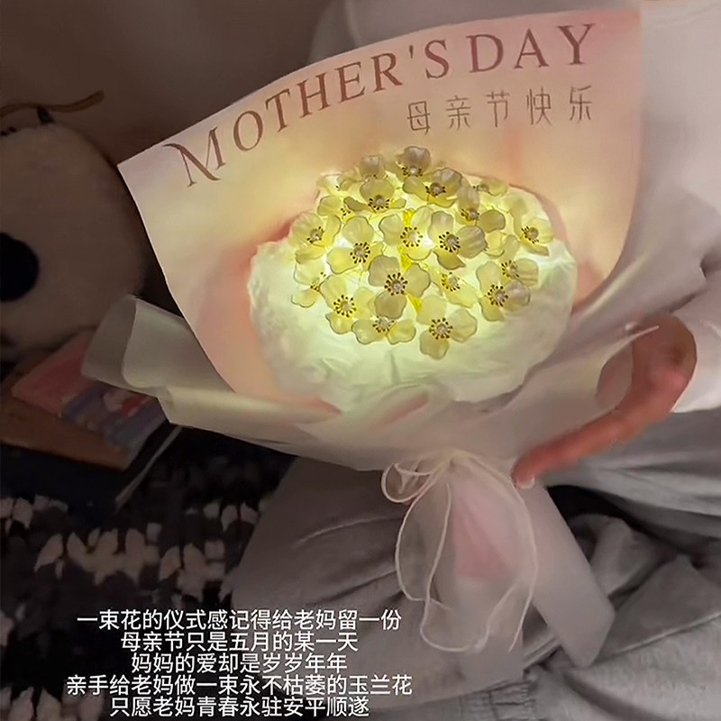 Hand-Woven DIY Magnolia Flower Bouquet Material Kit LAOSHU Artificial Flower Bouquets Mother's Day Gift for Mom