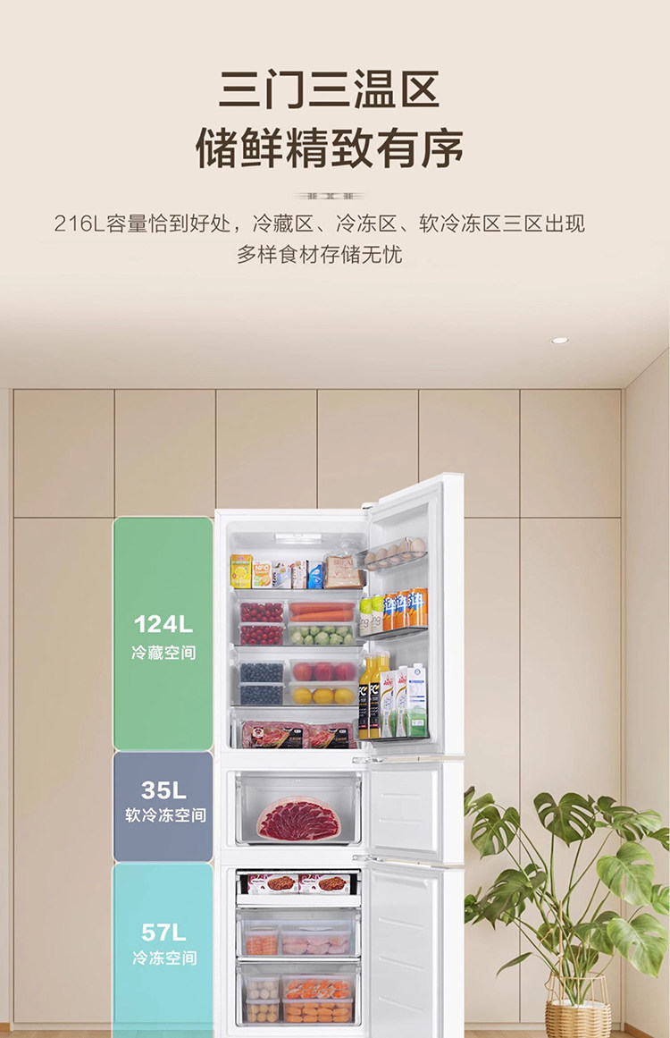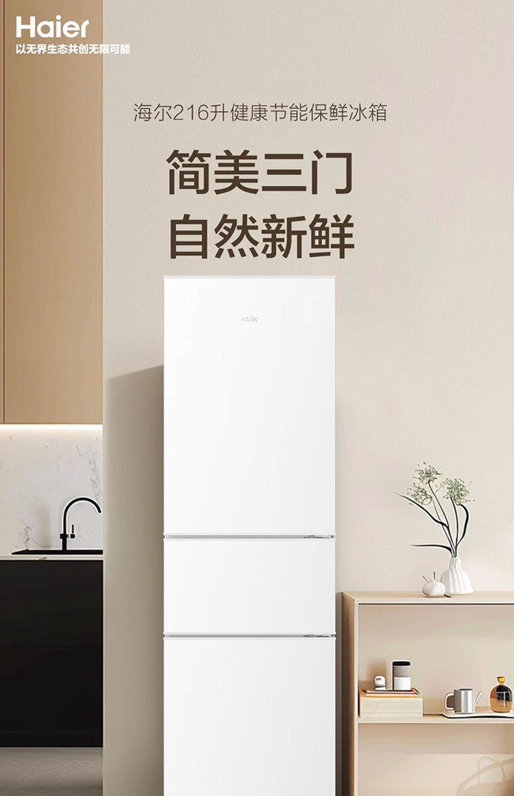 Haier Bcd-216Lhc3E0Wv Three-Door Refrigerator and Freezer Household Small Energy-Saving White Mini Refrigerator