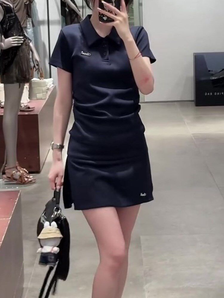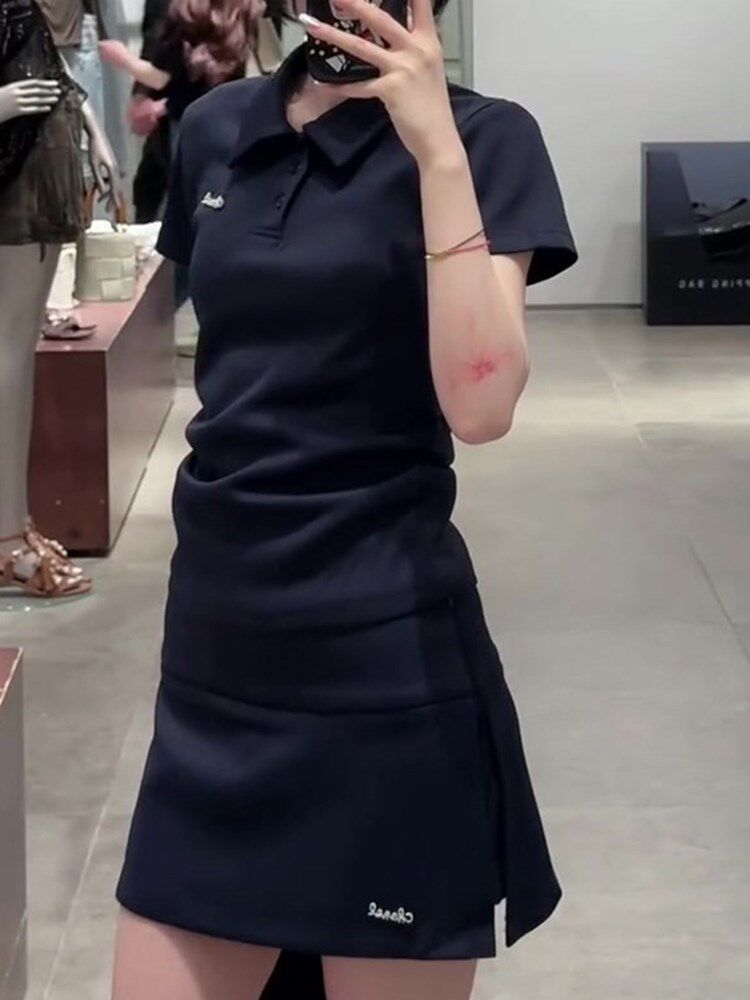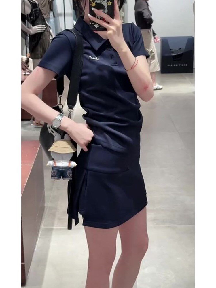 Super Nice-Looking New Summer Casual Sports Style High-End Elegant Polo Collar Short-Sleeved T-Shirt and Skirt Suit