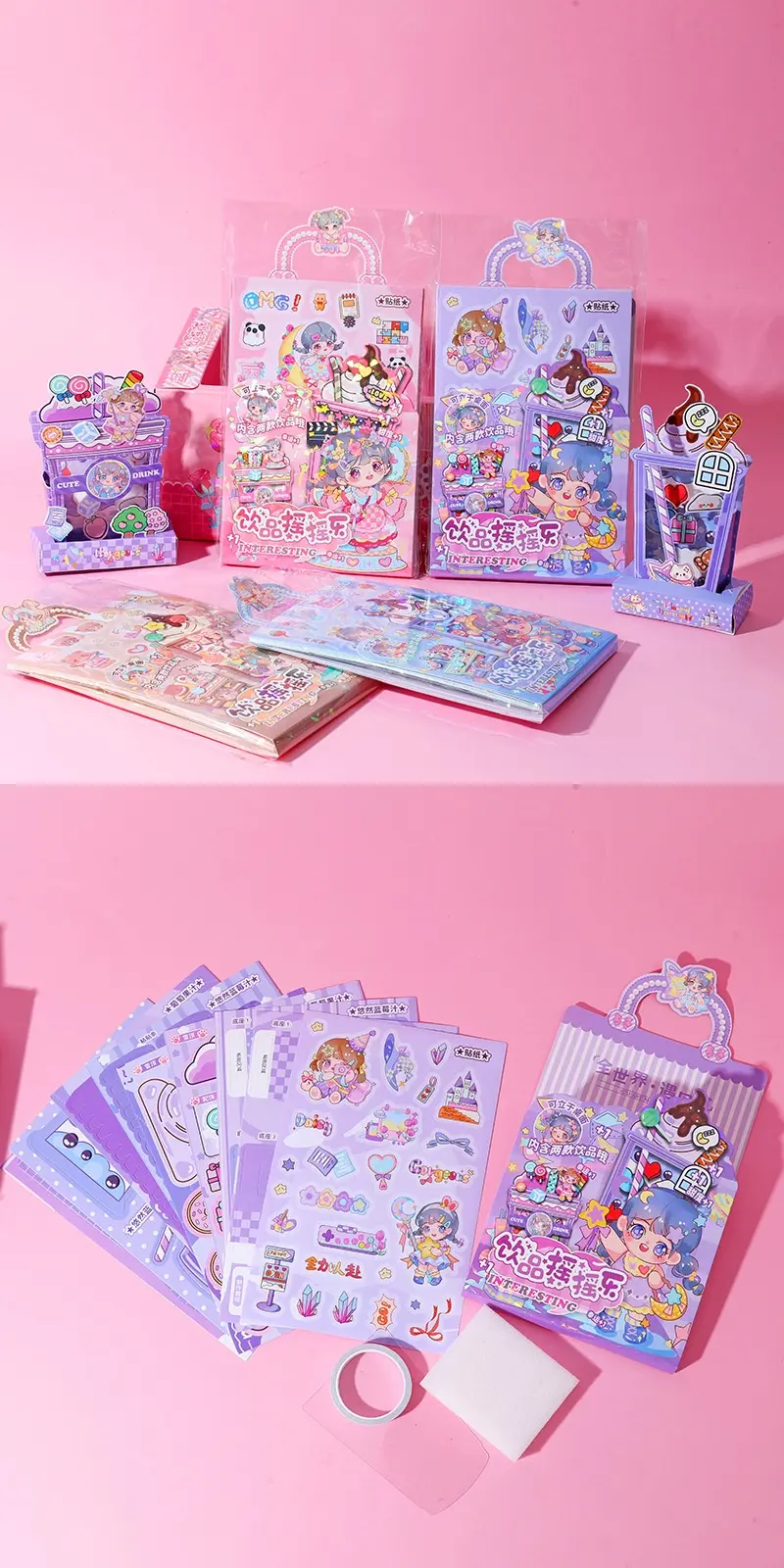 Ahuajiang Drink Shake Stickers (8 Pieces/Display Box) Cute Cartoon Journal Stickers No-Cut Sticker Pack