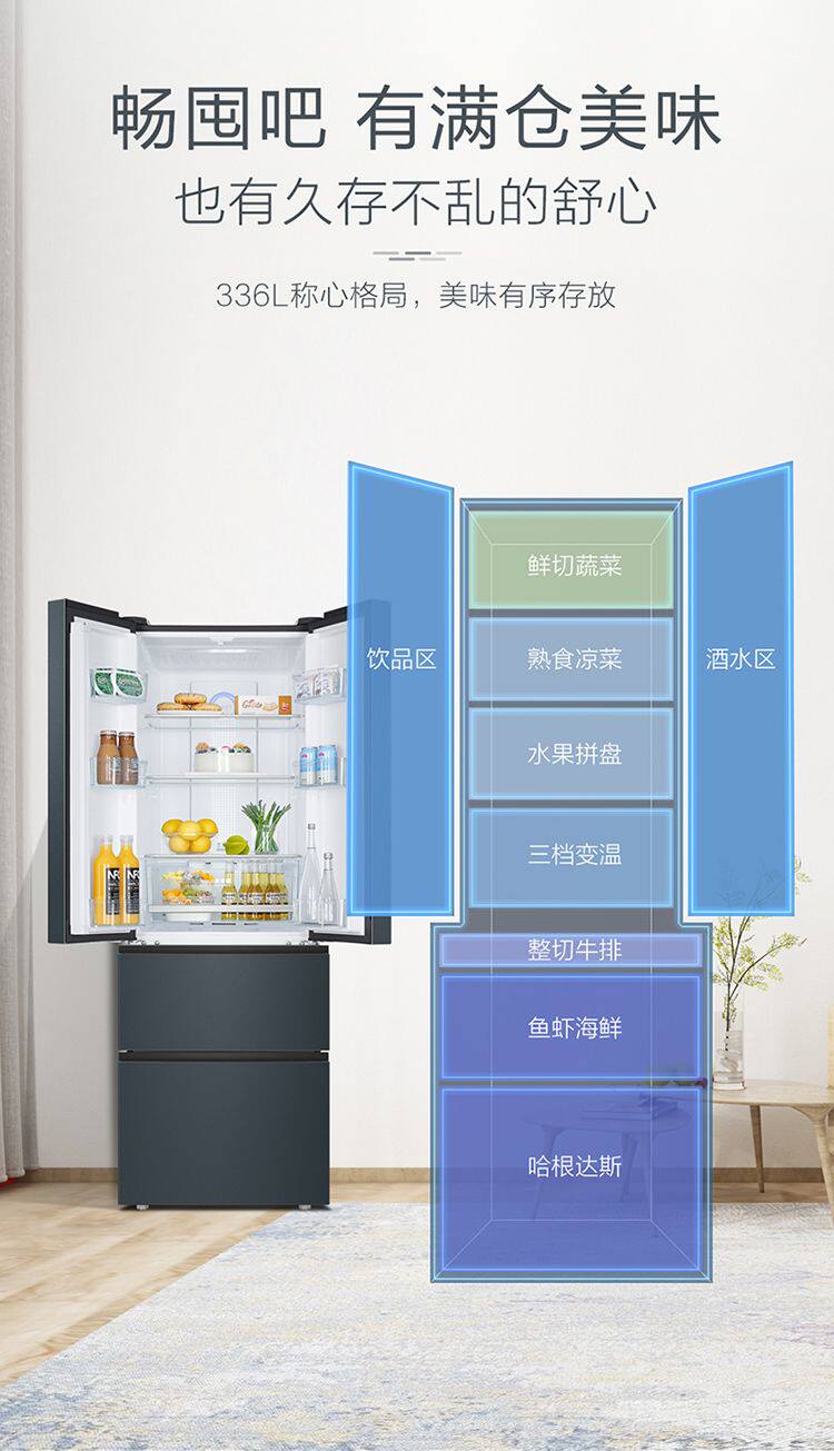 Haier/Haier Refrigerator French-Style Multi-Door Household First-Class Energy Efficiency Air-Cooled Frost-Free Bcd-336Wlhfd9Dc9
