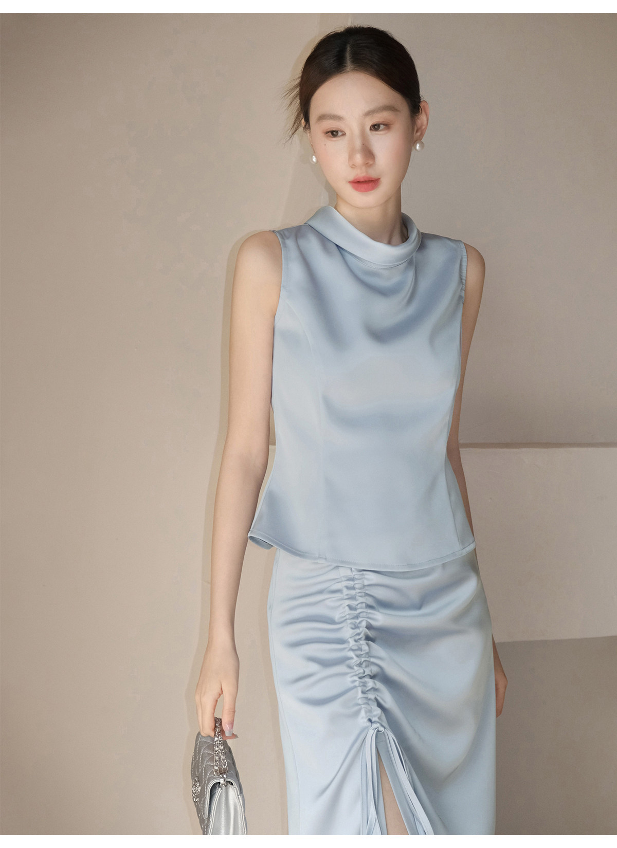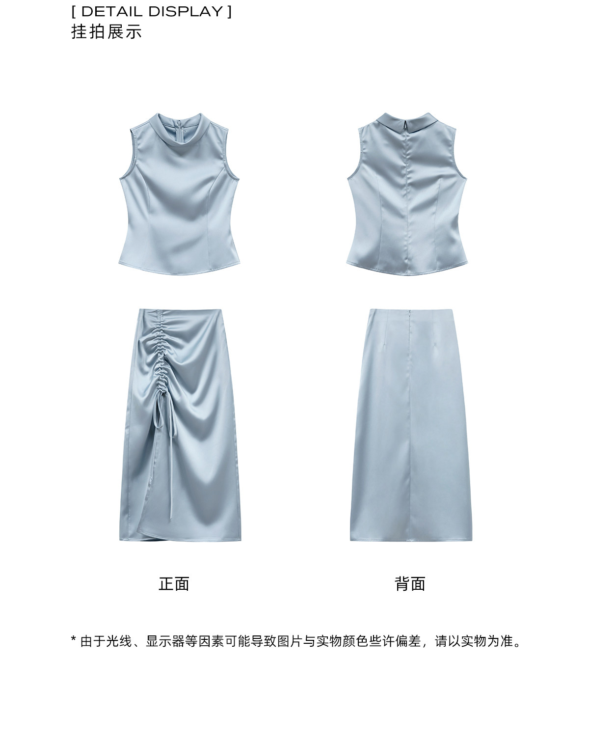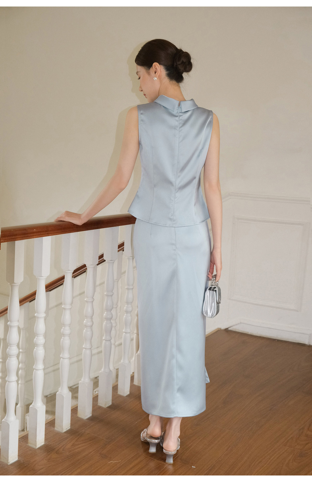 Xxning French-Style Turn-Down Collar Vest and Skirt Set for Women, Light Luxury, High-End Feel, Imitation Acetate Satin Two-Piece Set