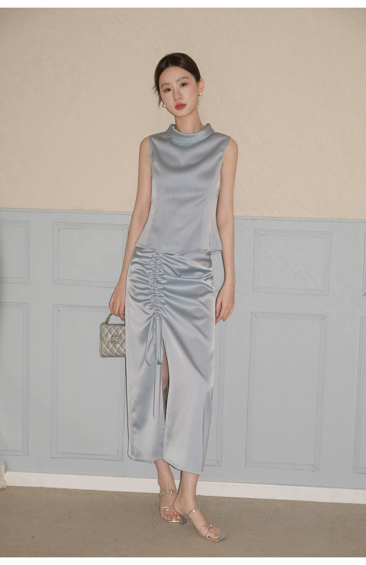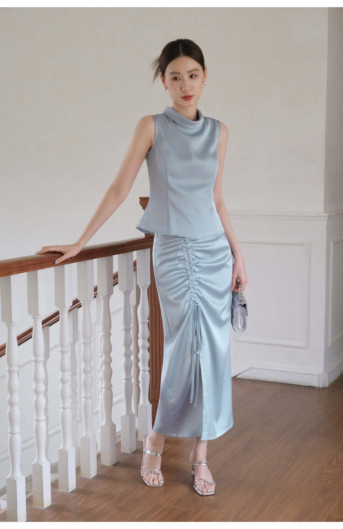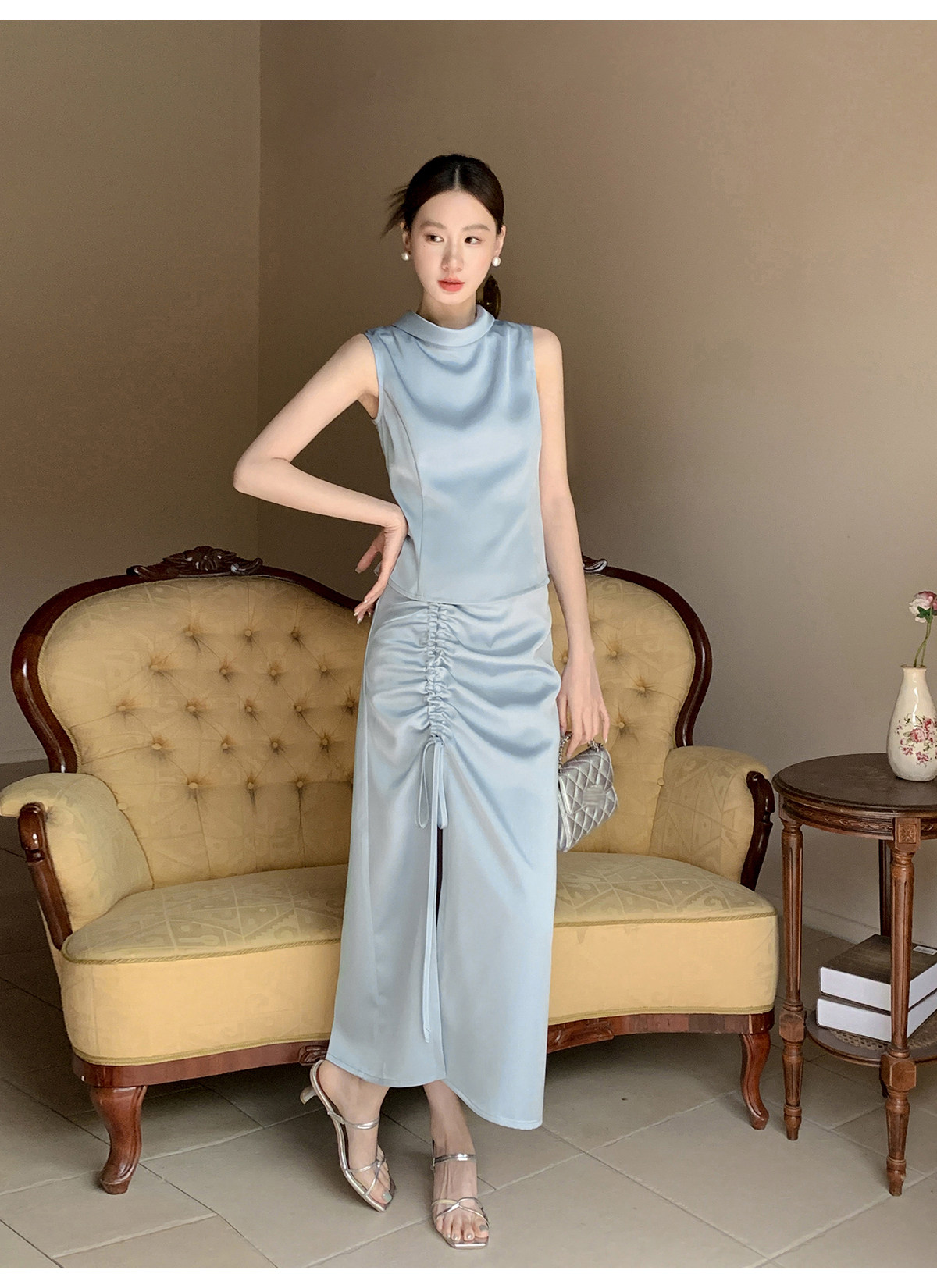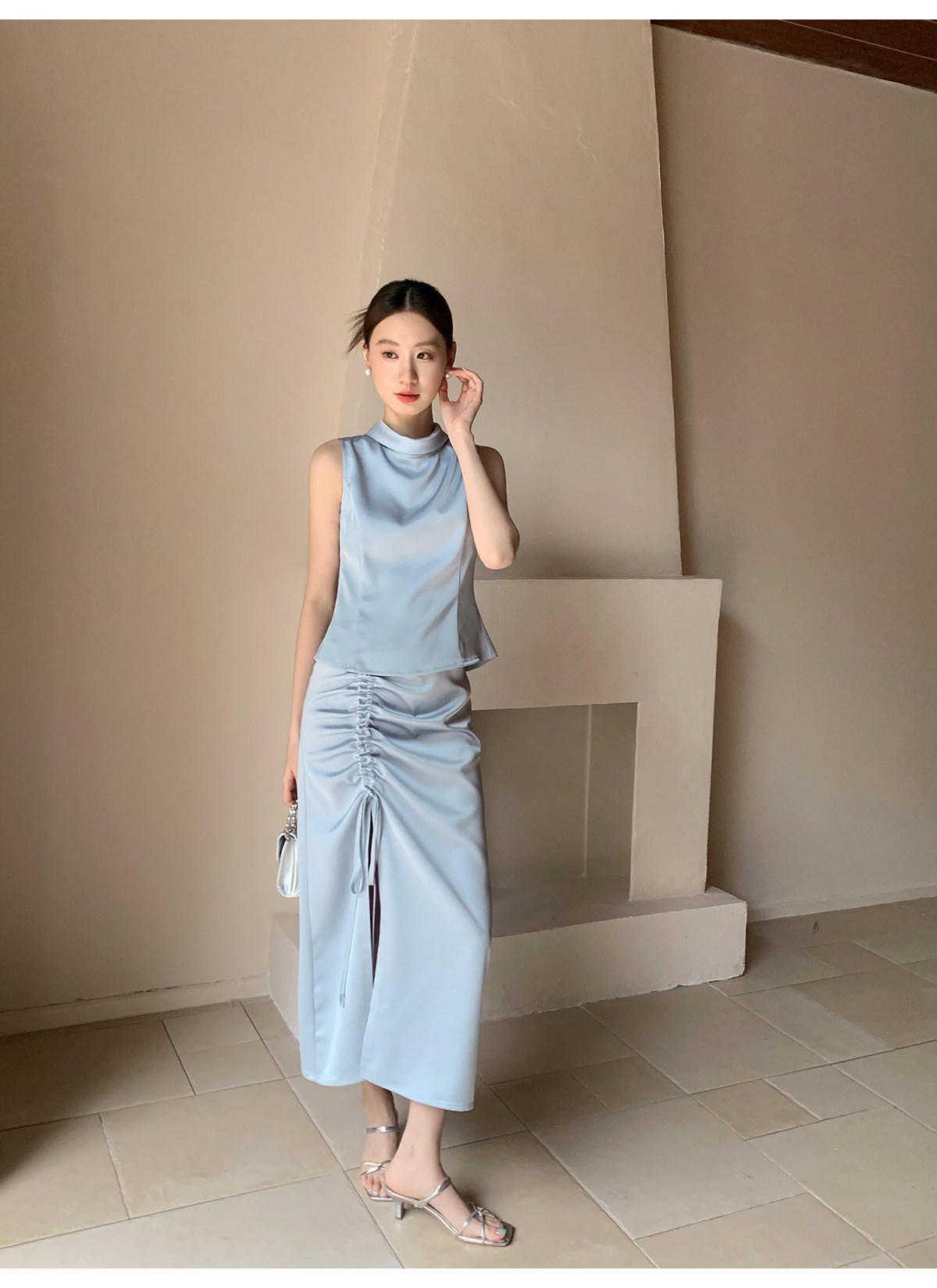 Xxning French-Style Turn-Down Collar Vest and Skirt Set for Women, Light Luxury, High-End Feel, Imitation Acetate Satin Two-Piece Set