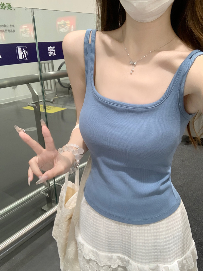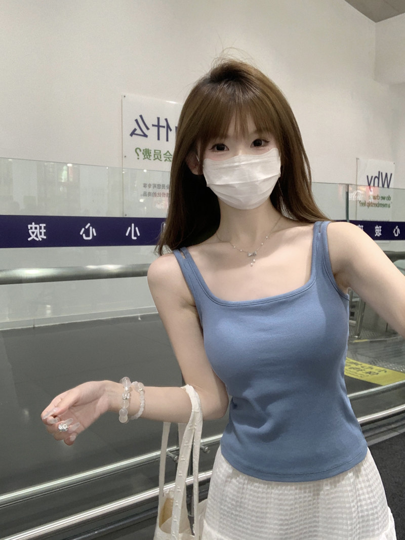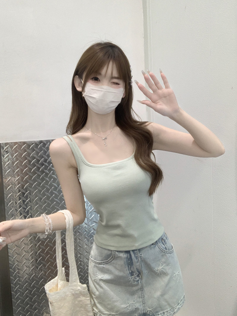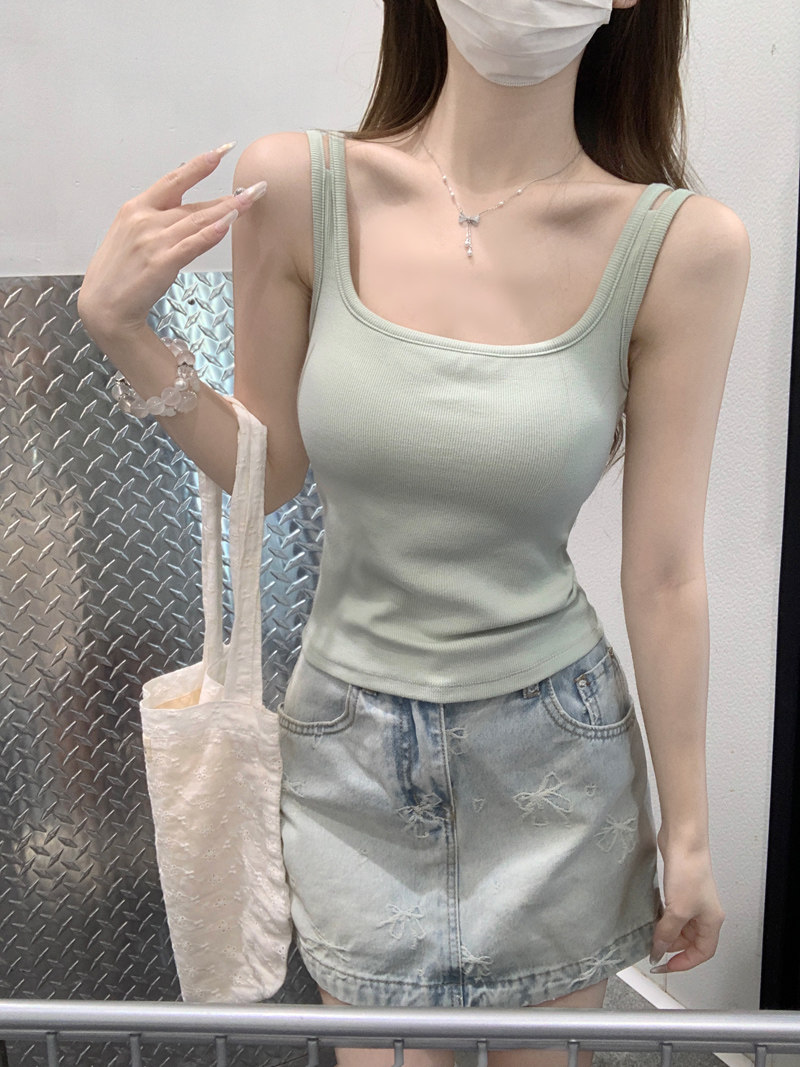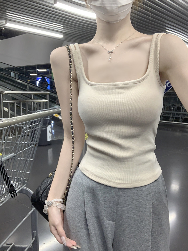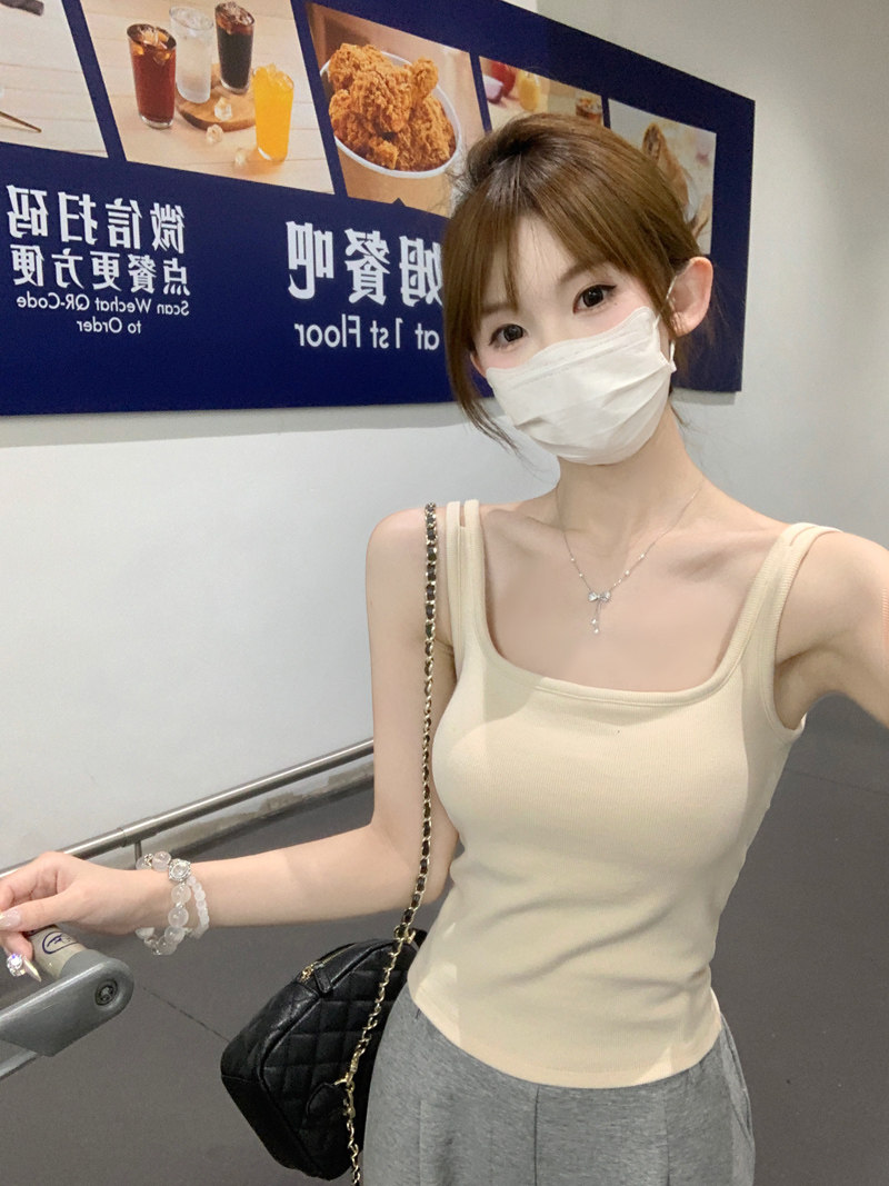 Gentle Cream-Colored Square-Neck Camisole with Chest Pads for Women, New Summer Slim-Fit Tank Top, Trendy Base Shirt for Women