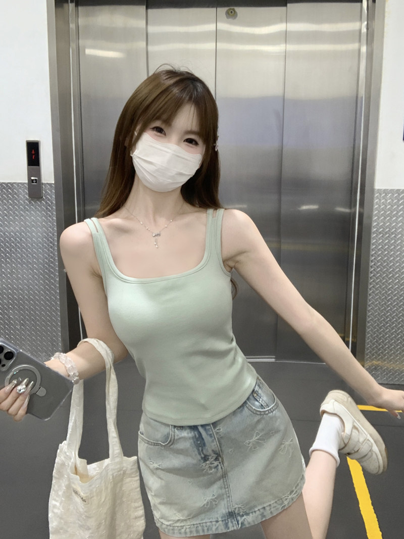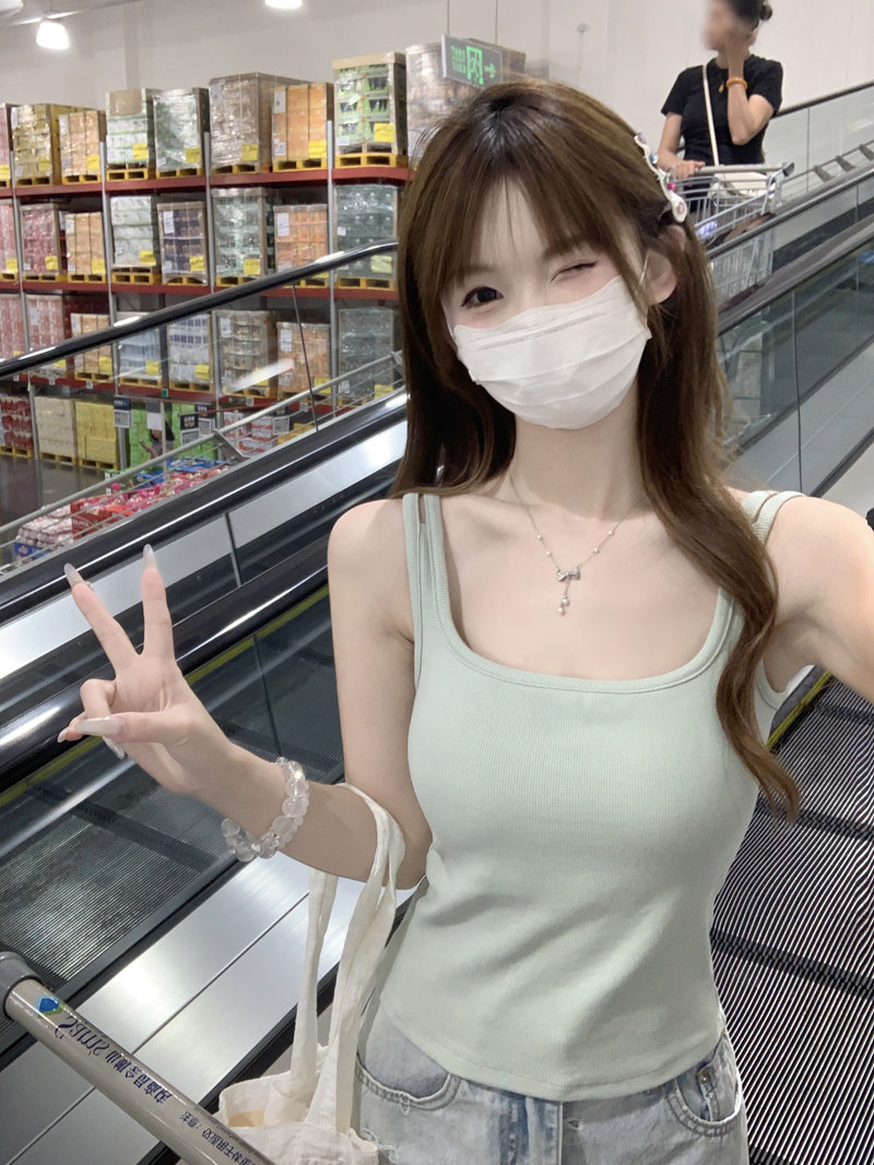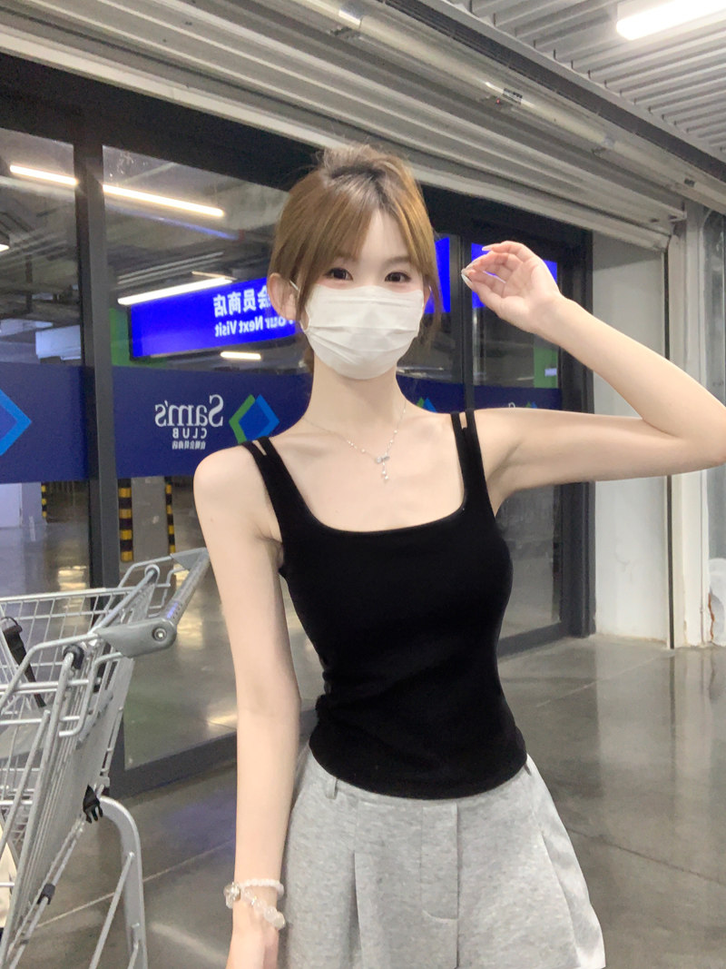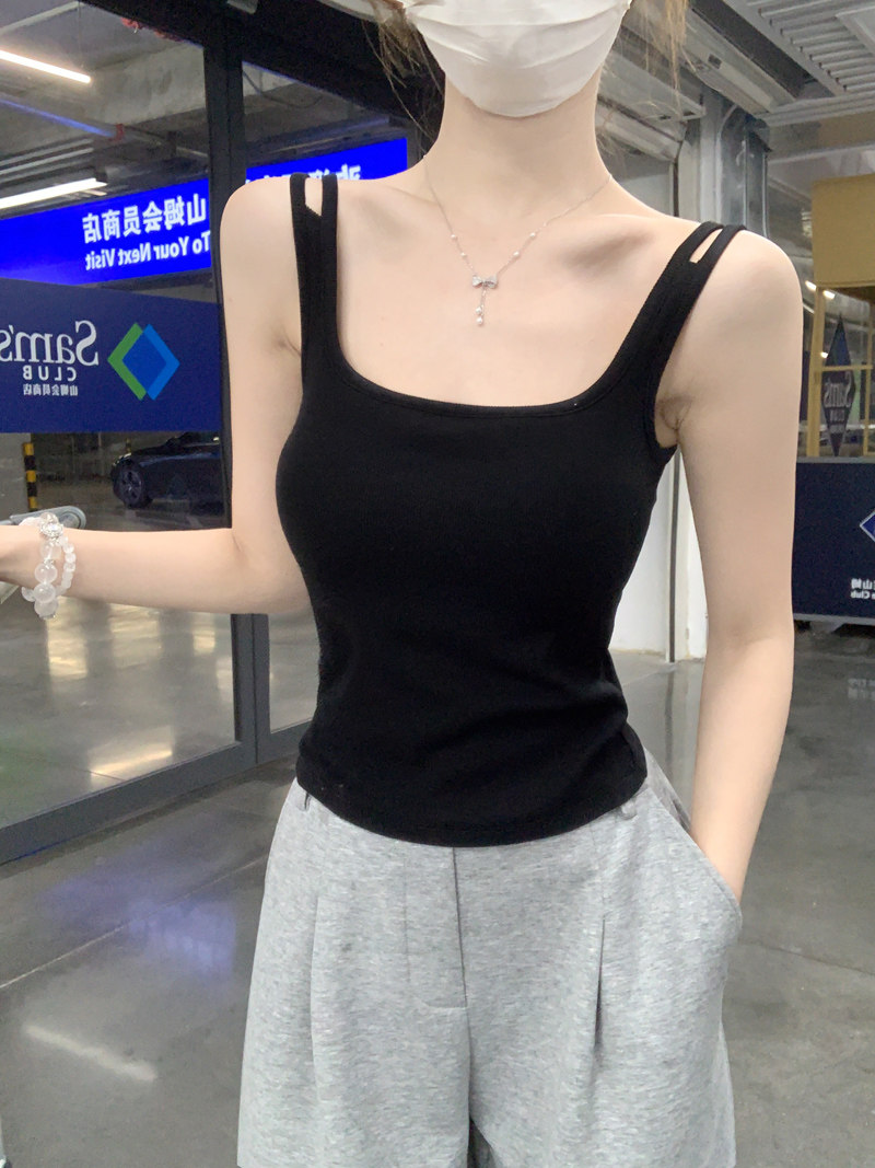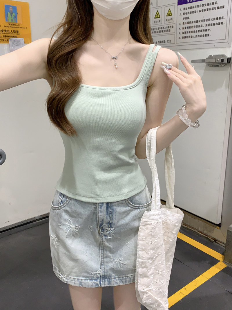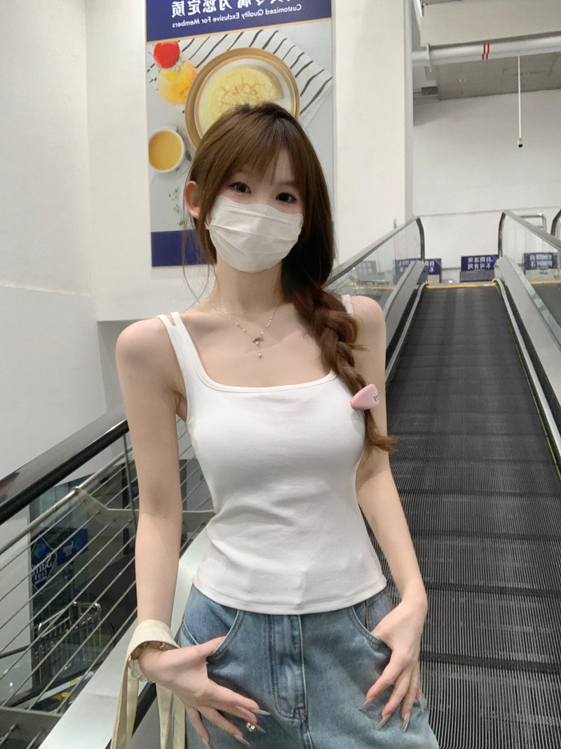 Gentle Cream-Colored Square-Neck Camisole with Chest Pads for Women, New Summer Slim-Fit Tank Top, Trendy Base Shirt for Women