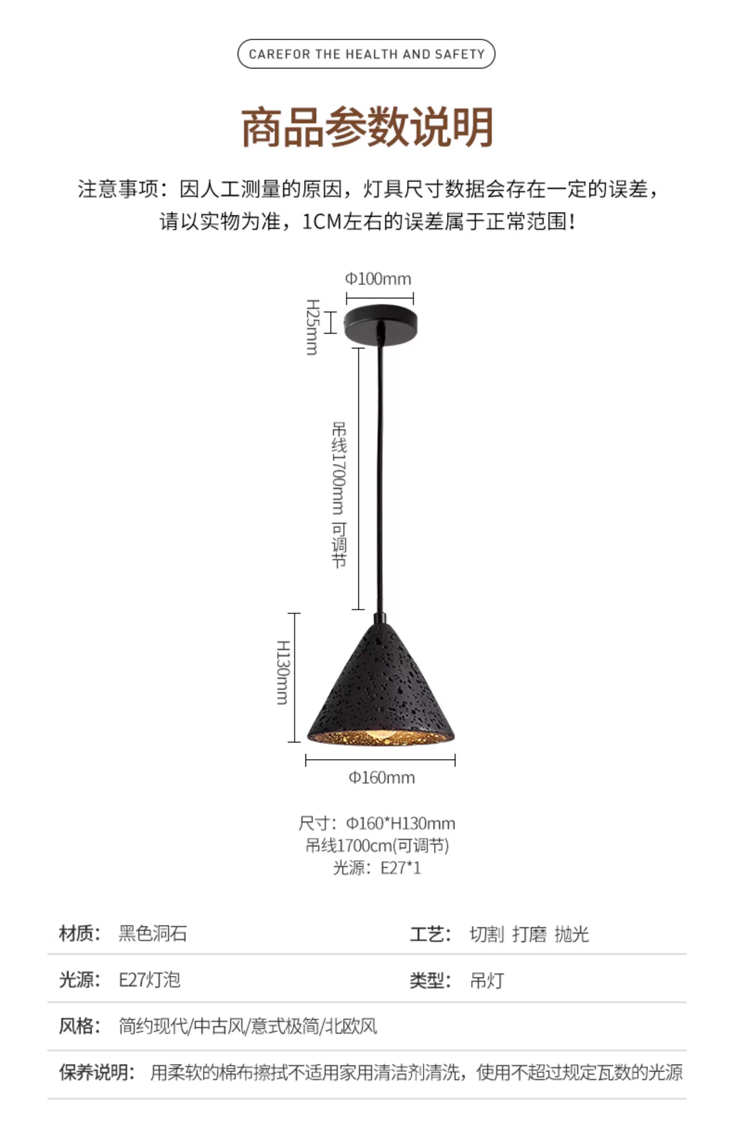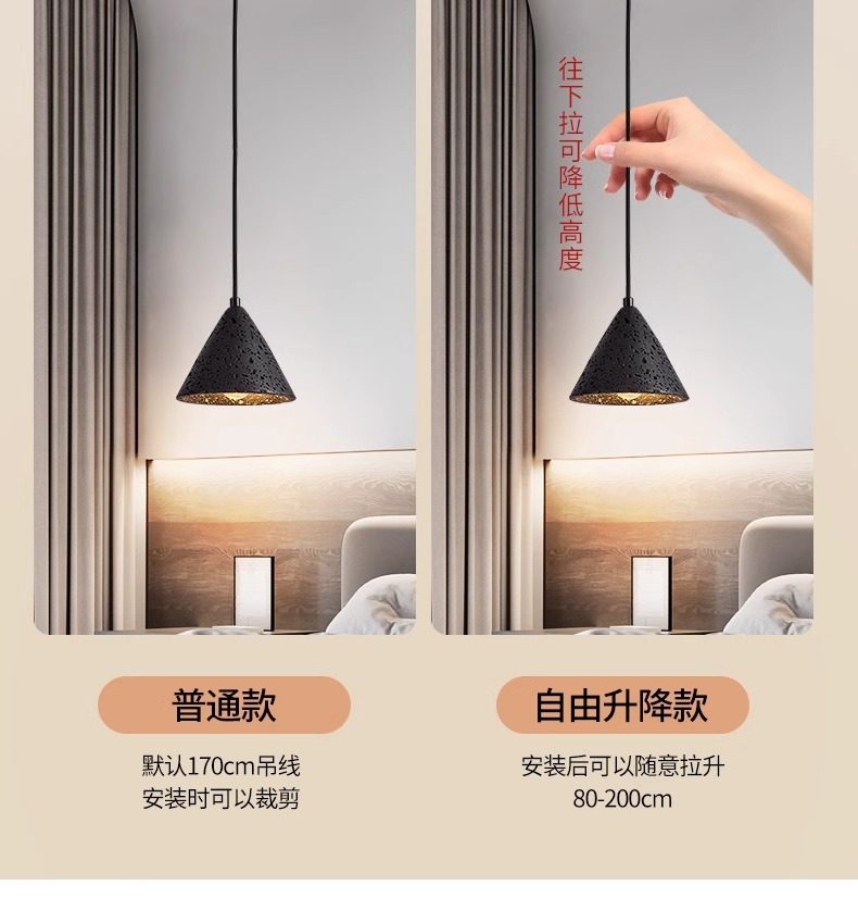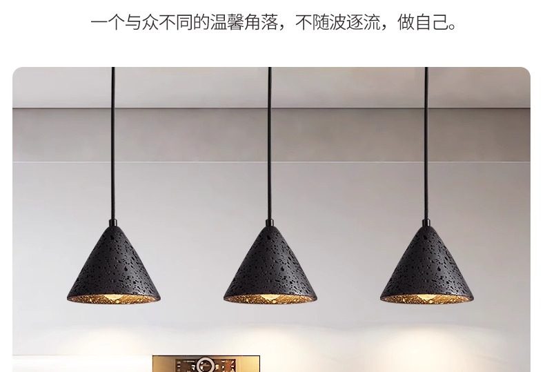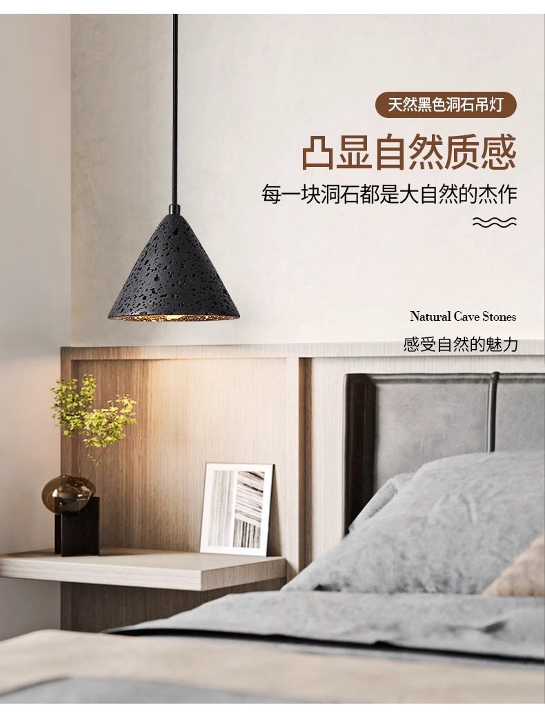 Natural black hole stone simple modern bedroom bedside chandelier mid-century style minimalist restaurant bar cafe chandelier