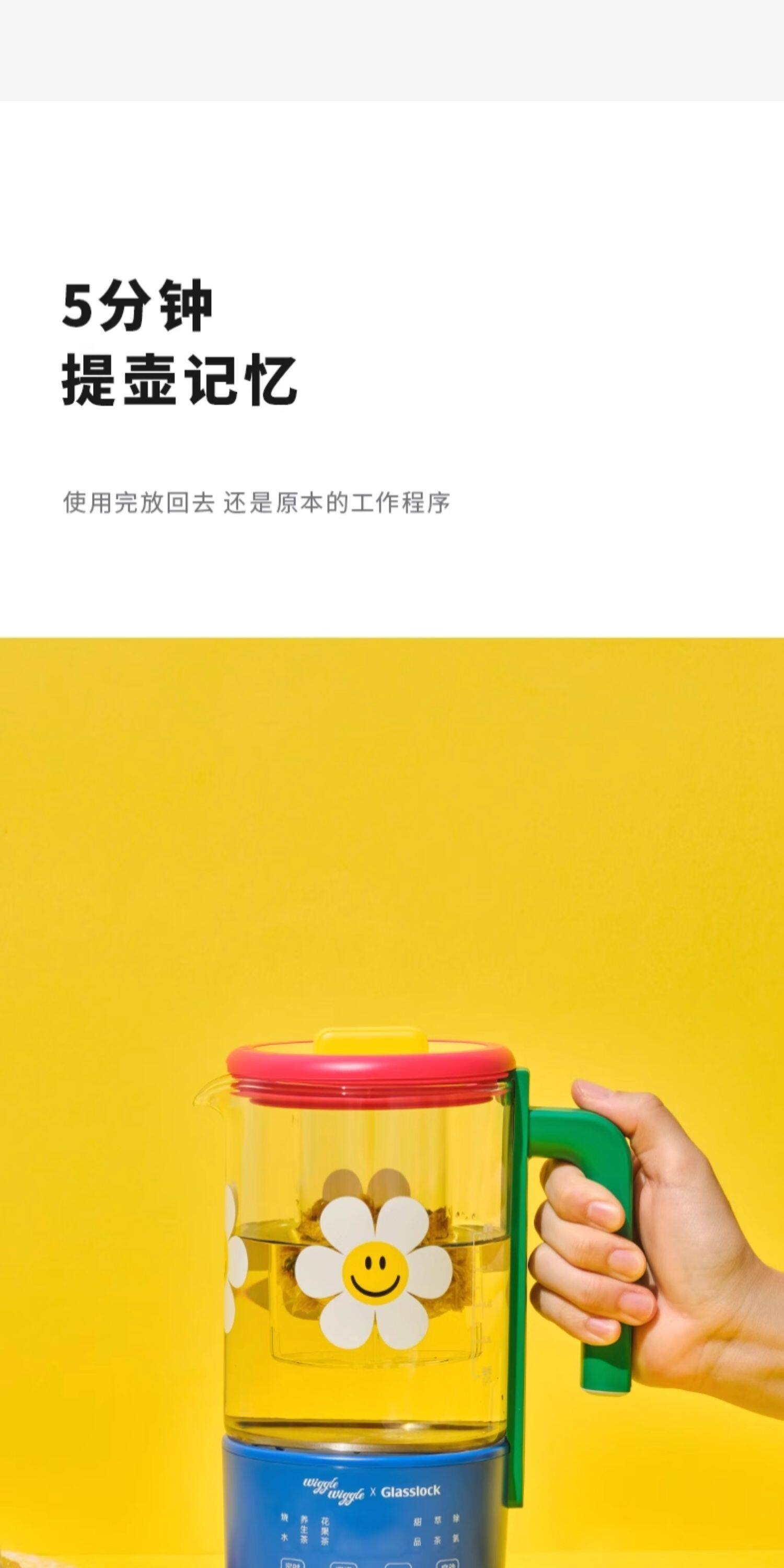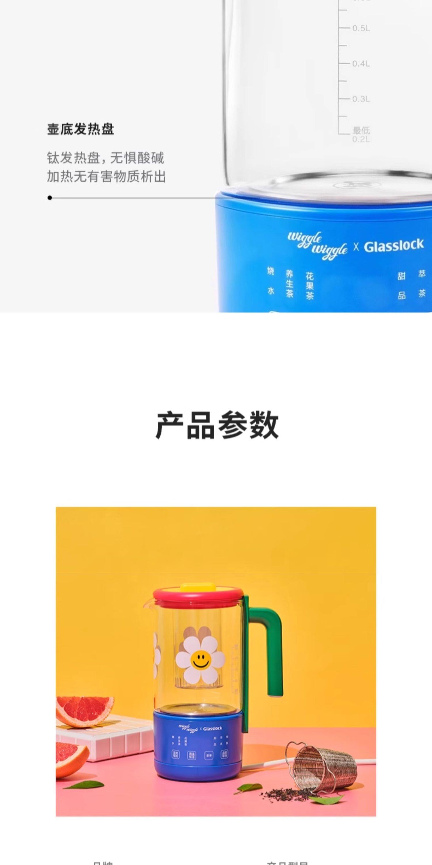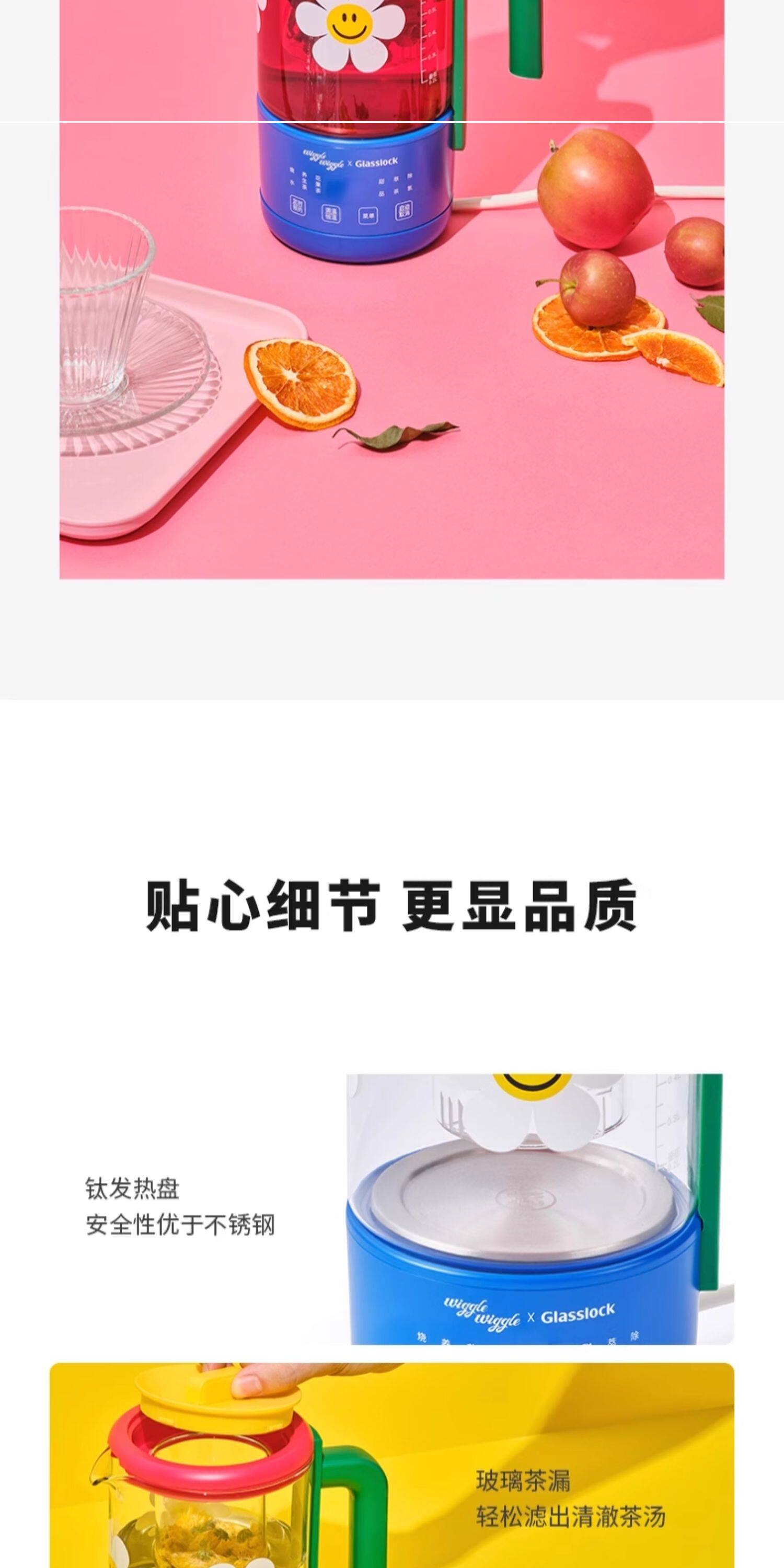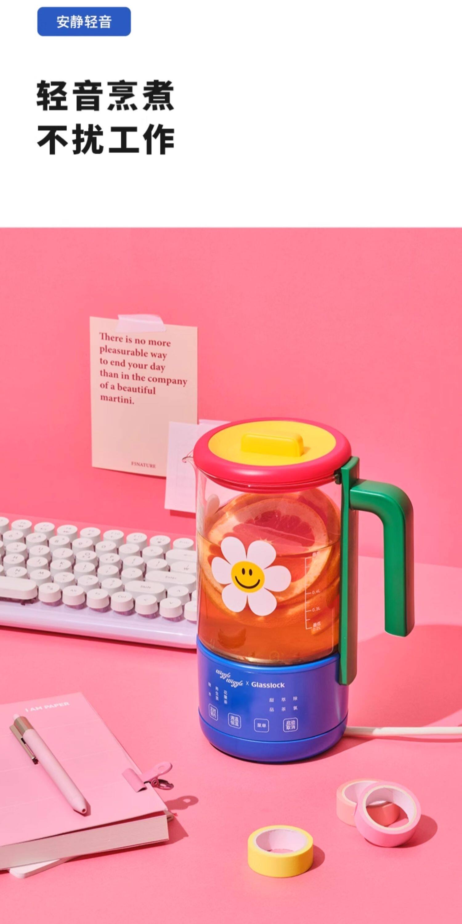 Glasslock&Wiggle Co-Branded Ip Model Office Mini Health Pot for Brewing Tea and Boiling Water, Health Cup 3906