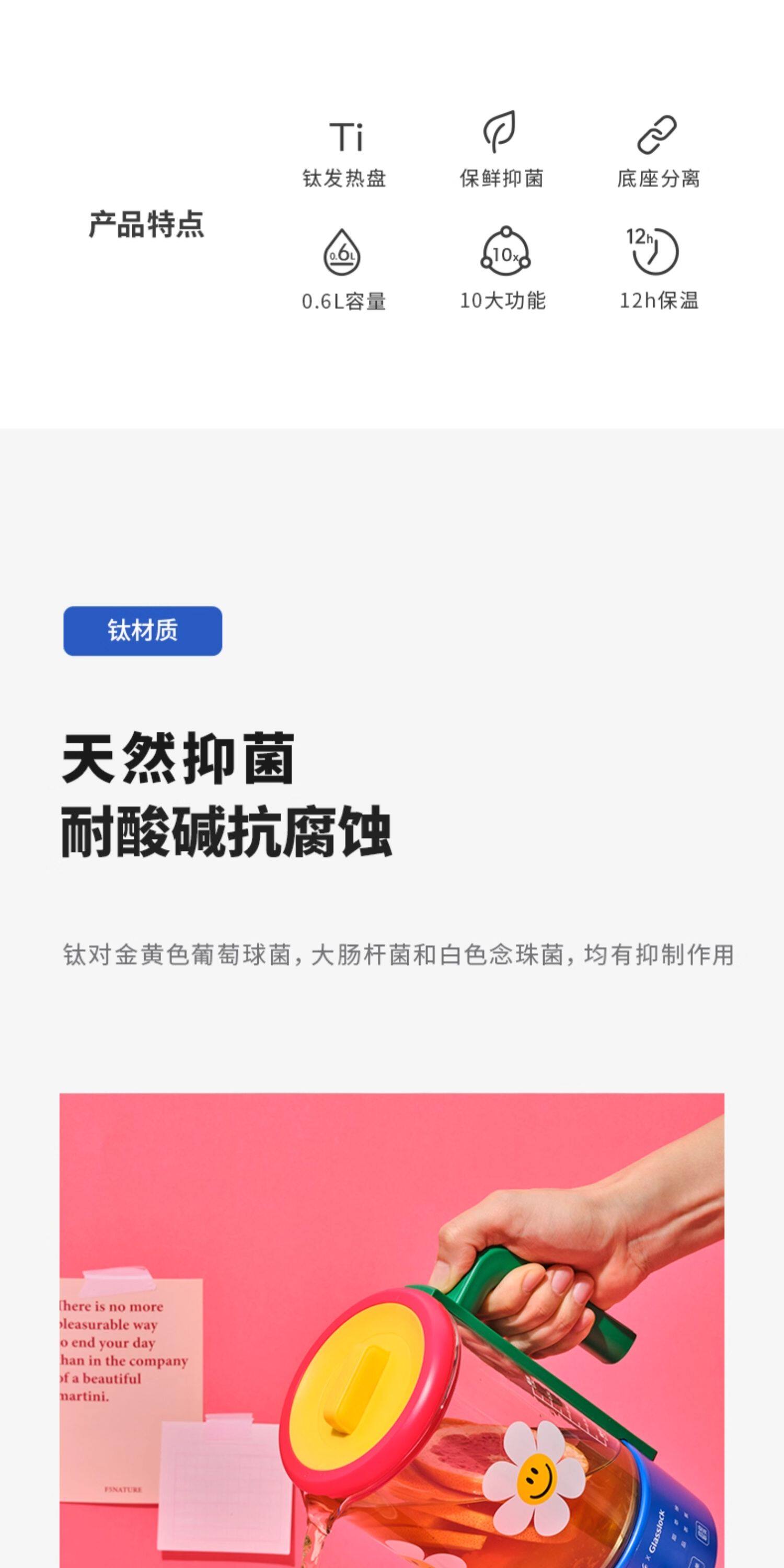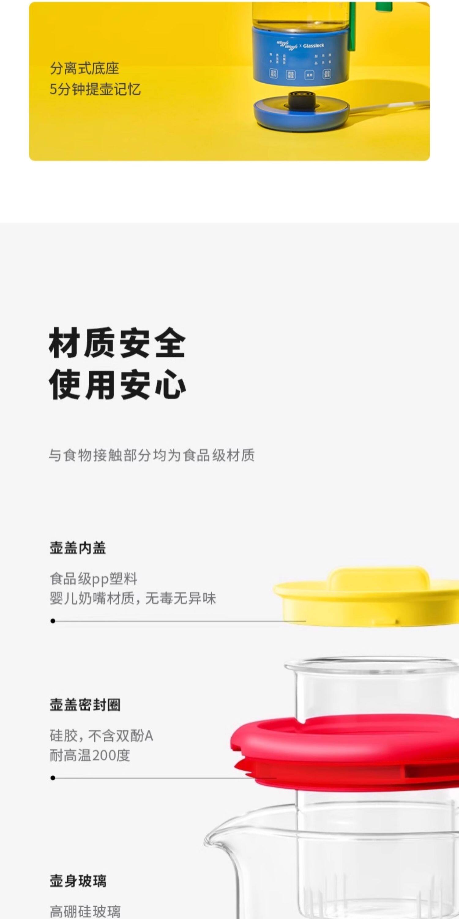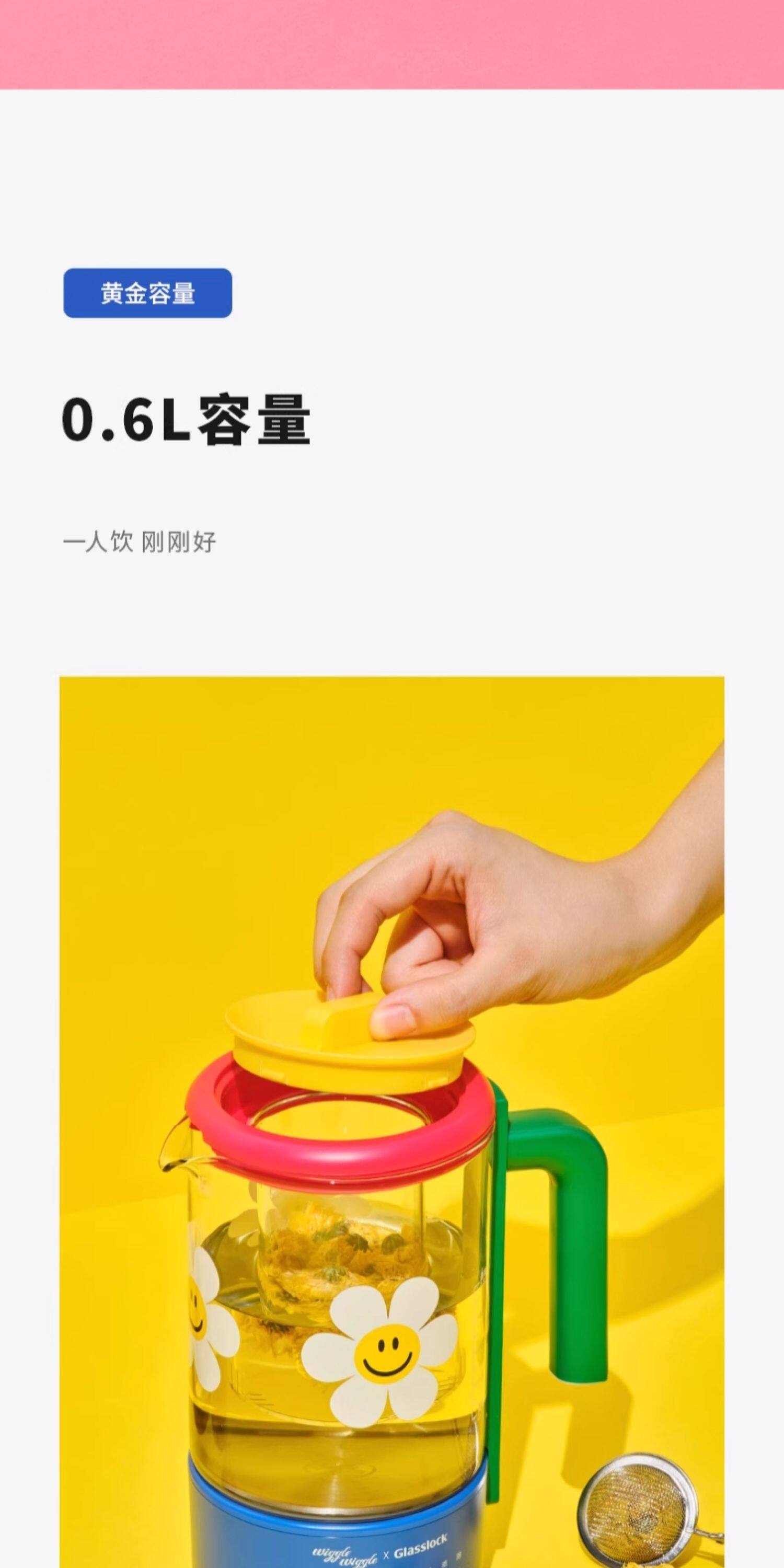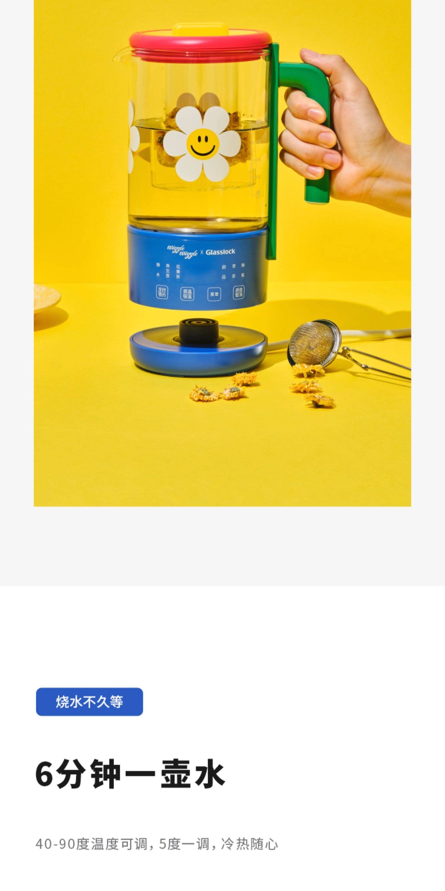 Glasslock&Wiggle Co-Branded Ip Model Office Mini Health Pot for Brewing Tea and Boiling Water, Health Cup 3906