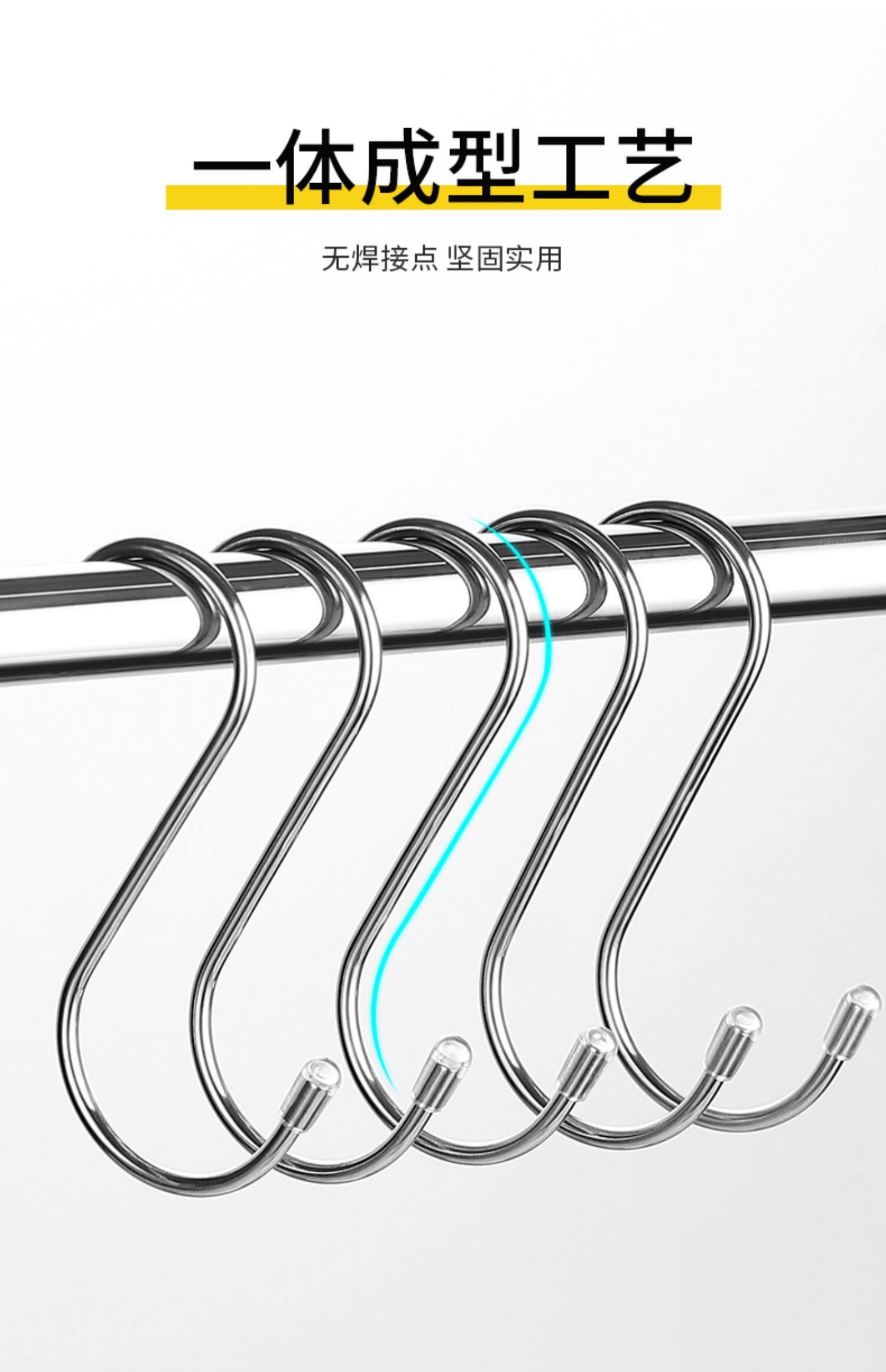 Stainless Steel S-Shaped Hook for Hanging Cured Meat, Drying Sausages, Multifunctional for Kitchen, Bathroom, Student Dormitory, No-Drill Single S Hook