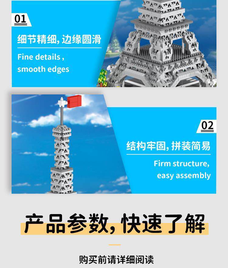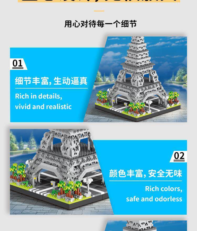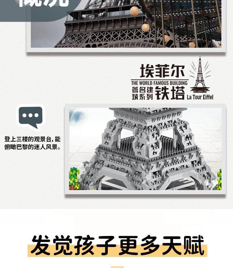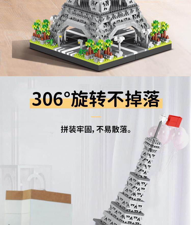 Suitable for Le3D New Building Block Paris Eiffel Tower Architectural Model Series, Adult Difficulty, for Boys to Assemble