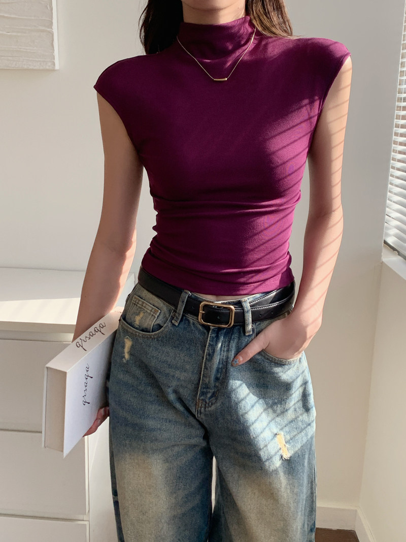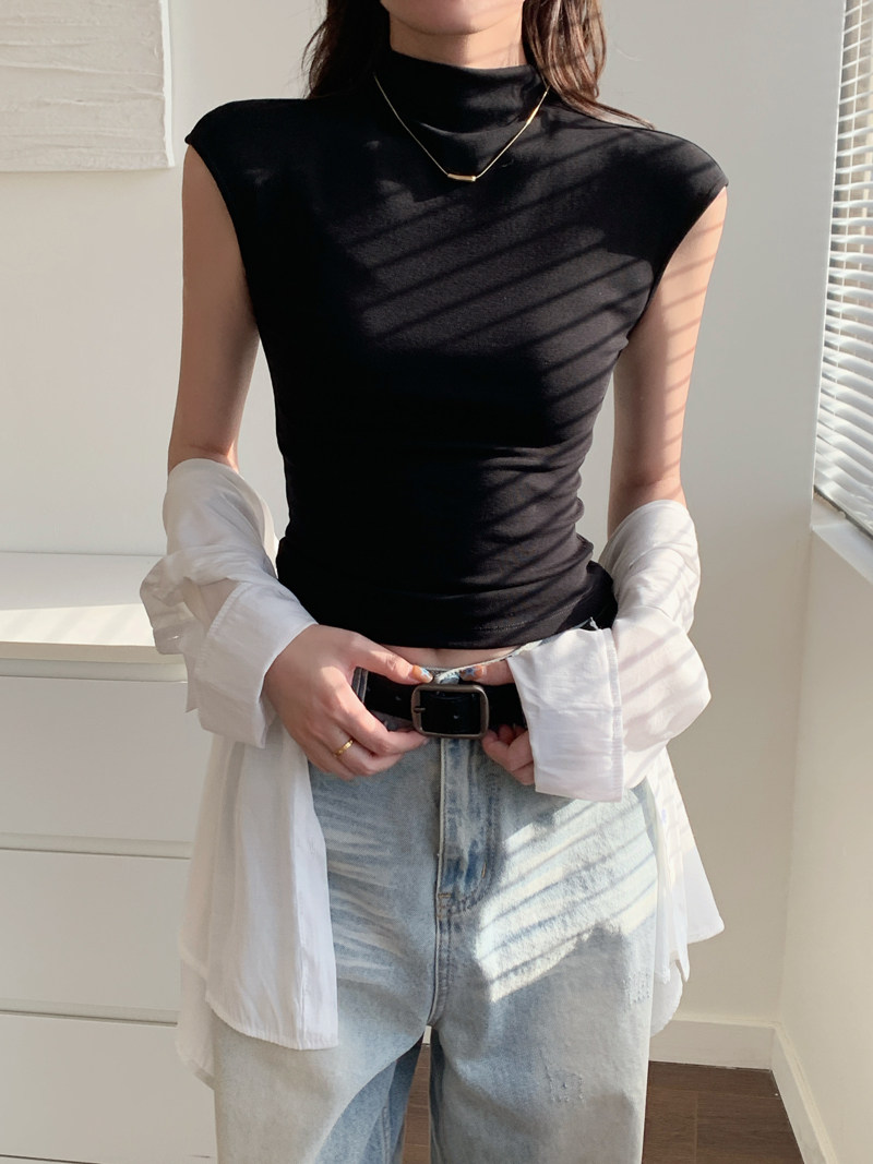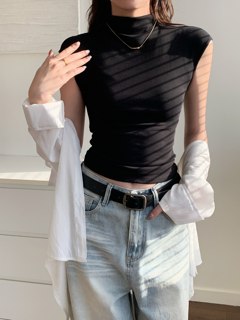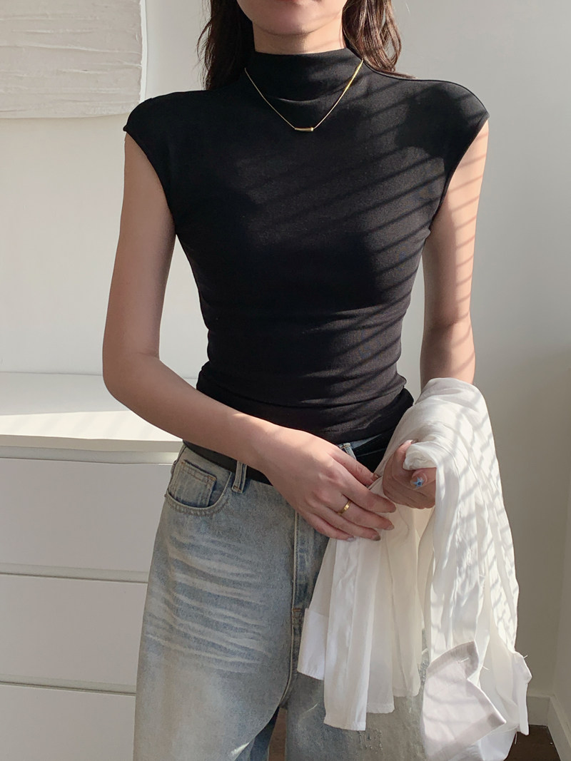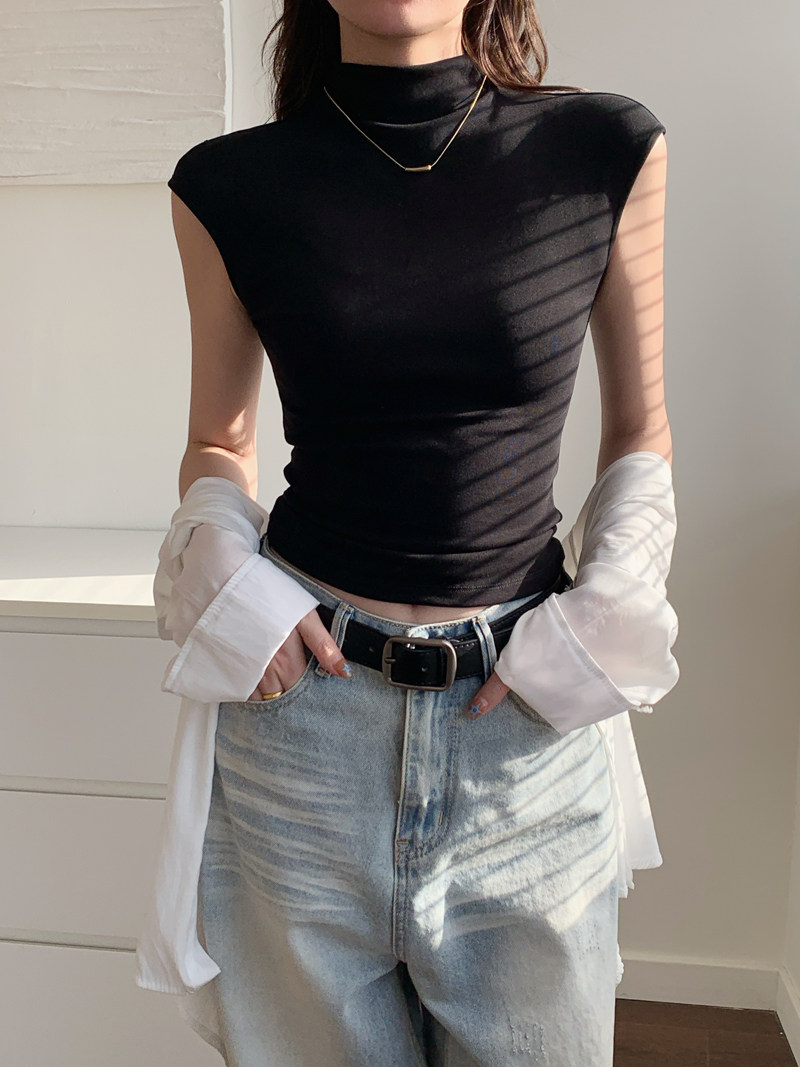 Sleeveless Top for Women, Summer 2025 New Thin Style, Regular Shoulder, Outerwear, Slim Fit, High-Neck T-Shirt for a Trendy Look