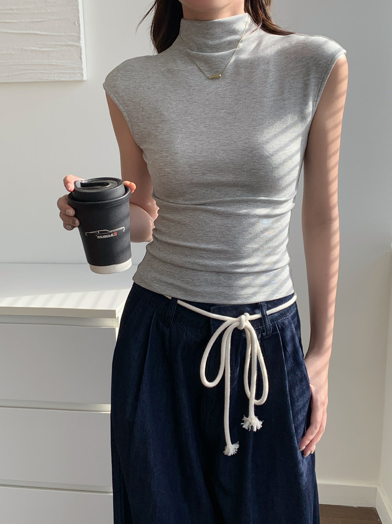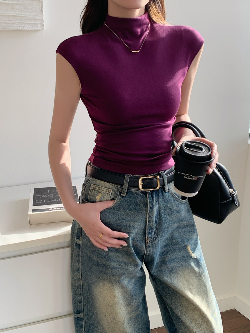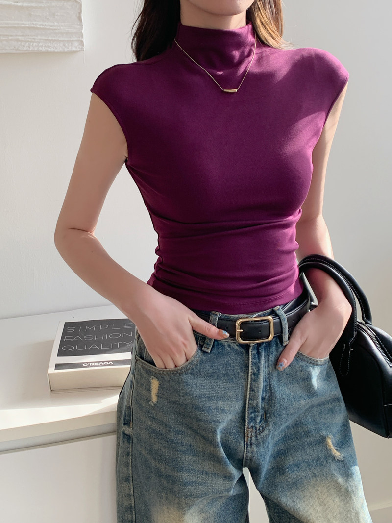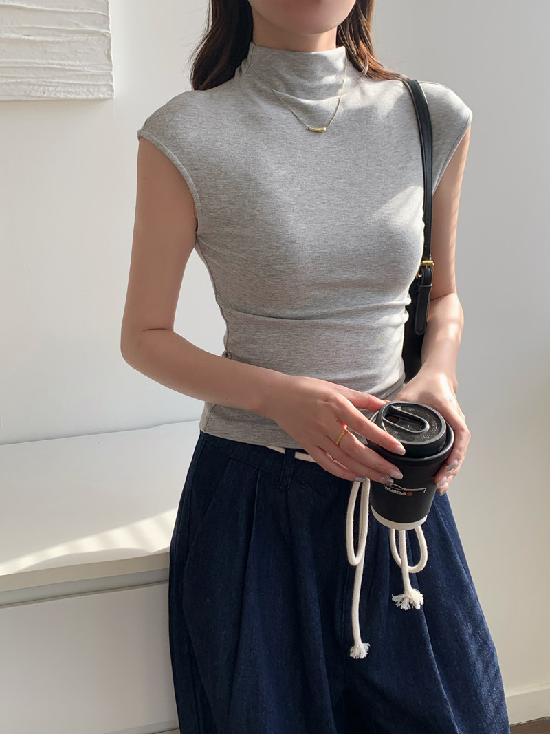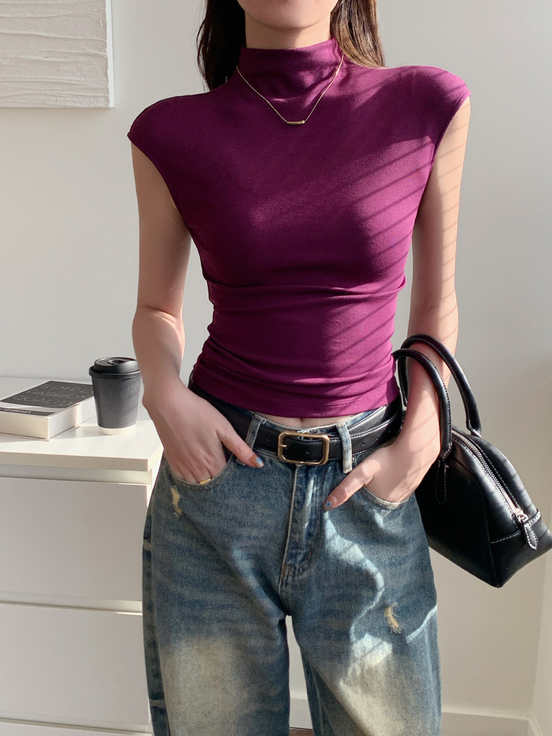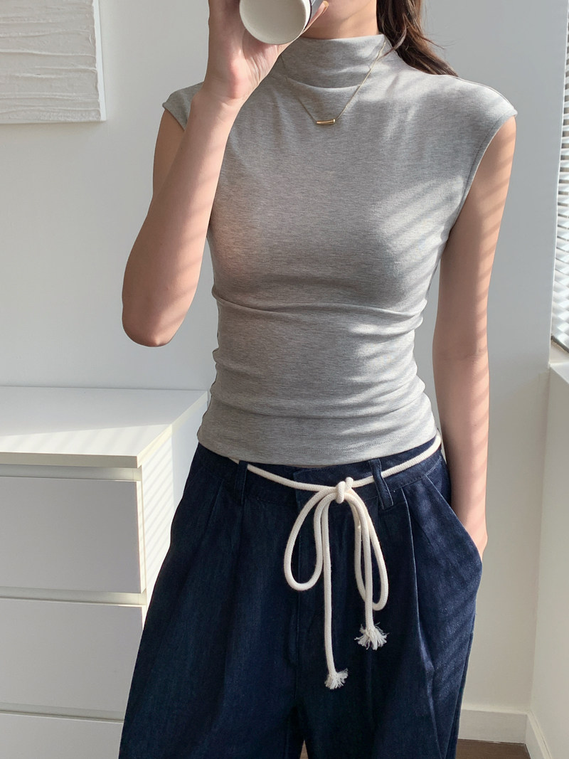 Sleeveless Top for Women, Summer 2025 New Thin Style, Regular Shoulder, Outerwear, Slim Fit, High-Neck T-Shirt for a Trendy Look