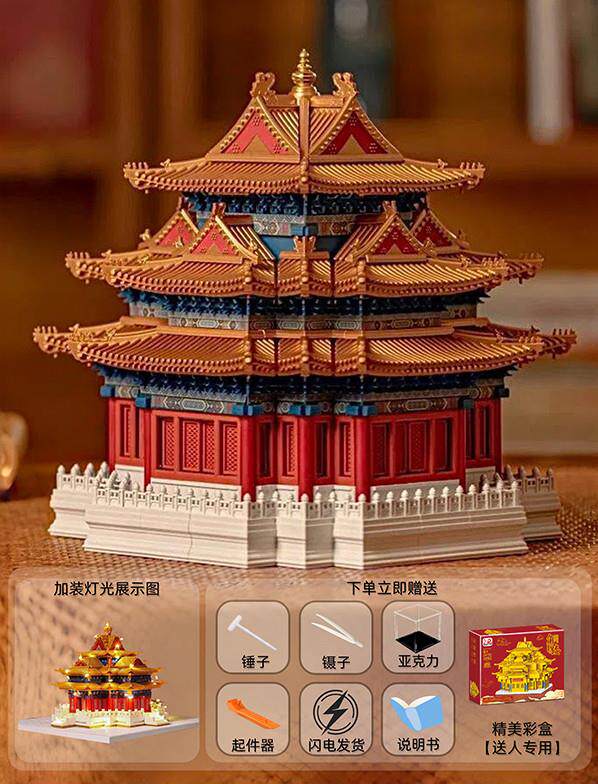 Forbidden City Building Blocks, Corner Tower of the Palace Museum, Chinese Style Mortise and Tenon Joints, High Difficulty Ancient Architecture for Adults, Educational for Boys, Compatible with Lego