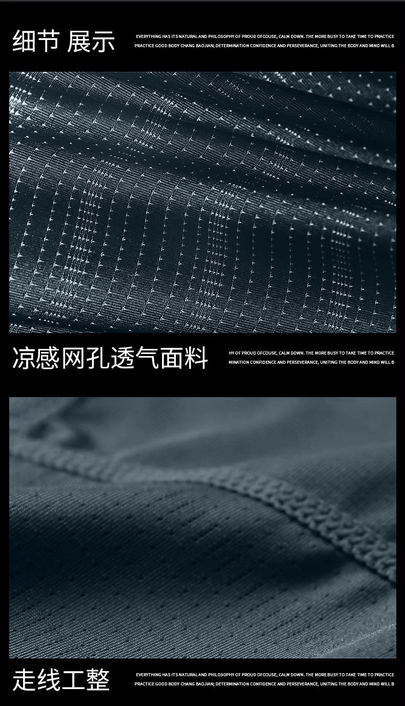 Sort by color Medium gray suit, ice silk, quick drying, breathable, back waist pocket,Gray and black suit, ice silk, quick drying, breathable, back waist pocket,Black suit, ice silk, quick-drying, breathable, back waist pocket,Navy suit, ice silk, quick drying, breathable, back waist pocket,Medium gray suit, ice silk, quick drying, breathable, no pockets,Gray and black suit, ice silk, quick-drying, breathable, no pockets,Black suit, ice silk, quick-drying, breathable, no pockets,Navy suit, ice silk, quick-drying, breathable, no pockets