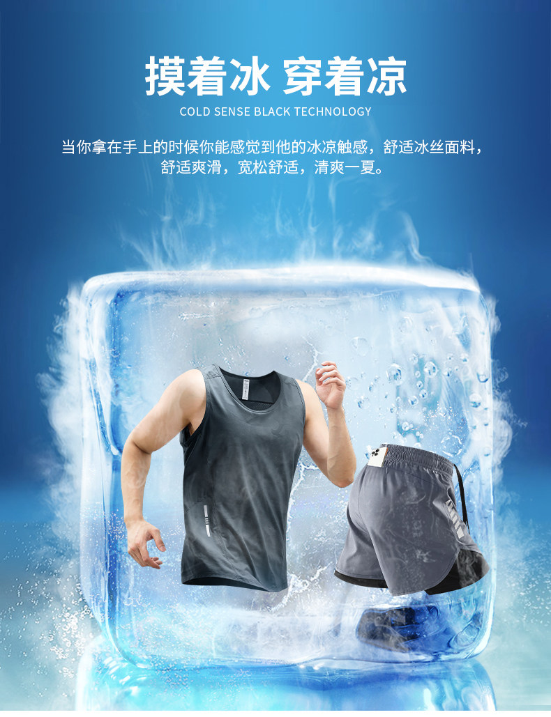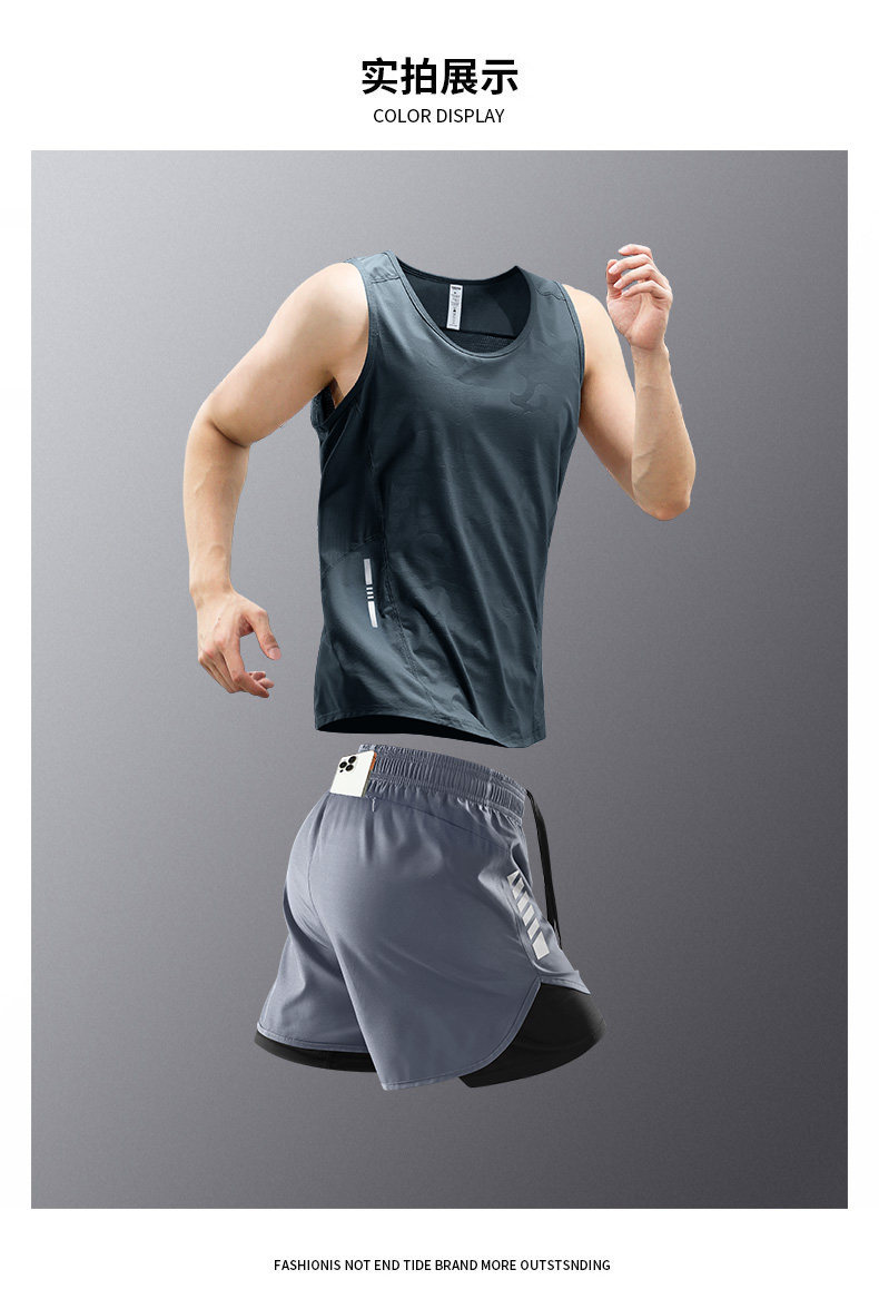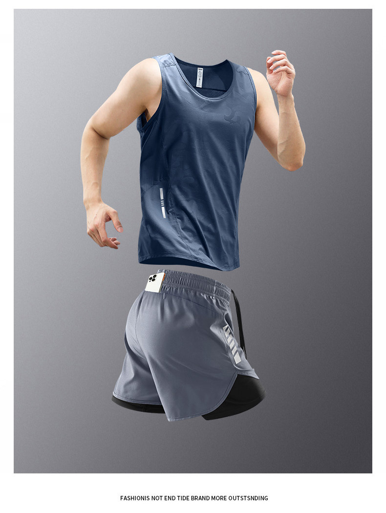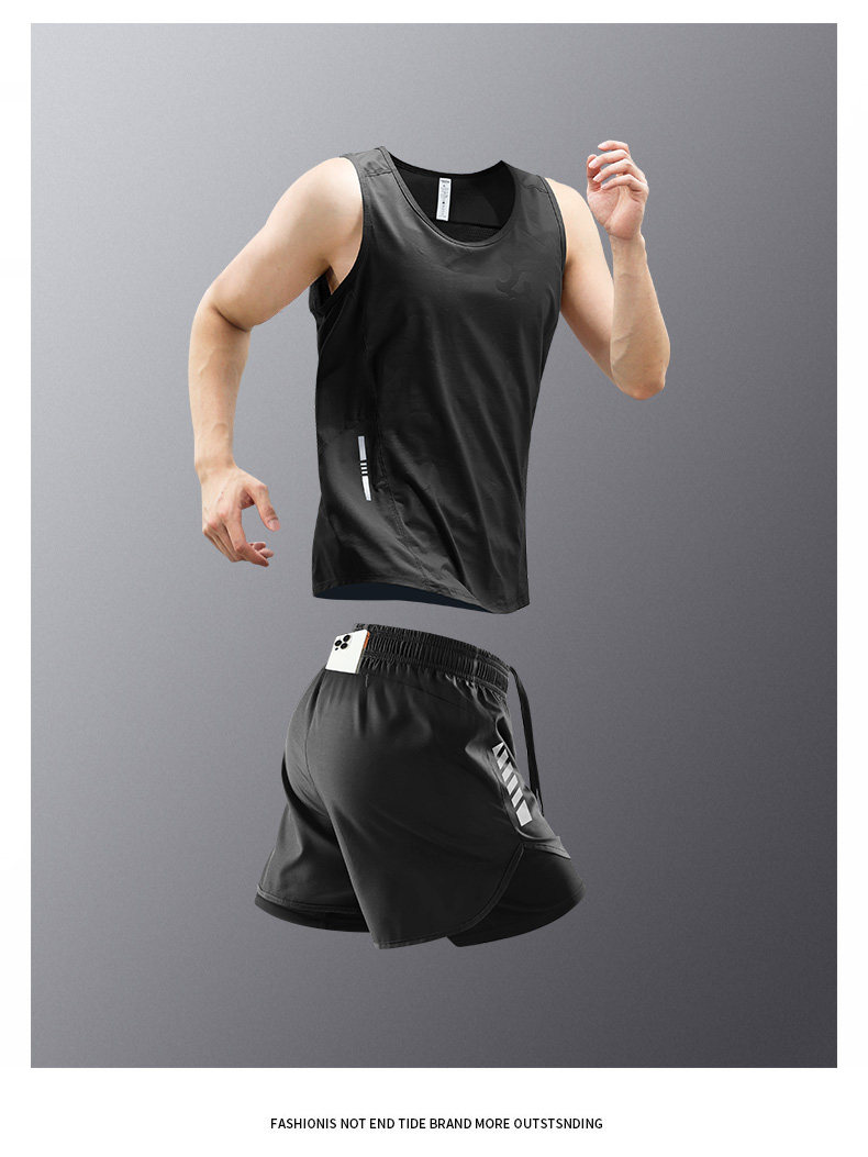 Running vest men's sports suit fitness clothes summer ice silk marathon track and field training shorts can hold mobile phone
