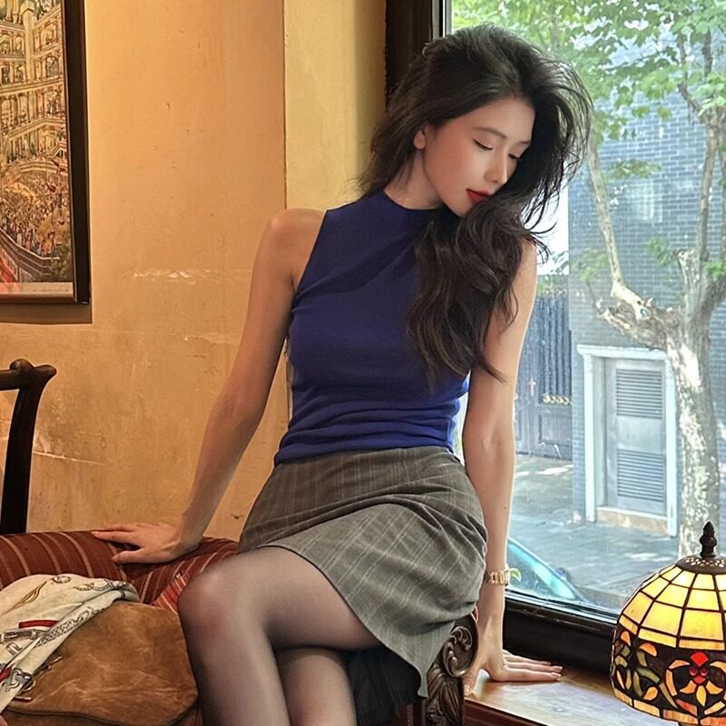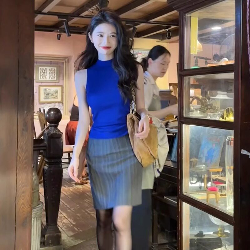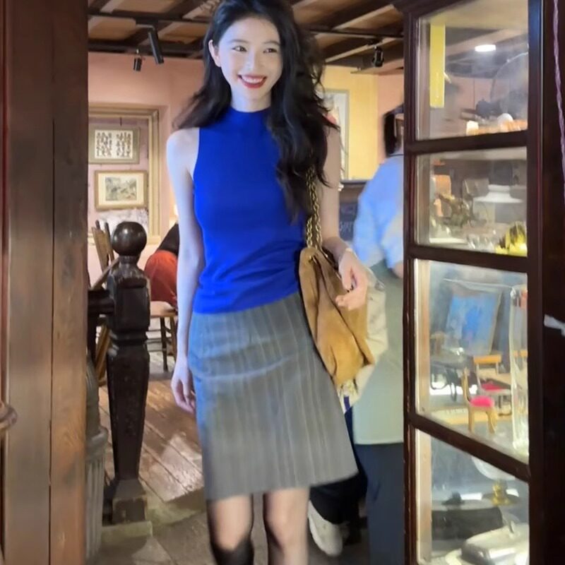 Half-High Collar Sleeveless Knitted Vest for Women, Summer 2025 New Style, Pure and Sexy, Tight-Fitting, Slimming Base Top