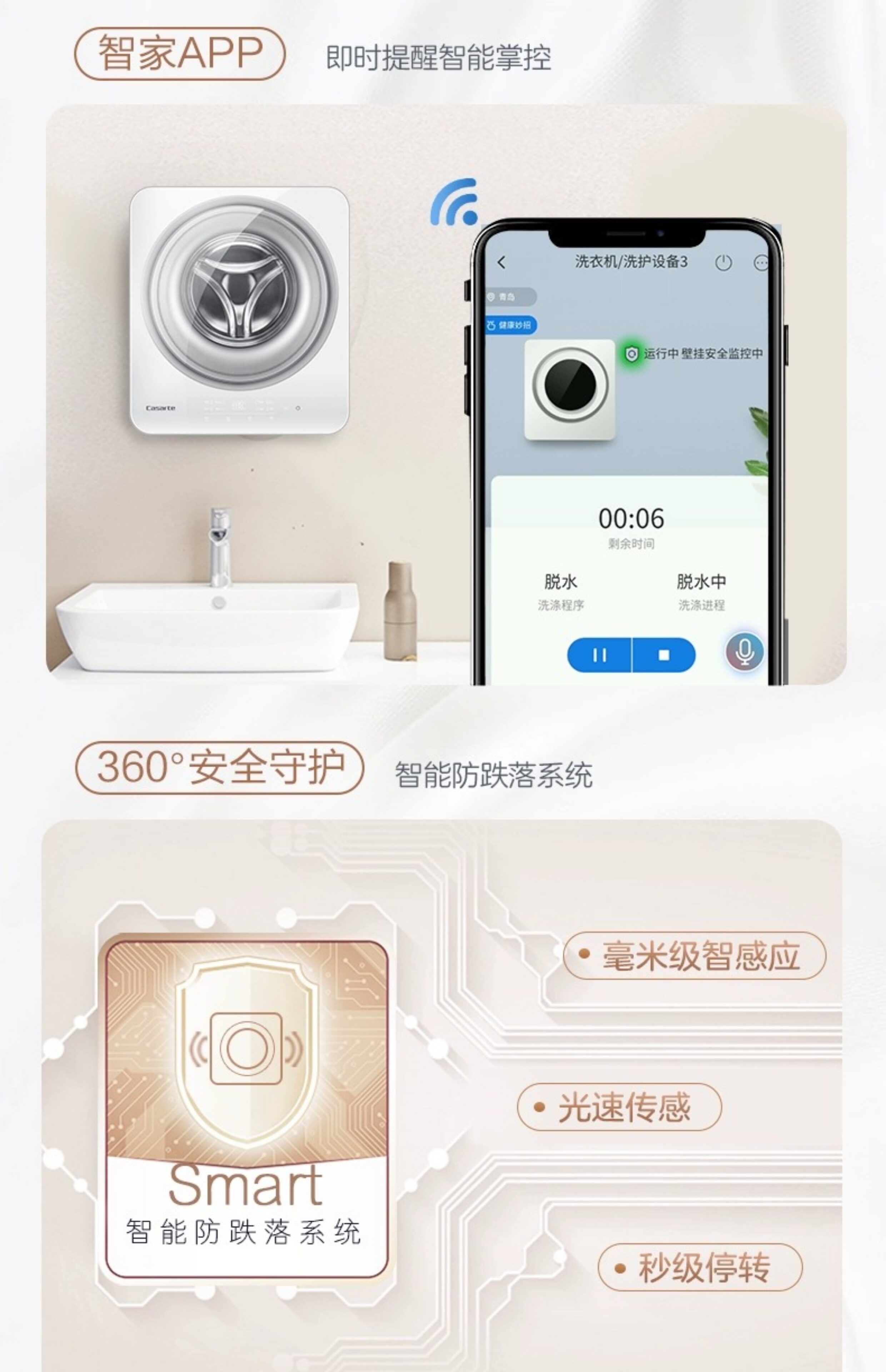 Casarte C3 3W1U1 Wall-mounted drum washing machine UV sterilization anti-fall frequency conversion C3 3G1U1