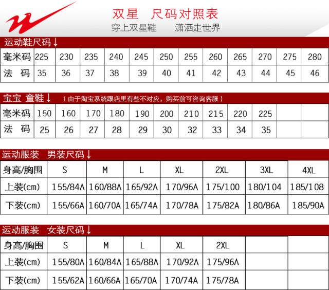 China (cm) 165 / 88-90 170 / 96-98 175 / 108-110 180 / 118-122 185 / 126-130