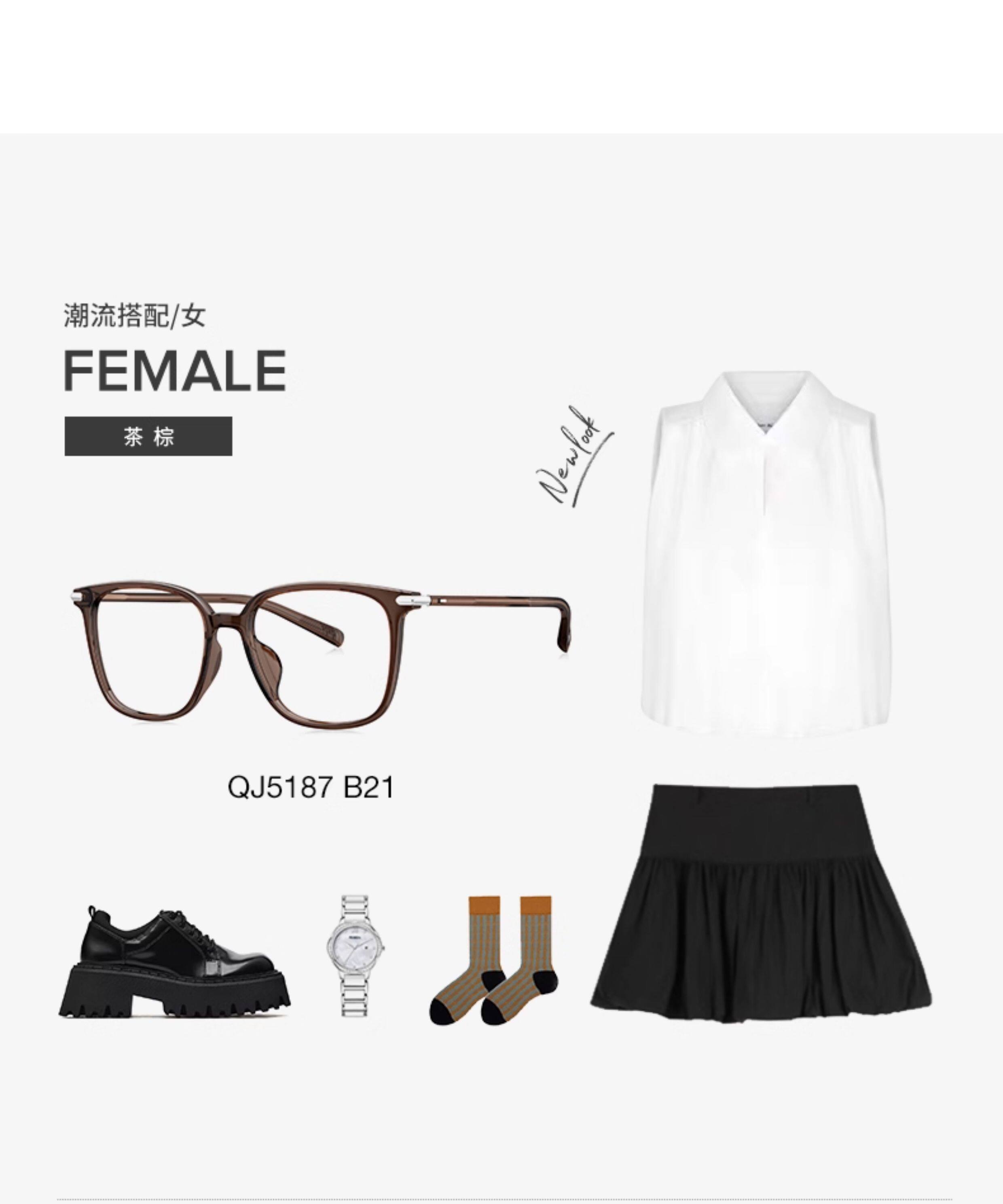 QINA Qina 2025 new plain black frame women's frames can be matched with myopia glasses men's trend QJ5187