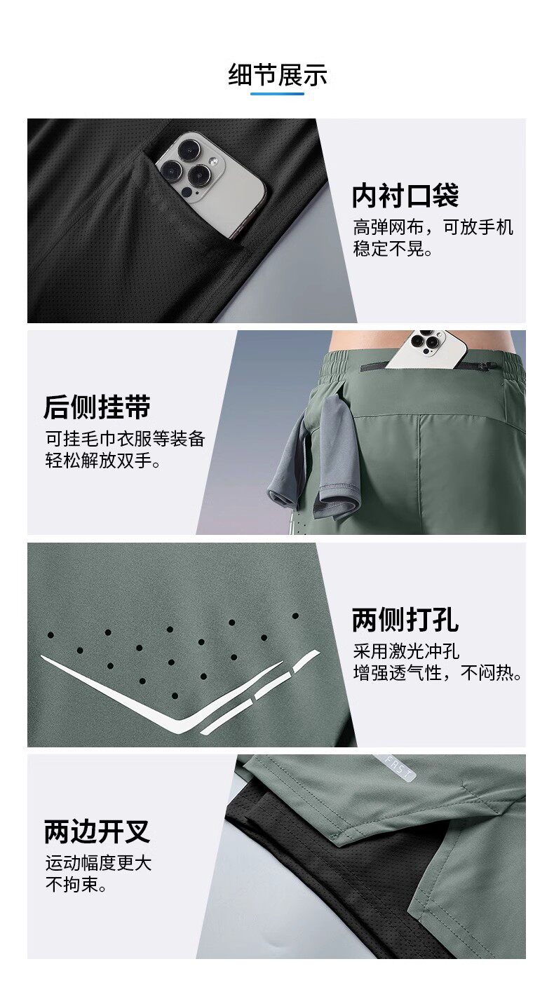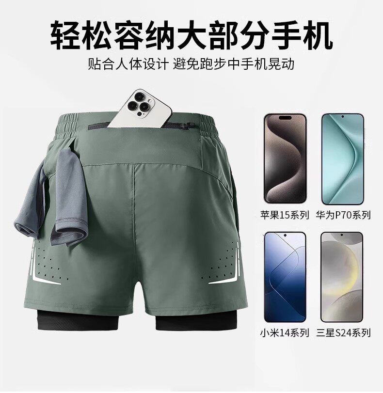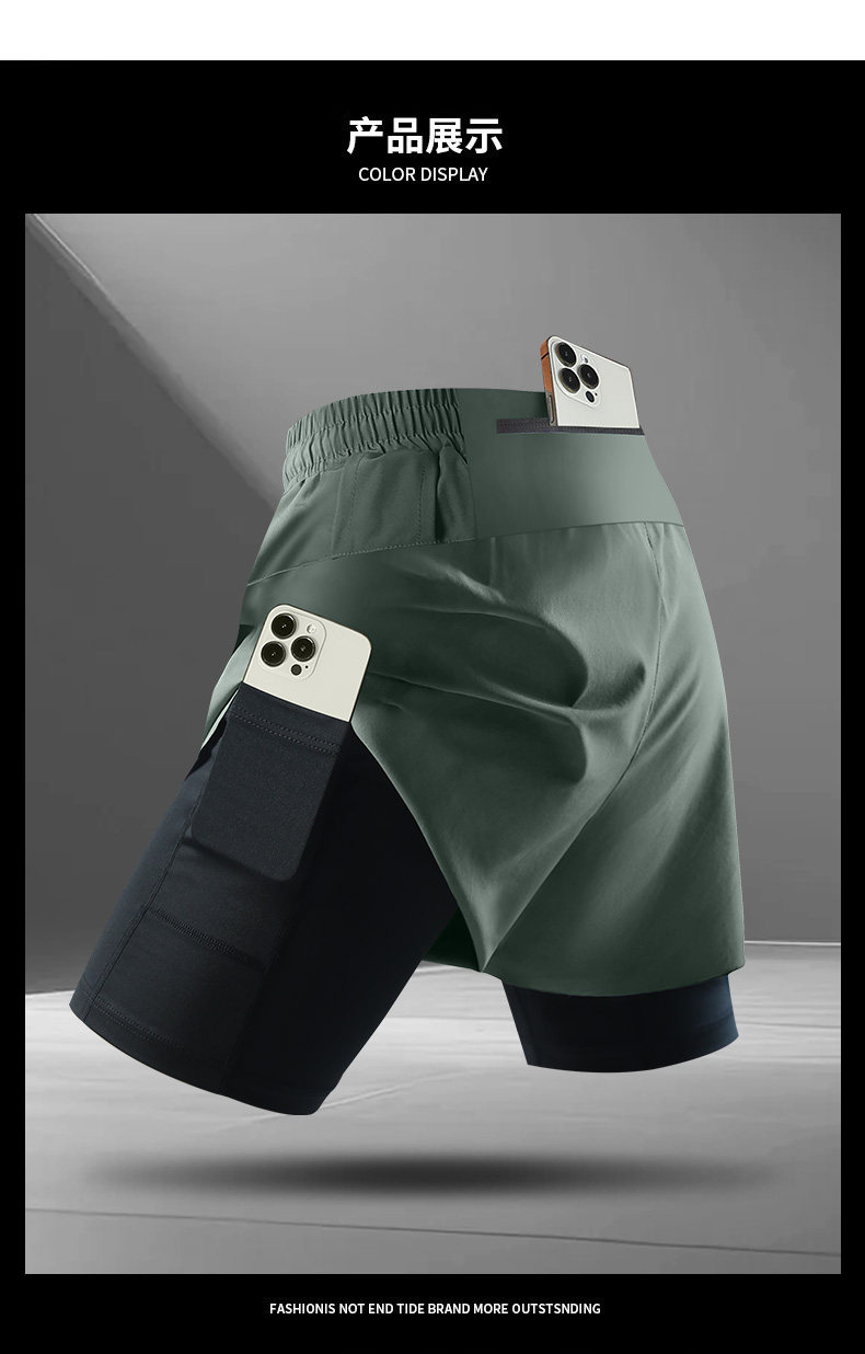 Men's running shorts can hold mobile phones, summer sports marathon professional quick-drying lined fitness training pants
