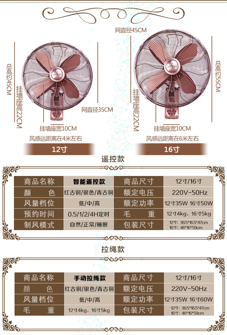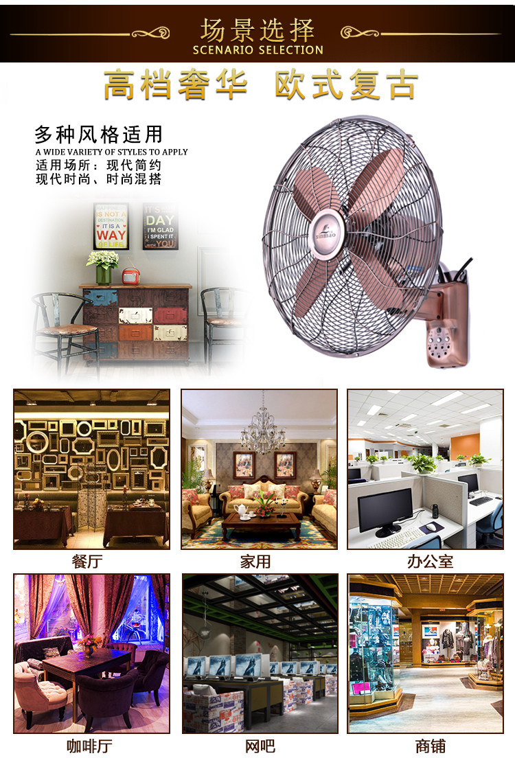 Antique Wall Fan Commercial Wall-Mounted Fan Metal Old-Fashioned Restaurant Hotel Classical Shaking Head Wall-Mounted Fan Commercial Electric Fan
