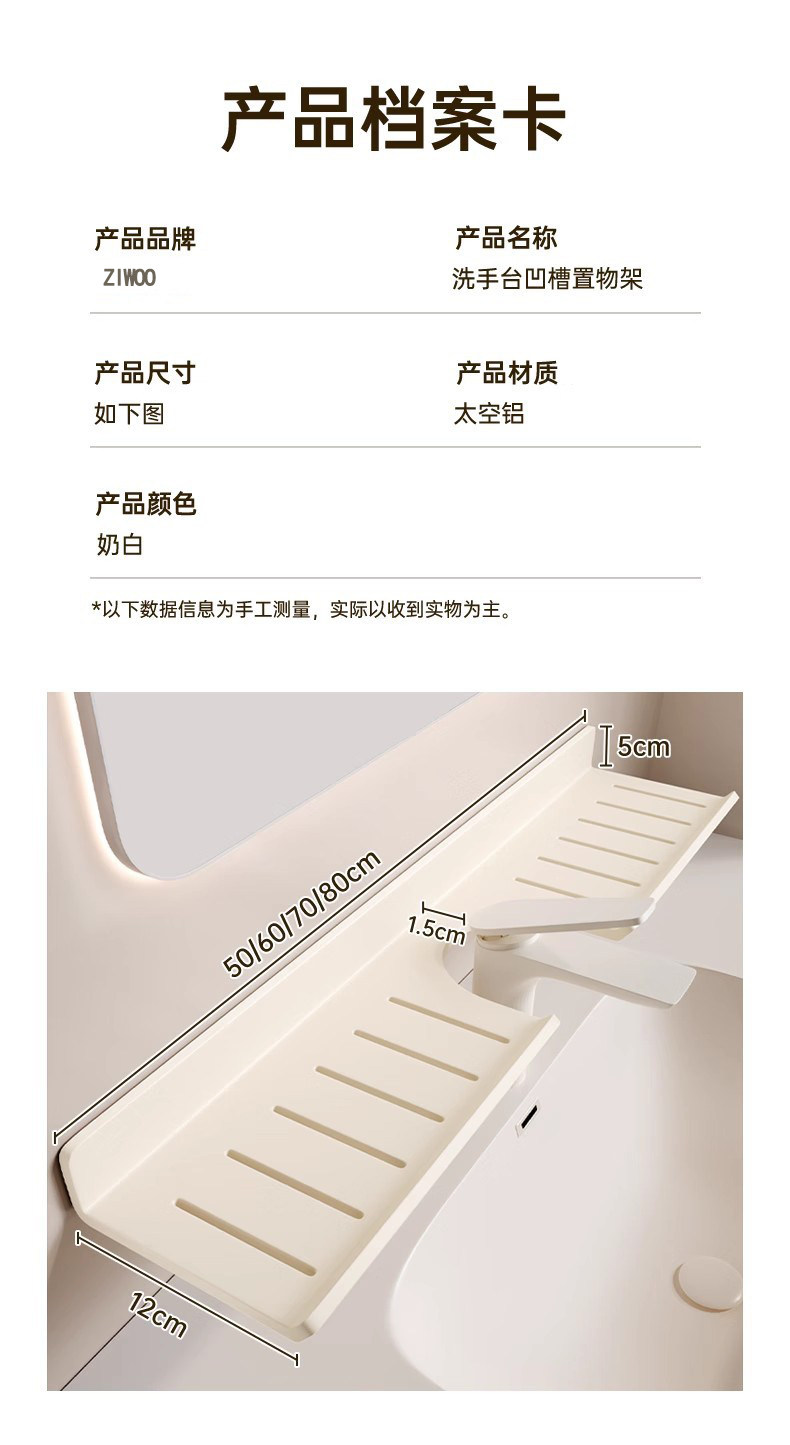 French Ziwoo Cream-Style Washbasin Shelf Bathroom Vanity Sink Bathroom Mirror Front Storage Rack