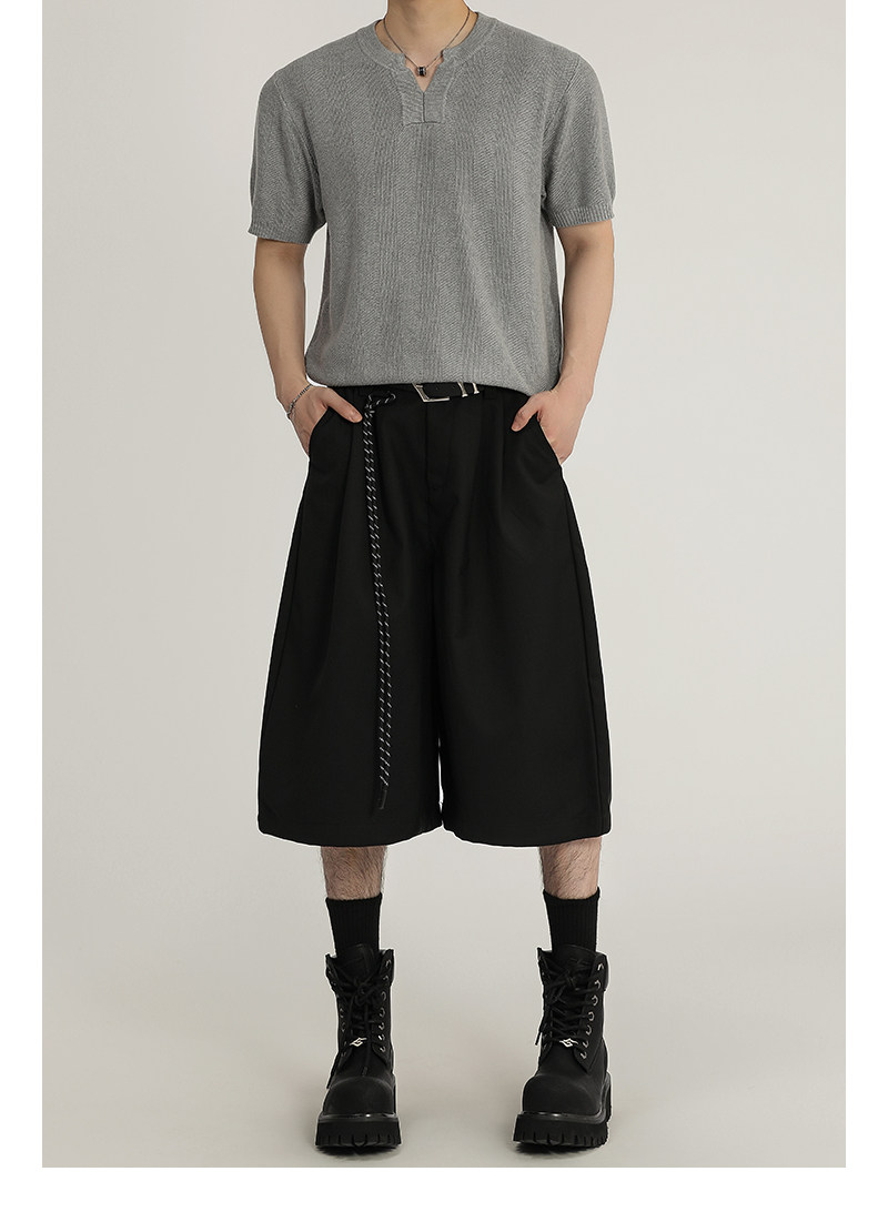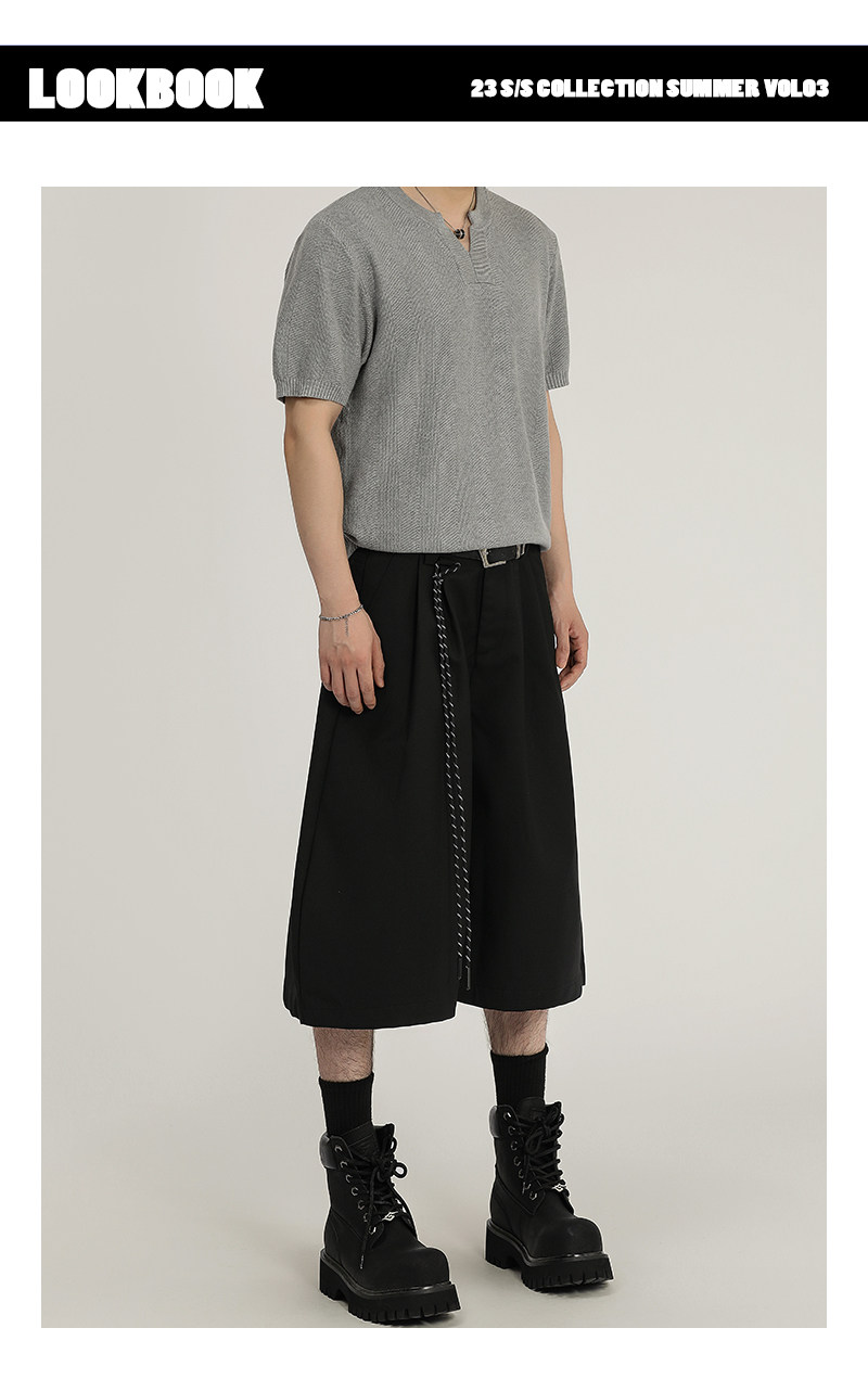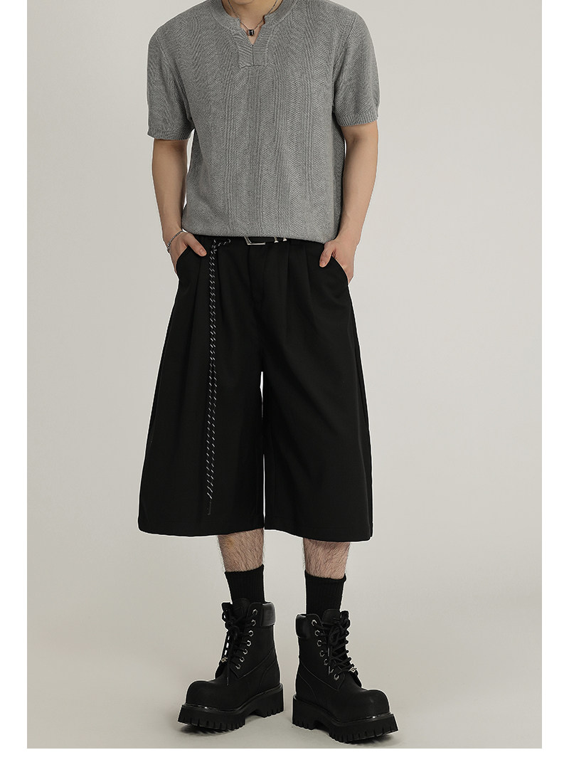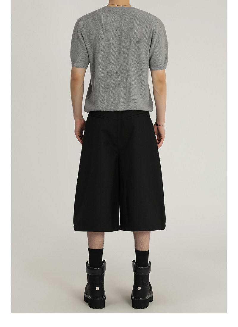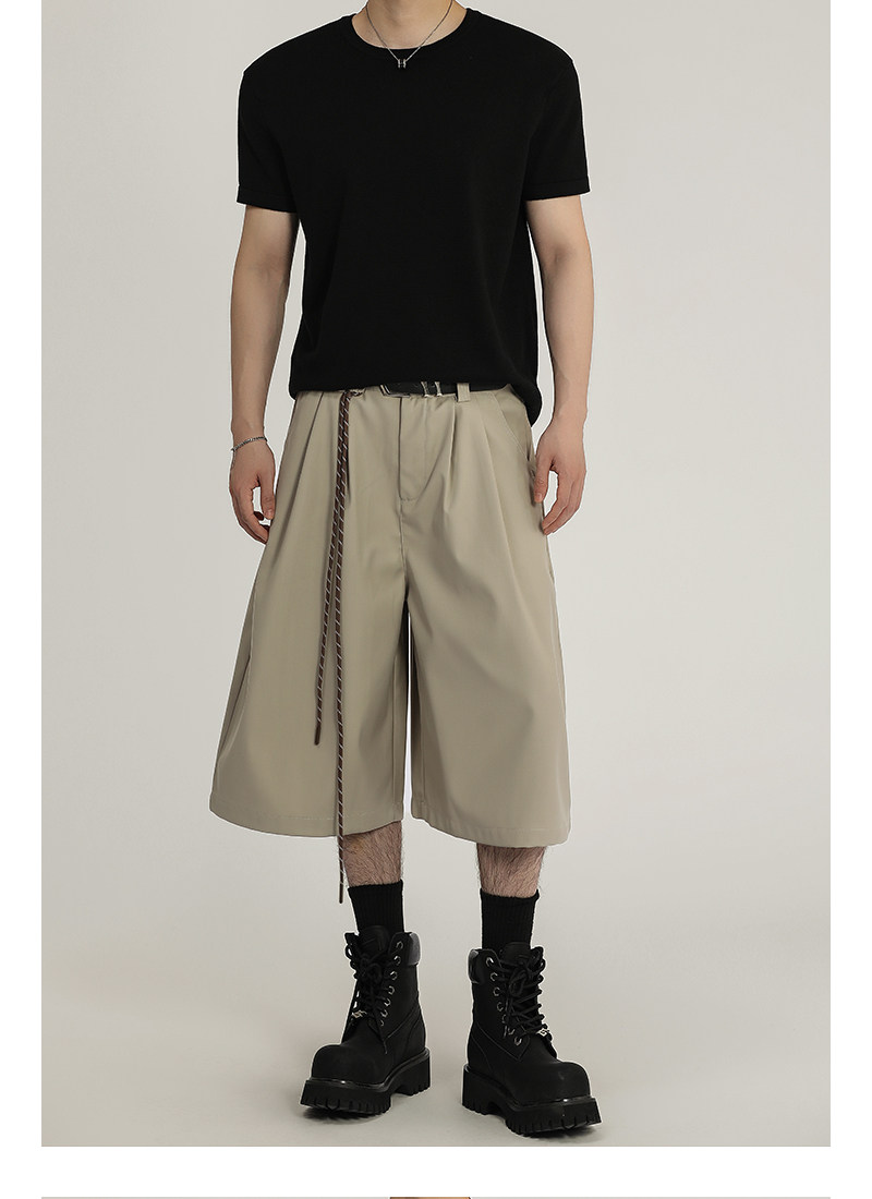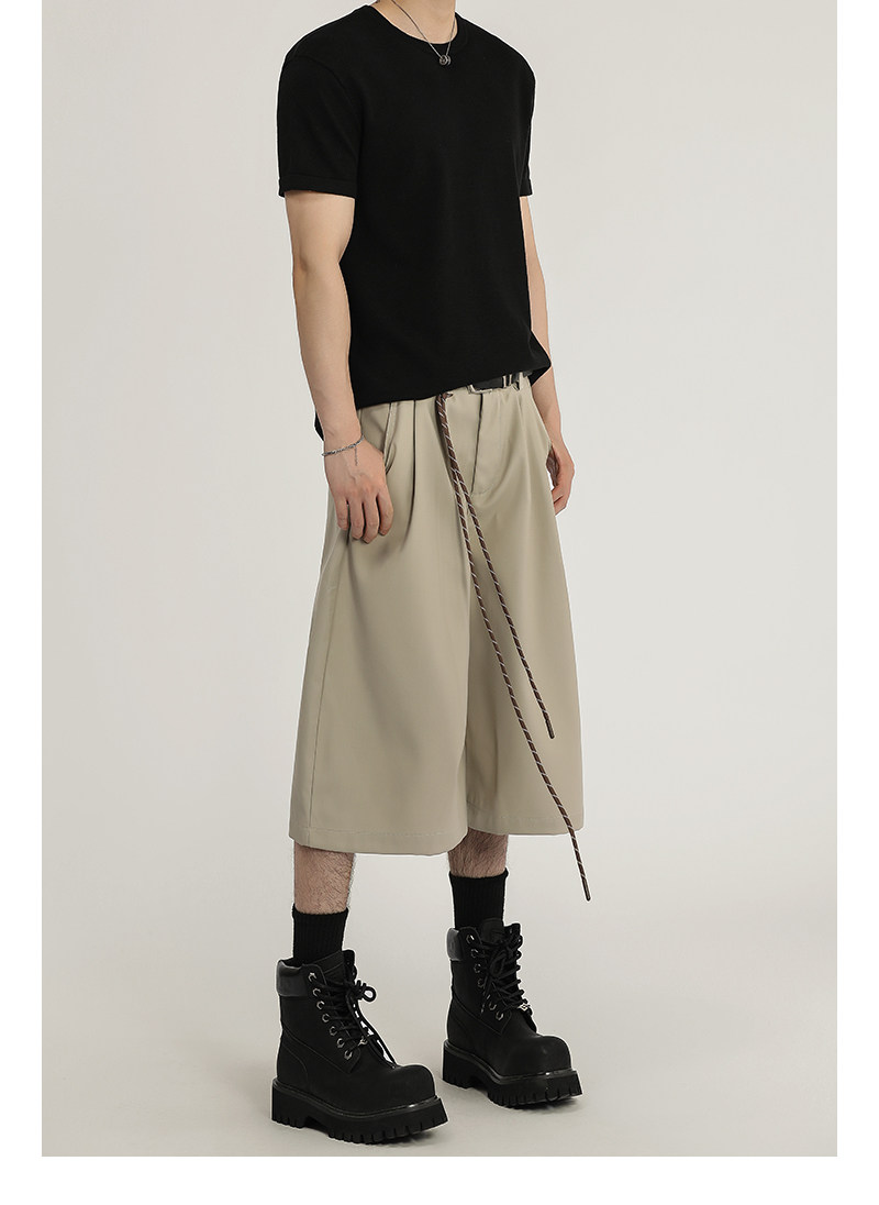 A Carton American Retro Design Silhouette Cropped Pants Unisex High-End Wide-Leg Casual Dress Pants Shorts Trendy