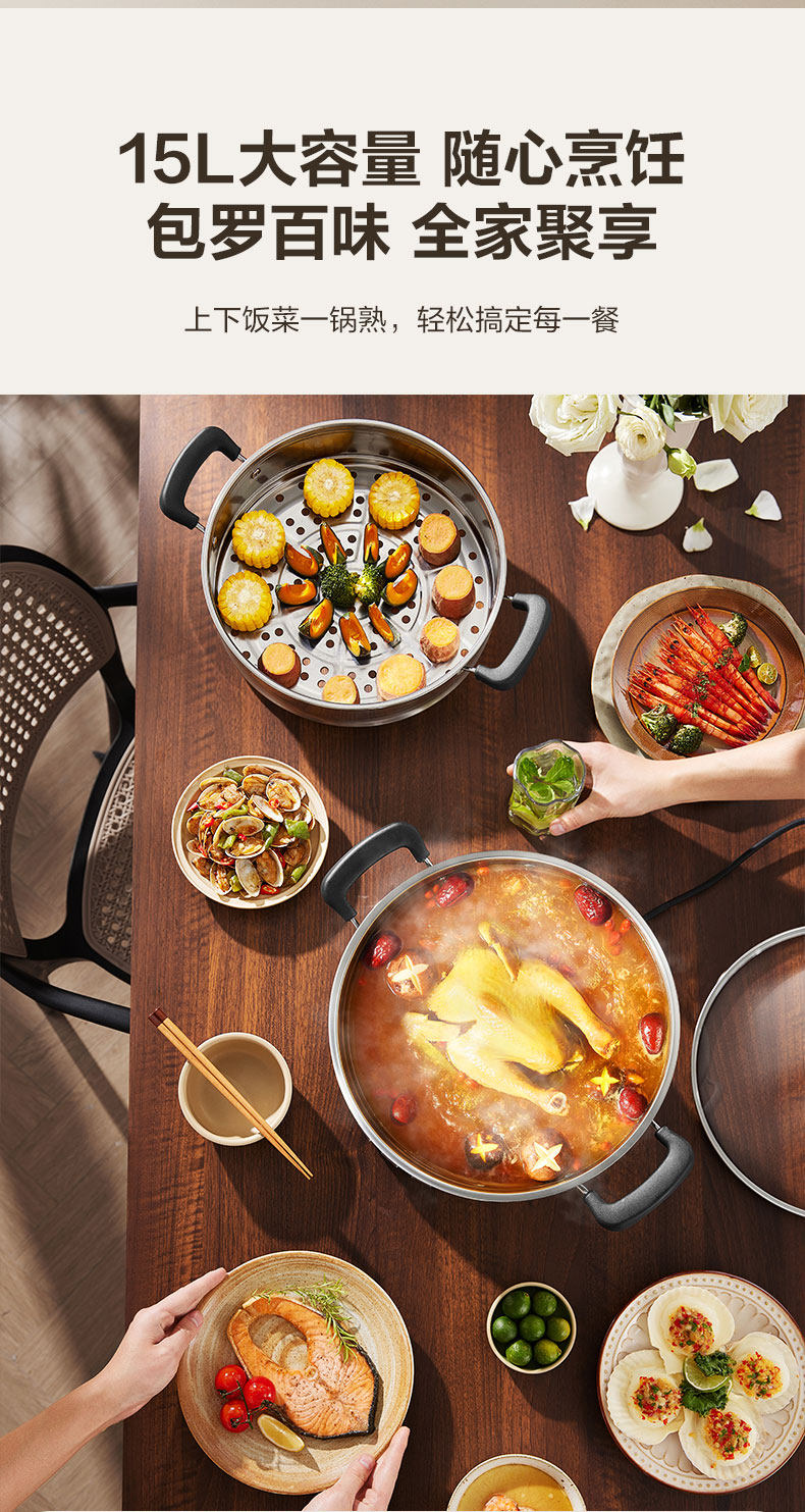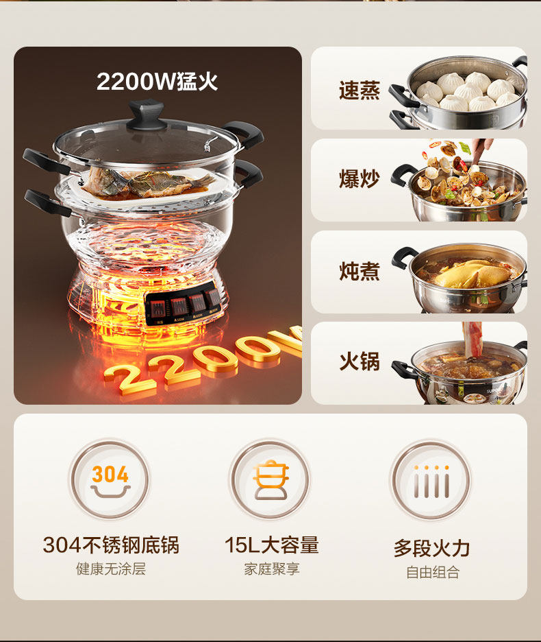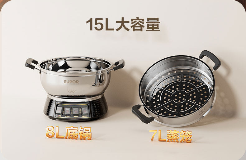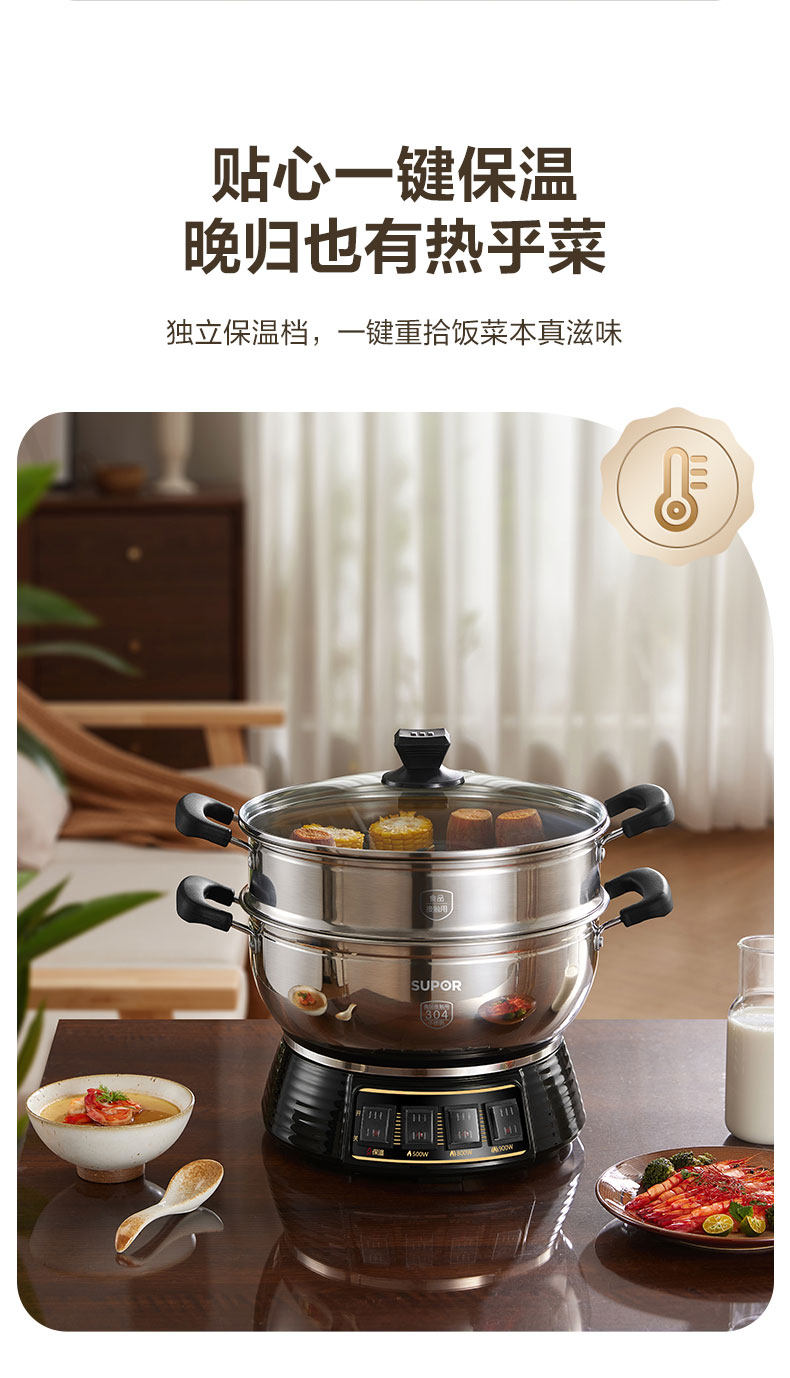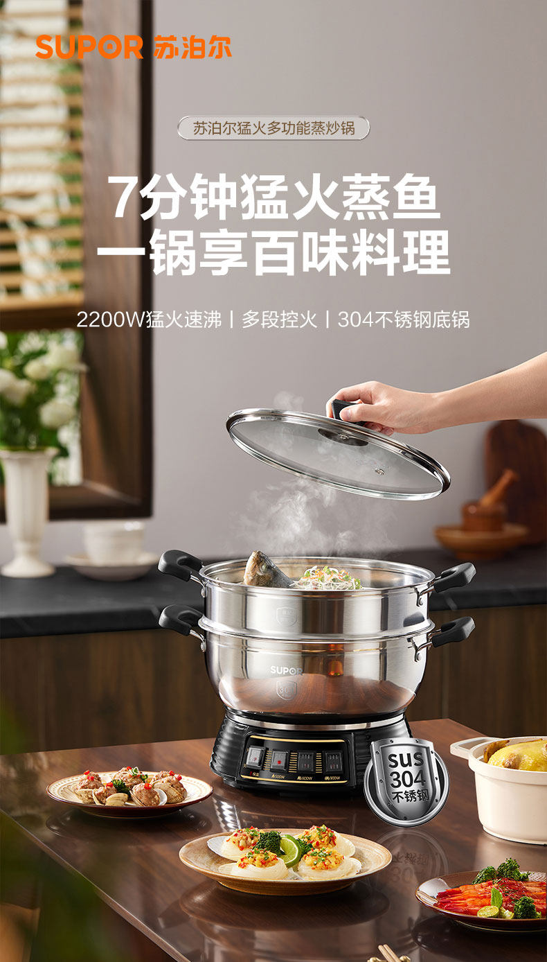 Supor Electric Steamer Stainless Steel Household Multi-Functional Three-Layer Large-Capacity Electric Cooking Pot Fully Automatic Steaming and Cooking All-In-One Pot