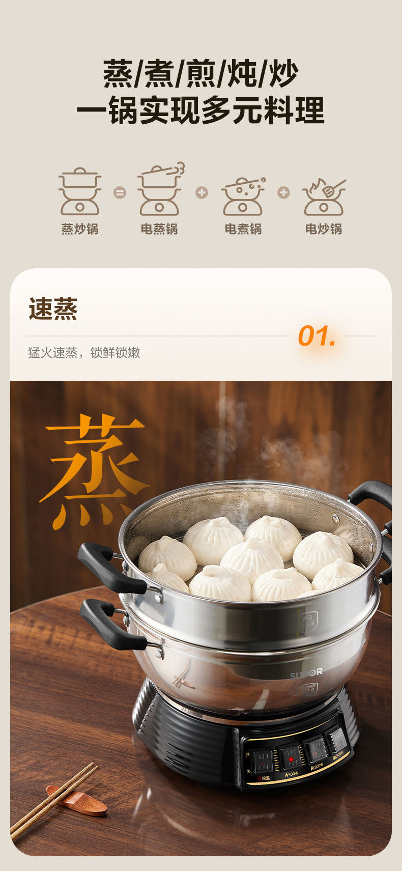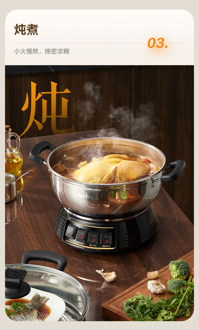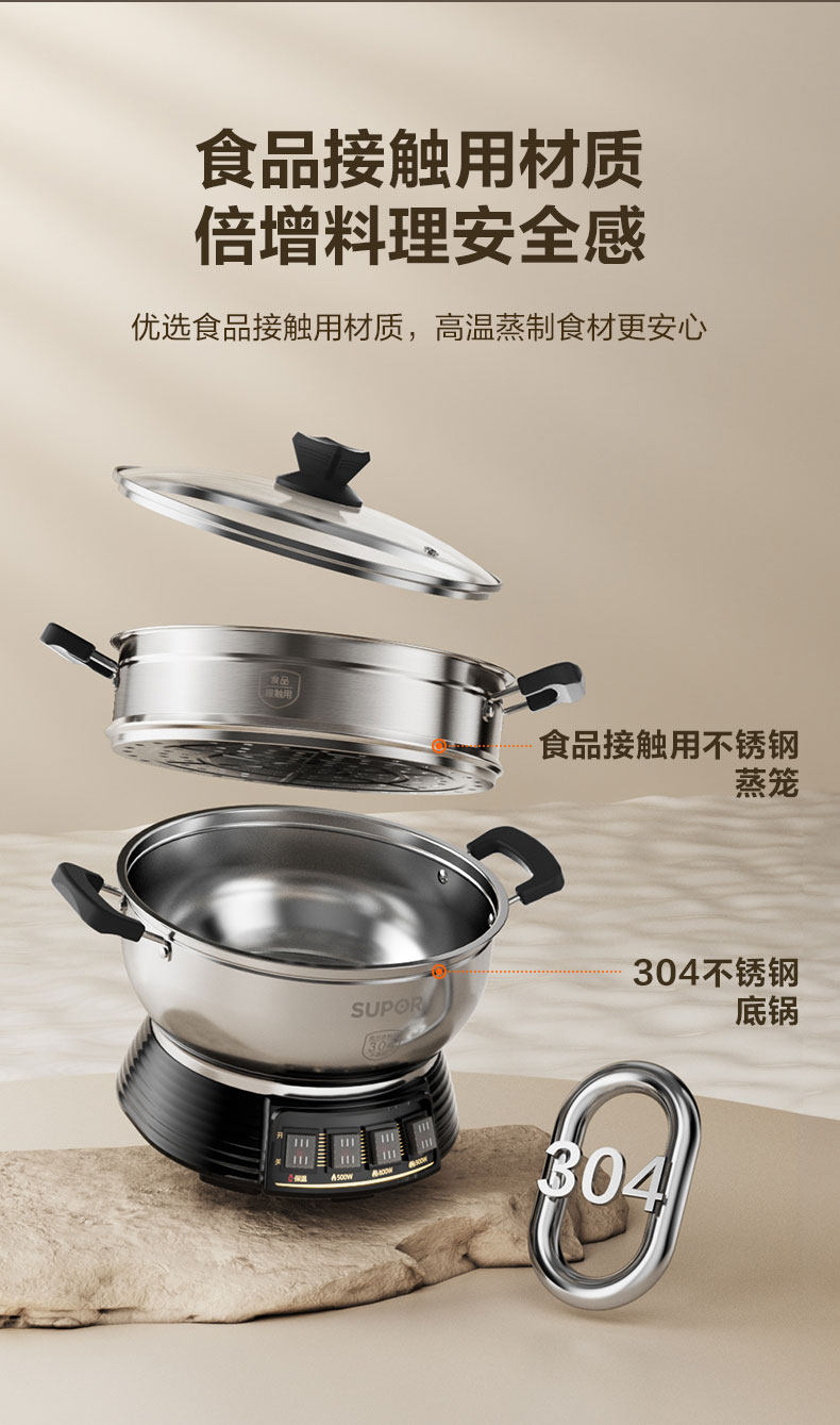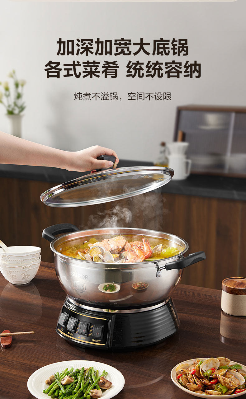 Supor Electric Steamer Stainless Steel Household Multi-Functional Three-Layer Large-Capacity Electric Cooking Pot Fully Automatic Steaming and Cooking All-In-One Pot