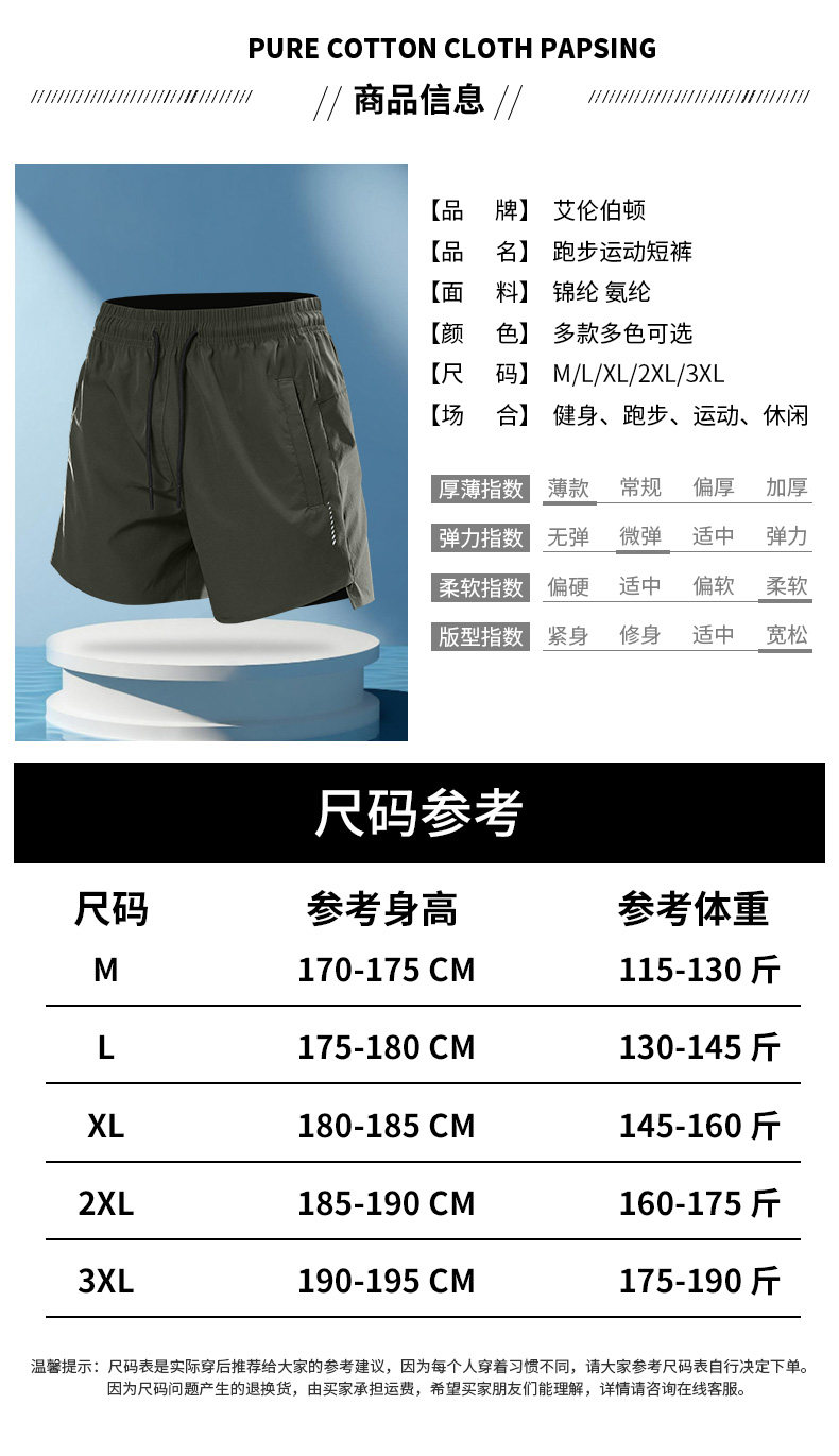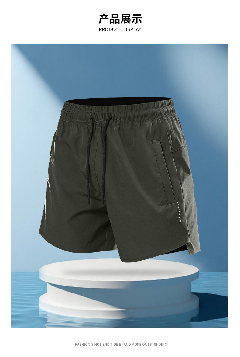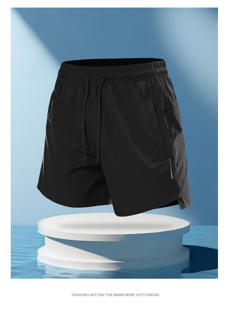 New running three-point shorts for men, quick-drying, non-marking marathon fitness zipper pocket training sports pants
