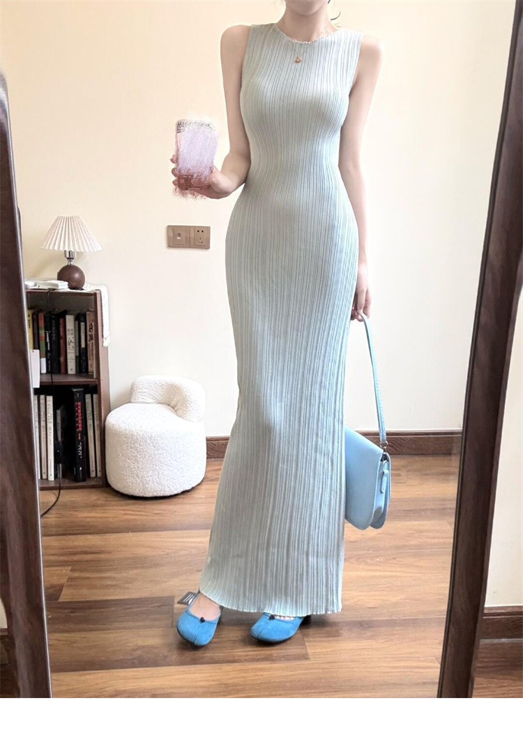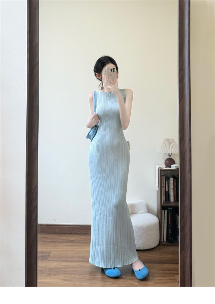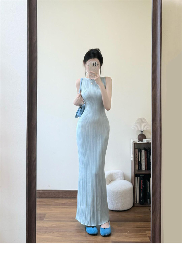 Pure lustful temperament, waist-cinching knitted dress, women's summer gentle and high-end hip-hugging skirt, sleeveless vest long skirt