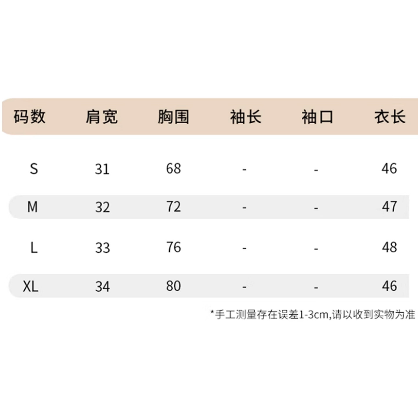 Size (cm) 42 44 46 48 50